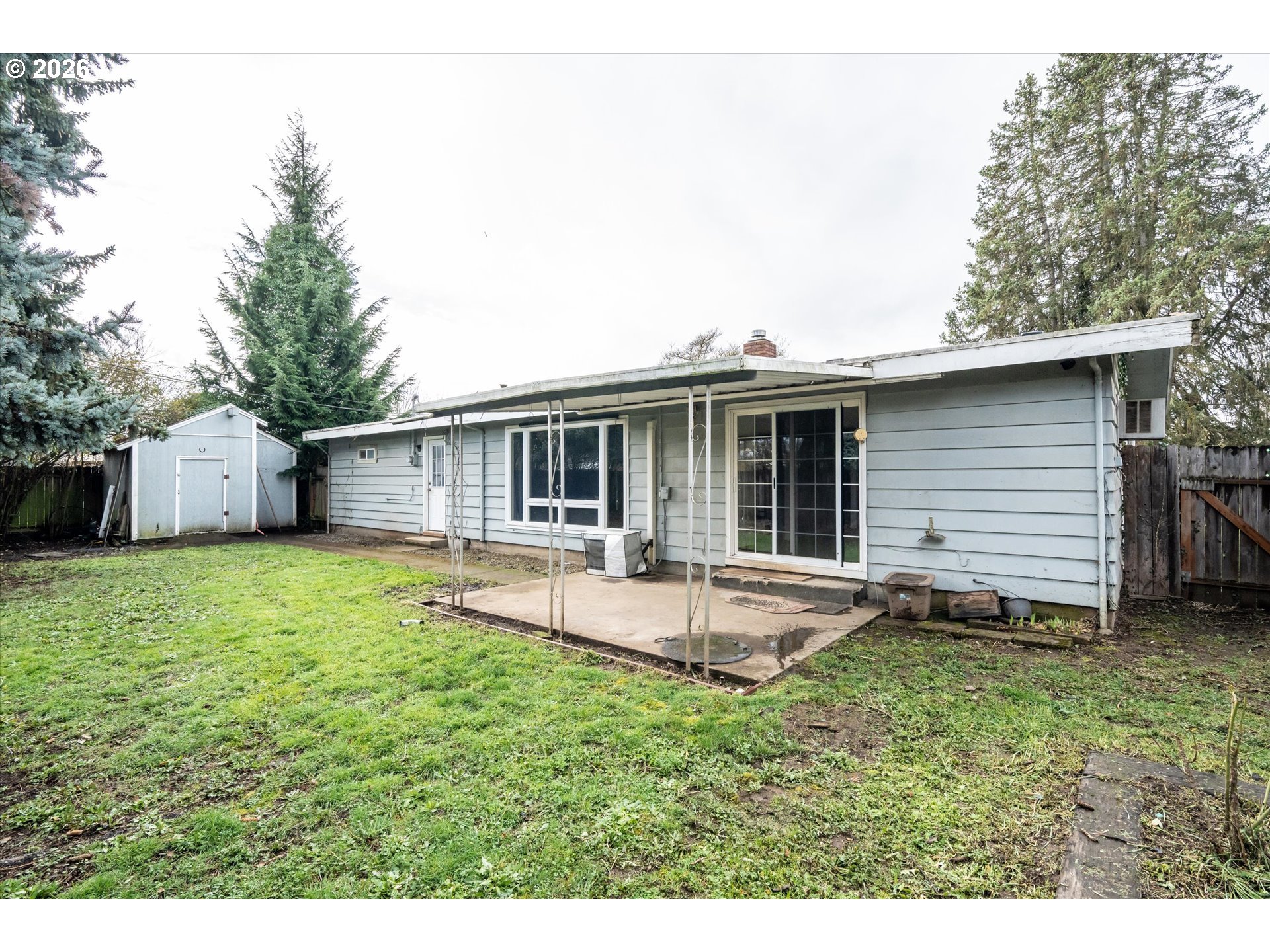 OPEN HOUSE Sunday 2/22 2-4PM!! This versatile property features a newly renovated garage conversion studio with kitchenette, full bathroom and its own private entrance perfect for multi-generational living, guest quarters, or potential rental income. The main home features 3 bedrooms, 2 bathrooms, original hard wood floors, large living room with fireplace, spacious kitchen, a big backyard and a long driveway with plenty of space to add extra or RV parking.Enjoy the convenience of being within walking distance to North Eugene High School and just minutes to Beltline and I-5 for an easy commute. Whether you are looking for extra space, an investment opportunity, or a flexible layout to fit your lifestyle, this home offers great potential in a convenient Eugene location!