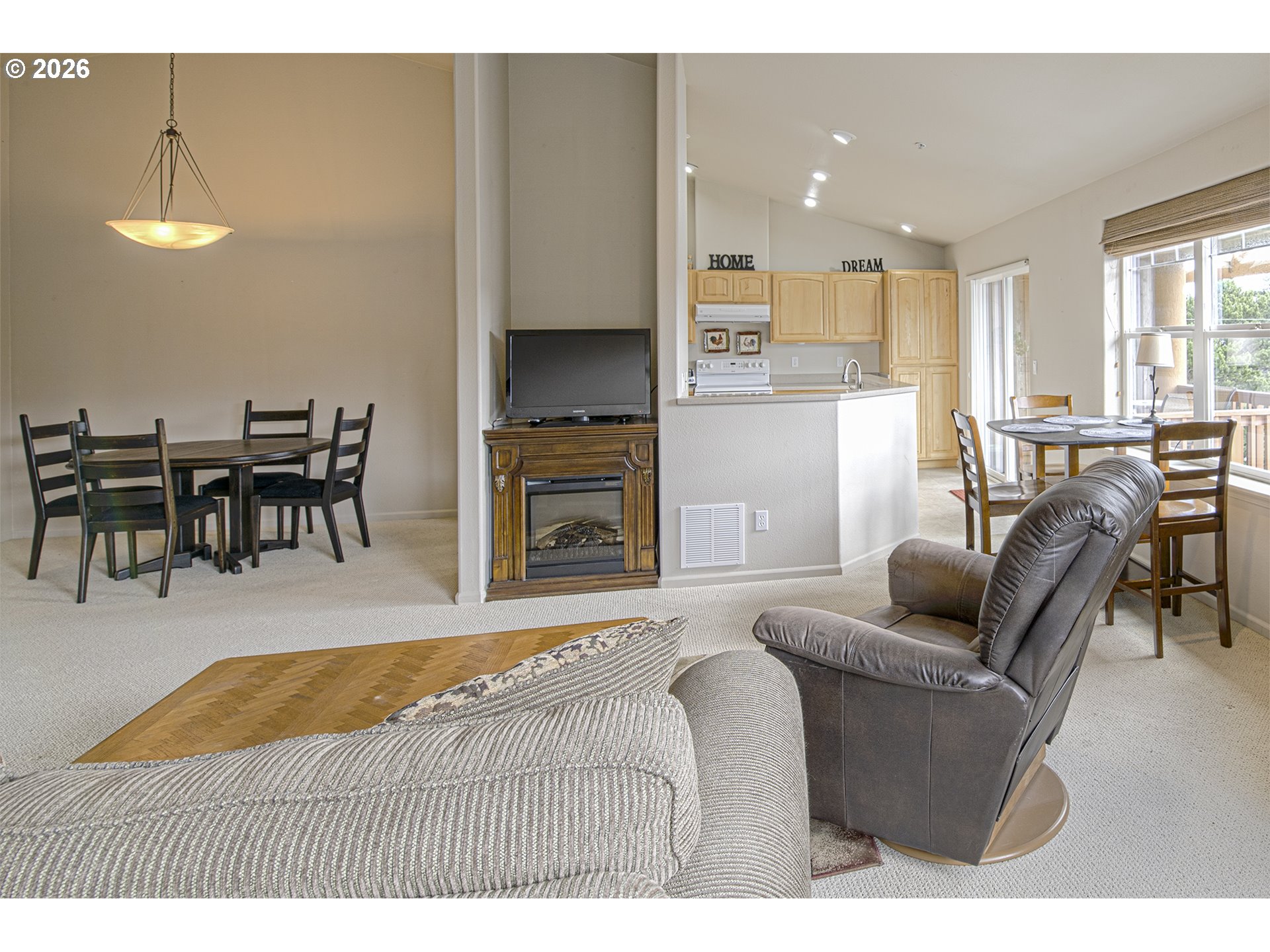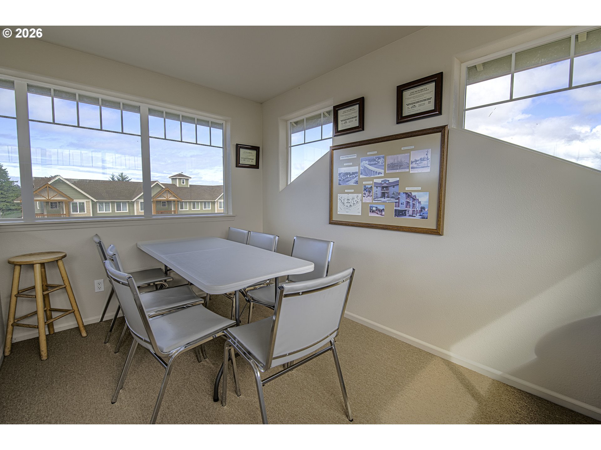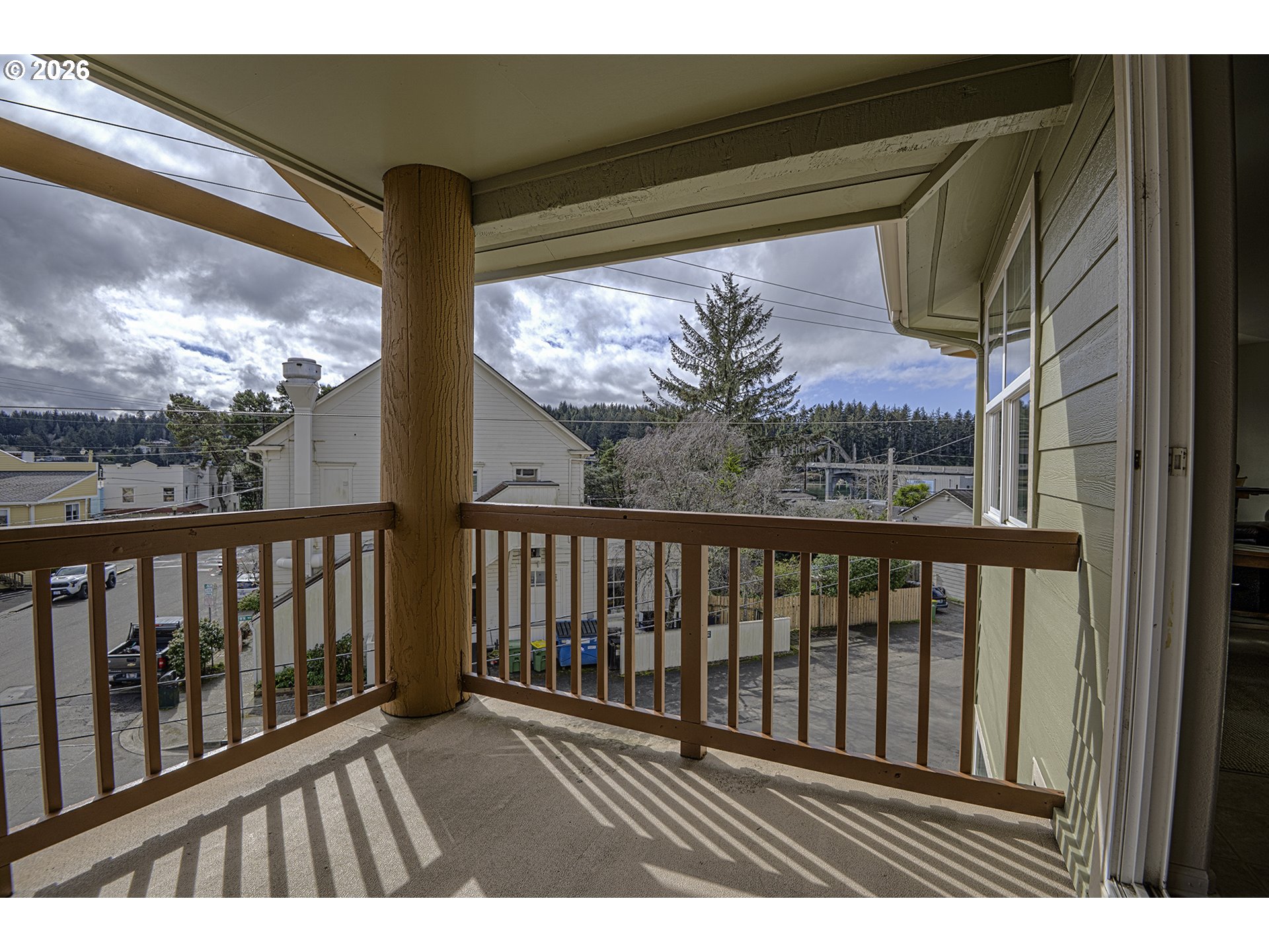 Wake up to sweeping views of the Siuslaw River and Florence’s iconic Siuslaw River Bridge from this beautifully located condo in the heart of Old Town Florence. This light-filled, one-level home features vaulted ceilings and an open floor plan creating an airy coastal feel. A rare highlight is private access to a view tower offering panoramic river and bridge views—perfect for morning coffee or evening sunsets. Relax on the covered balcony and enjoy the coastal atmosphere year-round. The primary suite includes a jetted tub and walk-in shower, plus a convenient utility room with washer and dryer. Extra storage provides room for beach gear and more. Walk to Old Town Florence shops, restaurants, galleries, and the waterfront boardwalk. Being sold fully furnished. Move right in and start enjoying coastal living.