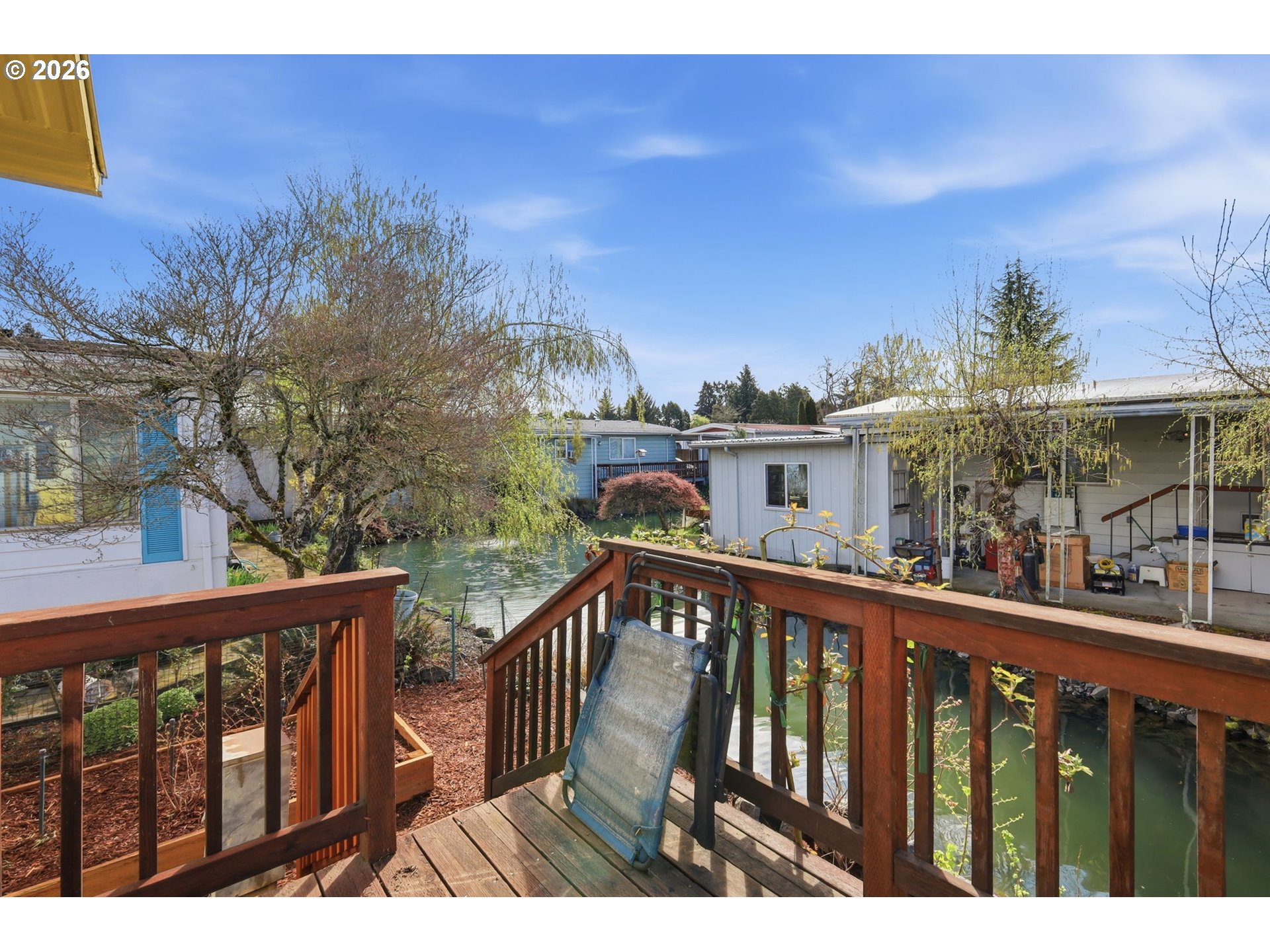 (503) 893-8874Welcome to Lakewood Vista—Resort-Style 55+ Living on the Water!Tucked away on a desirable corner lot in Eugene’s sought-after Lakewood Vista community, this beautifully updated home offers the perfect blend of comfort, style, and low-maintenance living. With 1,344 square feet, 2 bedrooms, 2 bathrooms, and a dedicated office, this thoughtfully designed home lives larger than expected.Step inside to a spacious, light-filled living room featuring expansive windows and a built-in wet bar complete with a mini fridge—perfect for entertaining or relaxing at home. The generous dining area showcases tile flooring and opens seamlessly to a brand-new deck, creating an ideal indoor-outdoor flow.The kitchen is both functional and inviting, offering tile floors, updated appliances, and ample workspace. Just off the main living area, the office features rich hickory hardwood floors and custom built-in bookshelves—perfect for hobbies, reading, or working from home.The primary suite is a true retreat, complete with private deck access overlooking the peaceful canal—your own slice of waterfront serenity. The ensuite bathroom has been beautifully updated with a walk-in tile shower, modern finishes, and a spacious closet.Additional highlights include:Indoor utility room with custom cabinetryExtensive 2015 remodel including PEX plumbing, Milgard windows, and a 30-year roofNew furnace & A/C (2022) and exterior paint (2024)Carport + approx. 200 sqft of covered storage with heated mini shop (power + Cadet heater)Automatic irrigation, multiple water spigots, and two new raised garden beds.Lakewood Vista 55+ Community Amenities Include:Gated entry, private lake, fitness center, indoor pool & spa, library, billiards room, community center, and a full calendar of activities—all in a quiet, beautifully maintained setting.Enjoy peaceful waterfront living with all the perks of an active, secure community—this is the lifestyle you’ve been waiting for.