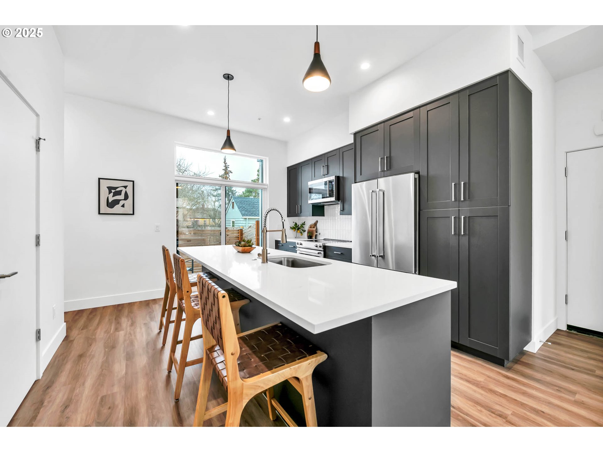 SPECIAL END OF YEAR PRICING! Don’t miss this chance to own the final unit in this popular floor plan—now under 500k for a limited time. New construction, move-in ready, and priced to sell before year-end. 181 Civic Dr offers 2-bedrooms and 2.1-bathrooms. Inside, you'll find gorgeous finishes throughout, including luxury vinyl plank flooring, quartz countertops, large windows and high ceilings. The lower level features an open-concept living area and a modern kitchen equipped with stainless steel appliances, perfect for entertaining. A half bathroom is conveniently located on this level. Upstairs, both bedrooms boast en-suite bathrooms, providing privacy and comfort. A cozy nook offers the ideal space for a home office or study area.Outdoor living is just as inviting with a charming front deck and a fenced backyard. The HOA takes care of all landscaping, ensuring a beautifully maintained exterior year-round. HOA allows rentals of 30+ days—ideal for mid-term stays, seasonal rentals, or extended visits. The attached one-car garage completes the package, providing secure parking and additional storage.This new construction home is perfectly situated in a prime location near Civic Park, the University of Oregon, and South Eugene High School. Enjoy the convenience of nearby restaurants, easy access to public transportation, and a vibrant neighborhood with countless amenities. Located at The Townhomes at 20th & Amazon, where luxury meets convenience in the heart of Eugene.