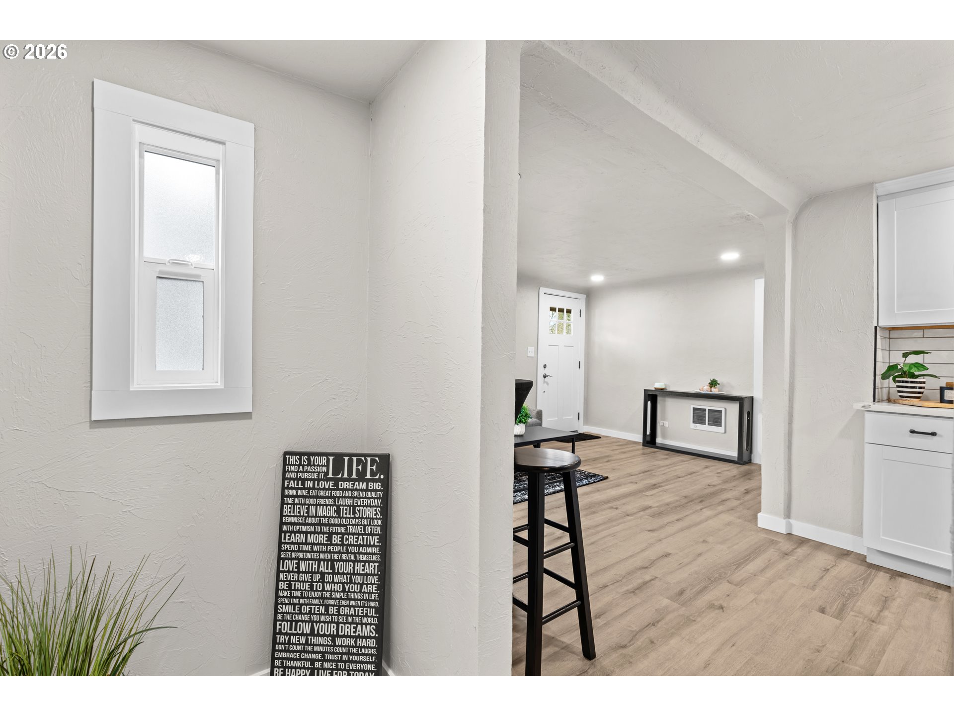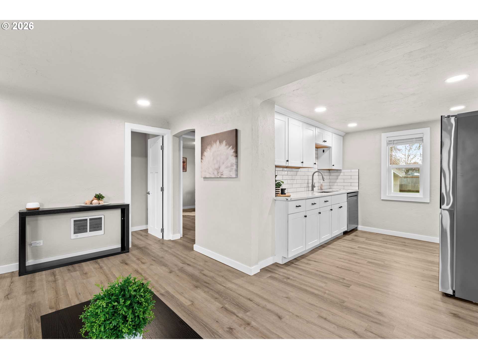 Welcome to this delightful, updated 3-bedroom, 1-bath bungalow nestled in the heart of Springfield, near services and easy access to the freeway. In 2023, this gem received a top-to-bottom revamp featuring shaker cabinets, modern stainless-steel appliances, luxury vinyl plank flooring, interior and exterior paint and stylish canned lighting and fixtures. The lustrous quartz kitchen countertops add to the modern ambiance, paralleled by new baseboards, interior doors, as well as a new driveway that further enhance the property. Keeping practicality in mind, a washer and dryer are included, ready for laundry days. The exterior complements the property with a brand-new sod in the front yard, and a sizable backyard featuring an outbuilding—perfect for outdoor family activities or gardening enthusiasts. Plenty of room to add a garage or carport and enough room for RV parking. Under the city's provision, there might be a possibility to add an ADU or partition lot, making this property highly versatile. Don't miss this move-in ready haven that marries style with functionality. Buyer to perform all due diligence.