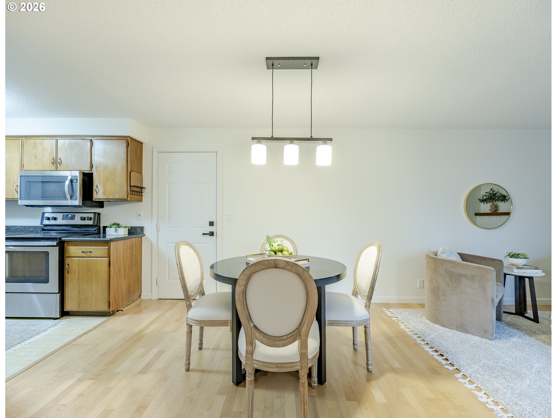 Location, Location, Location! 1935 Montreal delivers the features that matter most: a versatile layout, quality finishes, and a highly desirable setting in the 97408 area, within the Sheldon School District. Warm and inviting, this home offers a quiet, relaxing environment surrounded by mature trees and established landscaping.Inside, hardwood floors run throughout, adding warmth, durability, and a cohesive feel. Two distinct living spaces provide flexibility for everyday living, entertaining, or working from home, offering both connection and separation. Natural light fills the living areas, enhancing the home’s comfortable and functional design.Recent updates include granite countertops, a fully remodeled bathroom, beautiful flooring throughout, vinyl windows, and a heat pump—providing both style and peace of mind.Situated on a generously sized lot, the expansive outdoor space includes a concrete patio and offers excellent potential for entertaining, gardening, or recreation. Conveniently located within walking distance to schools and shopping, and close to parks and commuter routes, this property combines livability, comfort, and long-term value.