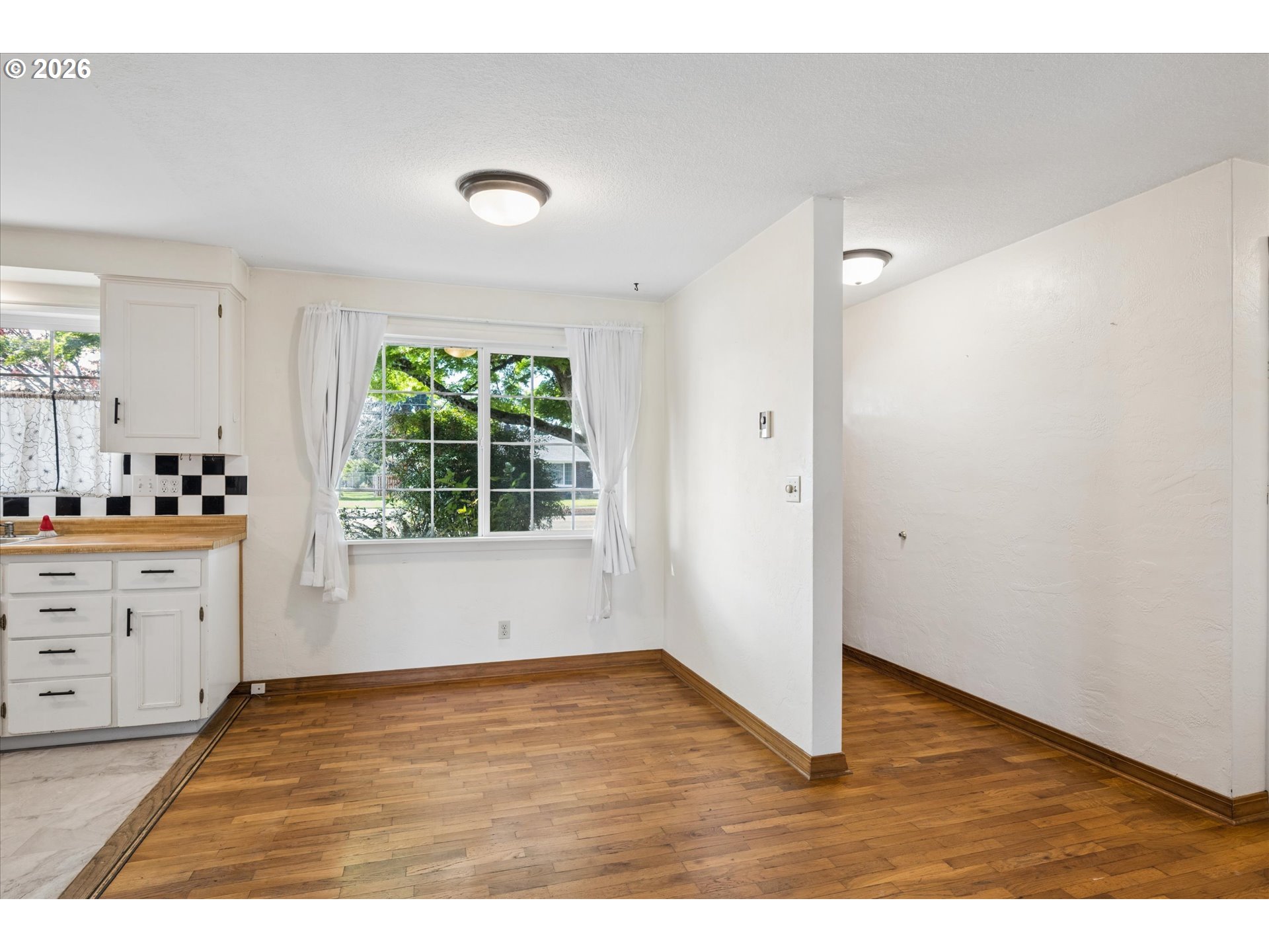 Set in Springfield’s Hayden Bridge area, this 3BR/1BA home offers a peaceful connection to nature both inside and out, offering an easy-living, single-level floor plan designed for both relaxation and convenience.Greeted by a tremendous shady maple in the front yard, step inside to discover warm wood floors that flow throughout the home, highlighted by a bright & airy interior. The whimsical black-and-white kitchen adds personality, featuring eat-in dining space and ample storage. A wood-burning fireplace with built-ins adds both function and character for the perfect gathering spot on cooler evenings.A standout feature is the delightful enclosed sunroom: a serene retreat where you can enjoy morning coffee, read, craft, or simply take in the relaxing views year-round. Outside, the magic continues. Set on nearly a quarter acre, the yard offers endless potential and inspiration, with established pathways, raised garden beds, and a charming trellis arch that evoke the feel of an English country garden. Whether you’re an avid gardener or simply love outdoor beauty, this space is ready to bring your vision to life. Additional practical features include a 2-car garage, fenced yard, and a toolshed for extra storage. This simple, well-cared-for home blends warmth, character, and natural beauty that truly sets it apart with inviting spaces and a yard that offers room to flourish!