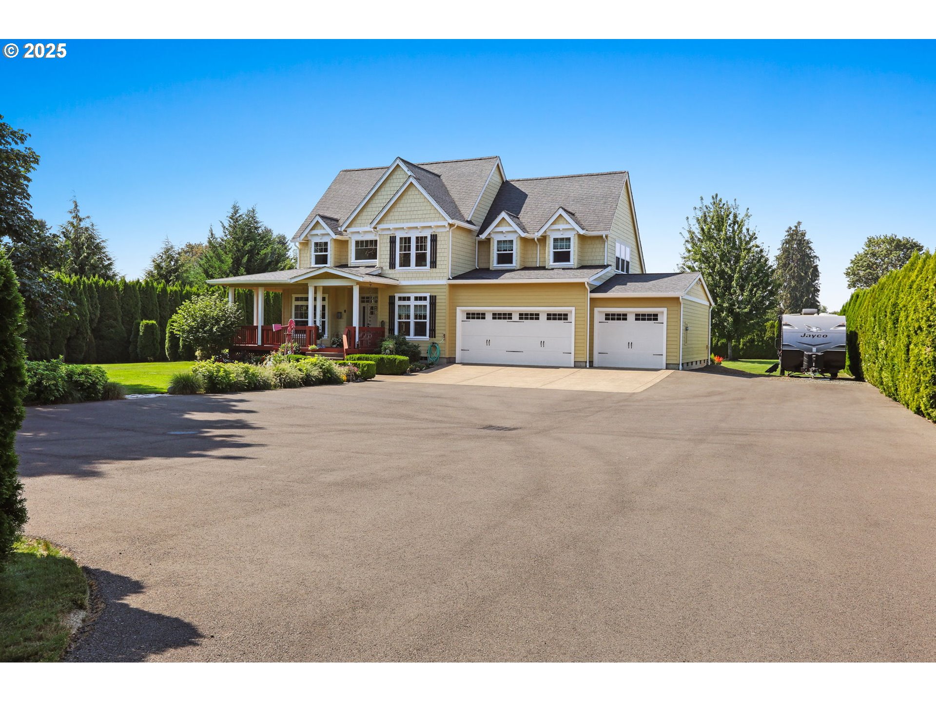 (503) 893-8874Welcome to your dream property! This farm-style estate on one park-like acre offers the perfect blend of timeless charm and modern convenience. Designed for multigenerational living or income production, this rare find includes a stunning main residence and adorable guest cottage, ideal for long or short-term rental, extended family, or visiting friends. Main Residence - Farm-style home with wraparound porch offers hickory wood floors, soaring vaulted ceilings, and an abundance of natural light. The living room centers around a cozy propane fireplace, while the formal dining room boasts beautiful built-ins. The kitchen impresses with new double ovens, a built-in microwave, a generous pantry, an island with a sink and eating bar, and a charming breakfast nook w/built-in bench seating and storage. The primary suite is a retreat of its own with French doors opening to the deck and serene views of the beautifully landscaped backyard, a spacious walk-in closet, and a spa-inspired bath featuring double sinks, a walk-in shower, and jetted tub. Upstairs, discover a versatile 5th bedroom/bonus room w/a large walk-in closet, two window seats w/storage, and a wet bar, also perfect for a media room, playroom, or guest suite. A loft area with built-ins adds even more usable space. There is an abundance of storage throughout the home & two heat pumps for year-round comfort and efficiency. Guest Cottage - With 1,388 sq ft, 3 bedrooms and 1 bath this charming second home offers endless possibilities and is perfect for extended family or as a rental to generate extra income. Additional amenities include a 3-car garage, 2 septic systems, tons of parking for all your toys, RV parking & hookups. Nestled in an old-country neighborhood that’s peaceful and quaint, this property delivers country living with in-town convenience. Enjoy beautifully landscaped grounds bursting with plants and flowers, along with the tranquility of nature all around.