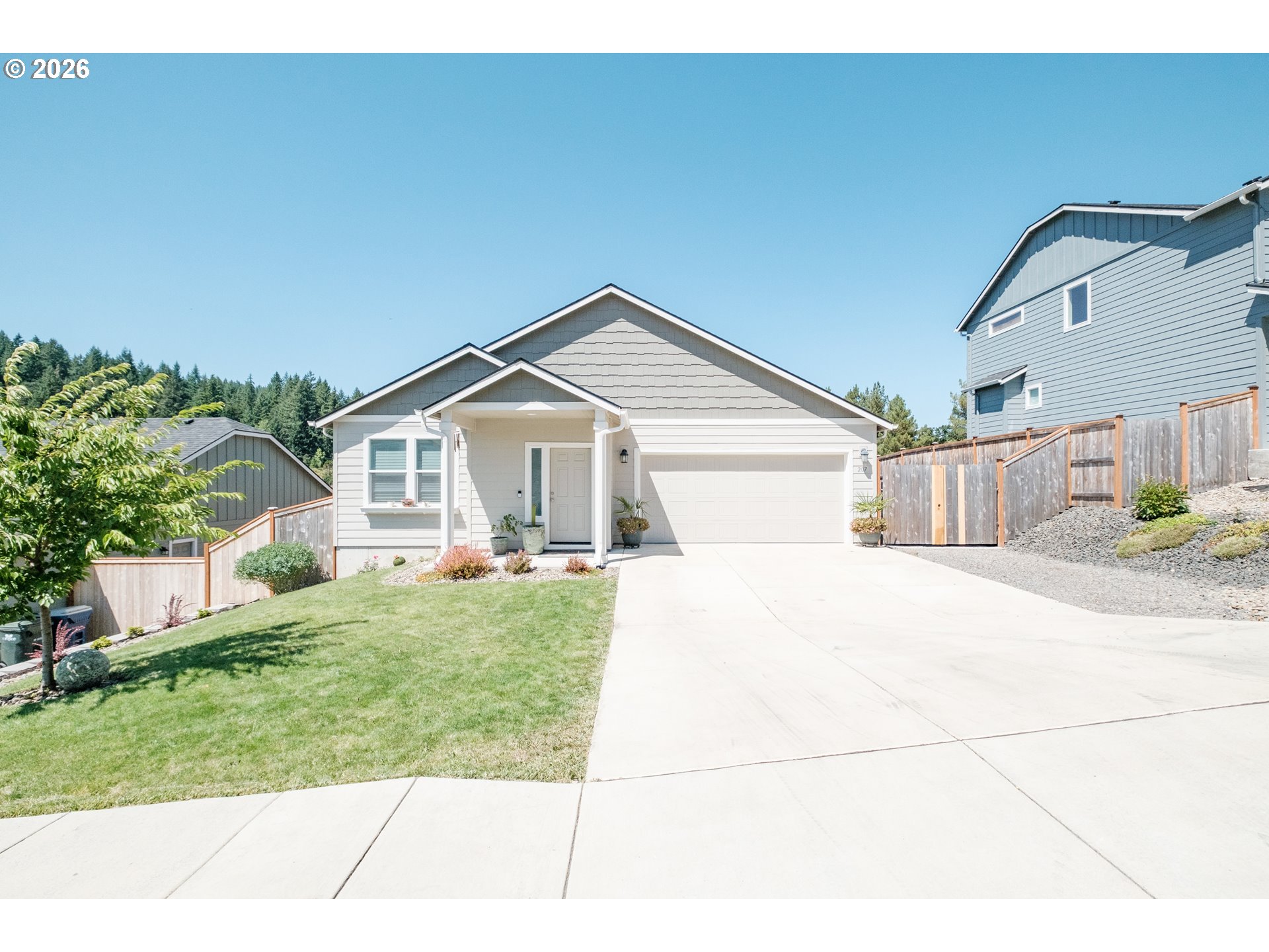 Don’t miss this stunning single-level home in Crestview Estates, just minutes from town and close to both Dexter Lake and Fall Creek Reservoir—perfect for boating, fishing, and weekend escapes. Built in 2022, this home offers modern comfort with thoughtful upgrades throughout, all while providing peaceful country living with a short commute to Springfield or Eugene. Inside, enjoy continuous luxury vinyl plank flooring throughout the home, soft-close cabinets, and a sleek induction range. The open-concept layout is ideal for entertaining, and the custom-built office desk makes working from home a breeze. Every room is wired with Cat 6 outlets for fast, reliable connectivity. Every care was taken into consideration with this home including the garage with its sealed floor, insulated walls and door to maximize comfort and efficiency! Step outside to a large covered patio with an outdoor fan and 220V 50A circuit, ready for your hot tub or sauna. Enjoy unobstructed views of the foothills from your fully landscaped yard with sprinklers. A 10x20 gravel pad provides RV or boat parking. Holiday decorating is easy with pre-wired Christmas light plugs.Located in a quiet, well-kept neighborhood with great views, this home is part of a community served by a highly rated high school. The relaxing drive home is the perfect way to end your day.