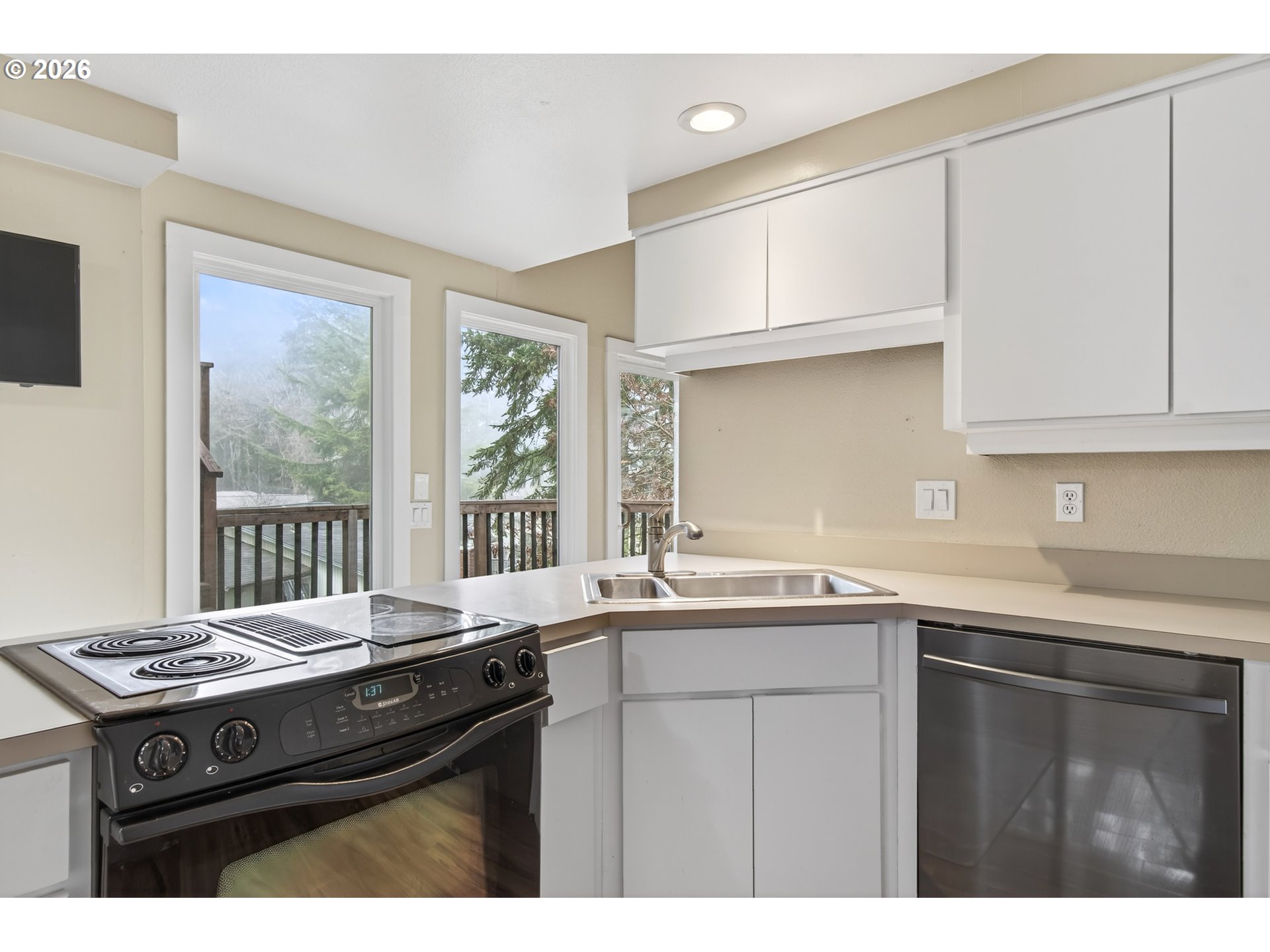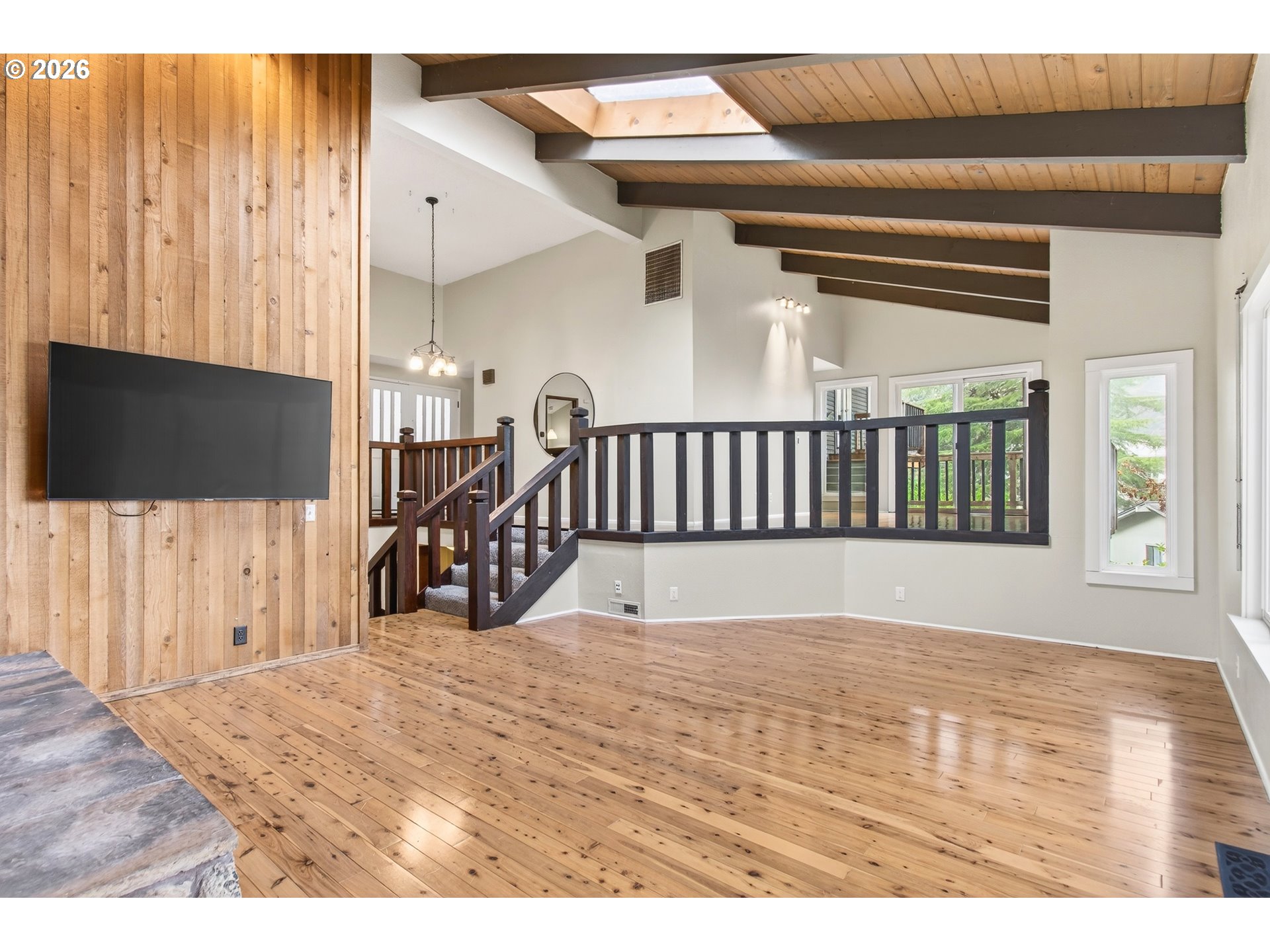 Custom tri-level, contemporary home in desirable SW Hills. High vaulted ceilings and beautiful views. Sunken living room with fireplace and primary suite with bathroom on main level. Large family room opens to deck. Kitchenette and 1 bedroom with its own entrance on lower floor. Lots of windows. New Metal roof in 2018 and all new decks 2022.