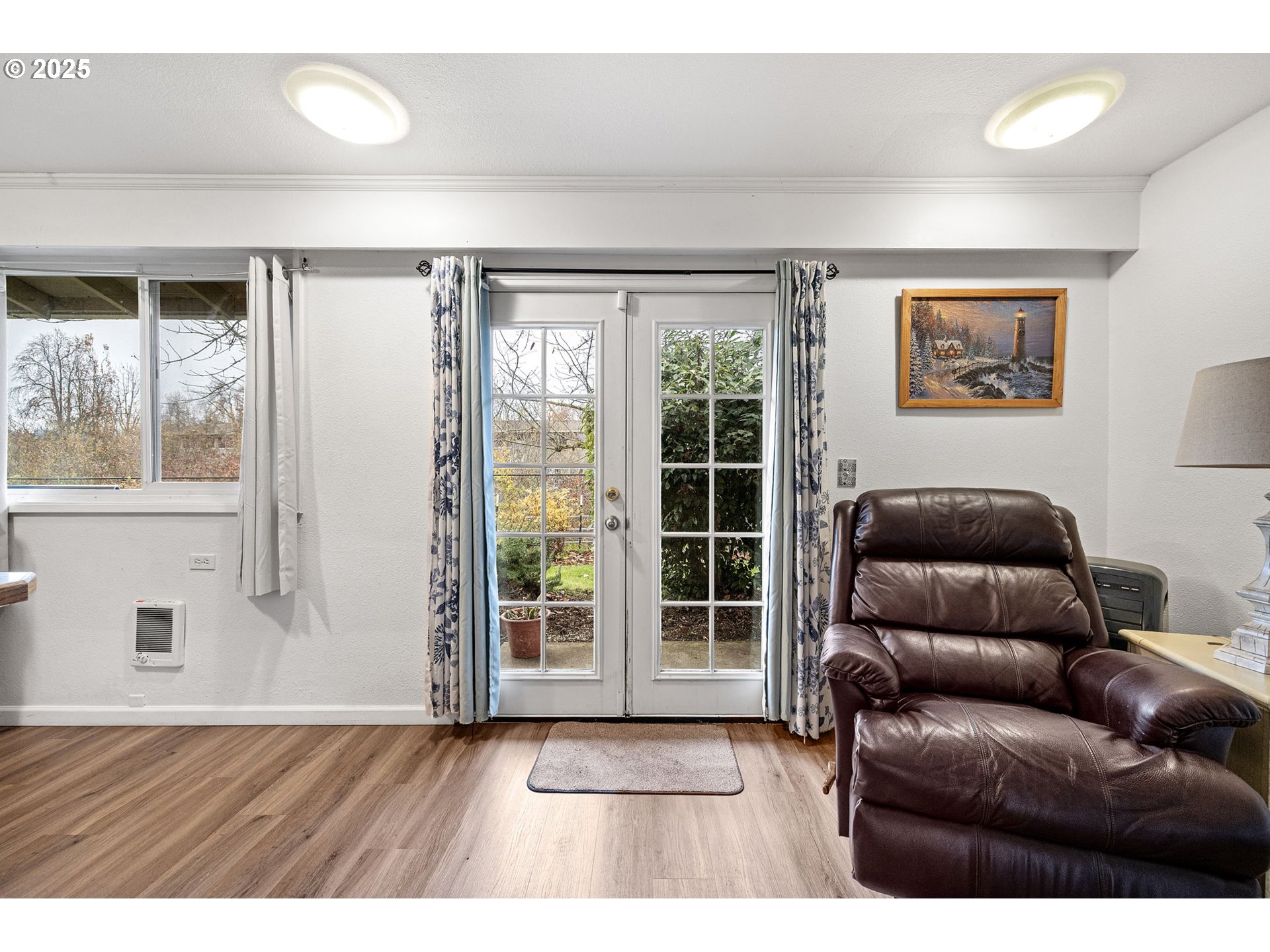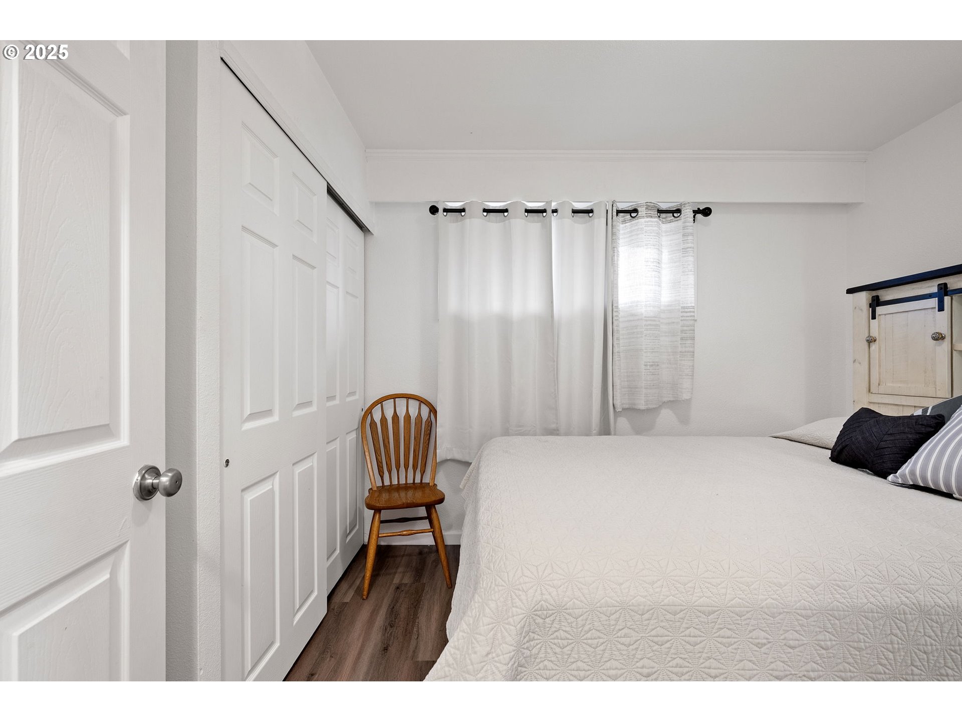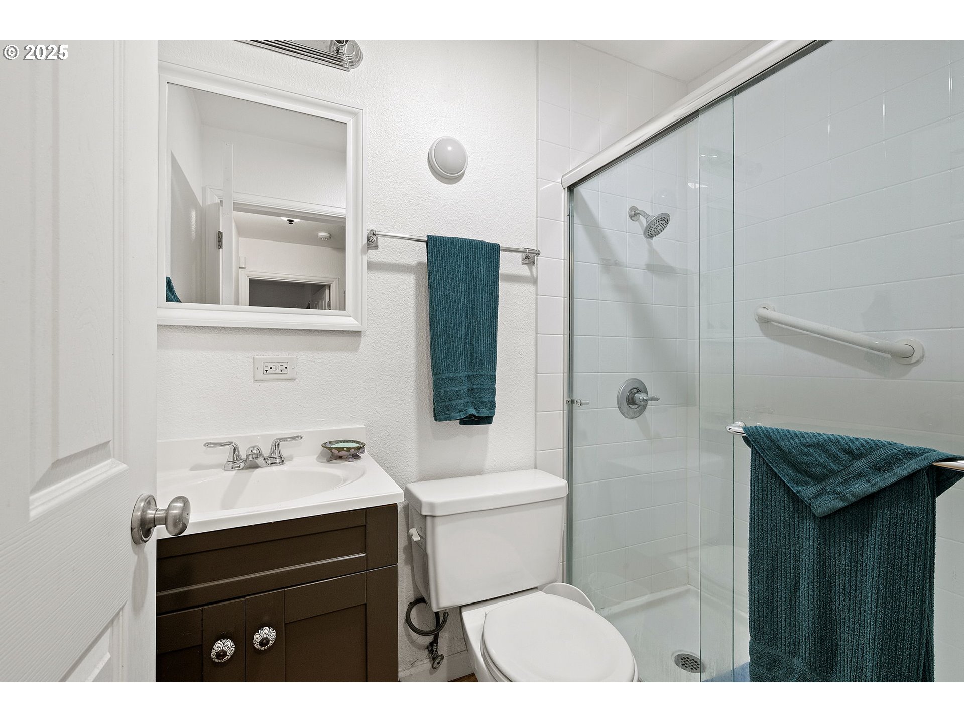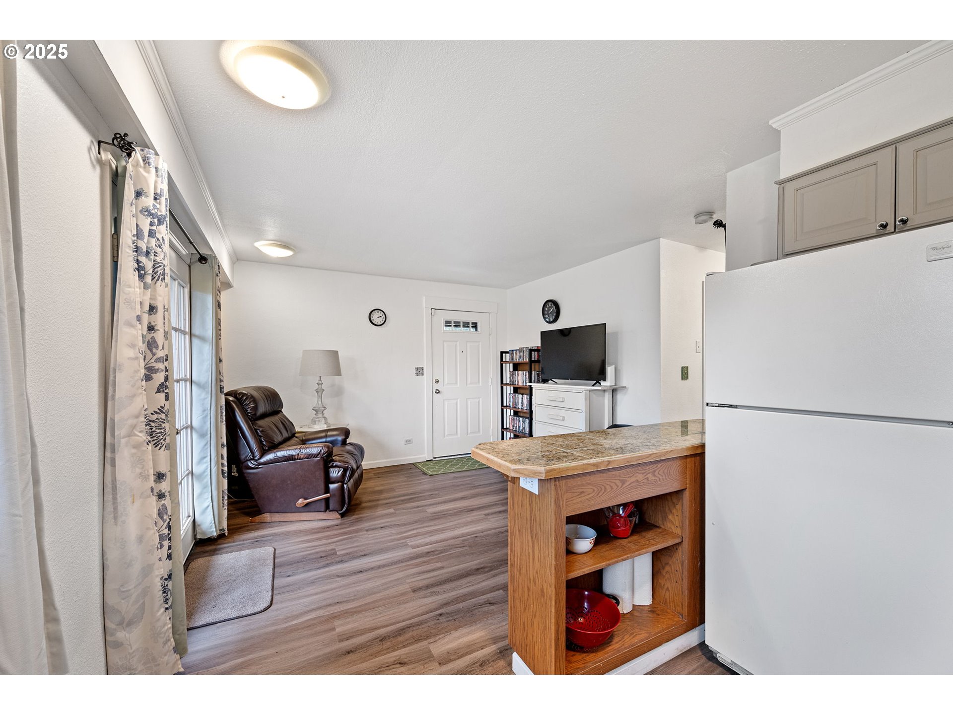 Exceptional value for this one level main floor unit with a large common area yard! Light & bright unit with kitchen open to living room. All appliances stay, including deluxe LG stack washer, dryer and newer range. The unit also boasts a newer walk-in shower and luxury vinyl plank flooring. Kitchen features granite counters and breakfast bar. Both bedrooms feature generous closets and additional storage in the built-ins. French doors guide you to a tranquil patio to enjoy the soothing sounds of Amazon Creek and rustling leaves along the adjacent walking paths.Plus there's a partially covered front patio, security system and small outdoor shed. Unit comes with its own designated covered parking space #6 and a conveniently located mailbox. Westmoreland Village is a well-operated and popular condo complex features a fitness center & community room. There are also lovely outdoor common use areas, including an outdoor kitchen/BBQ and picnic area. The HOA covers landscaping, management services, access to all the recreation and common facilities, water, sewer, and garbage! Located next to Fern Ridge bike path and on the bus-line, you'll find convenient access to all Eugene has to offer, whether shopping, great schools, entertainment, With the complex being just 3 miles from the University of Oregon this unit is ideal for an investment or owner occupy. Condo has been priced to allow further updates and is being sold "as is". Don't miss this affordable gem in a super convenient location!