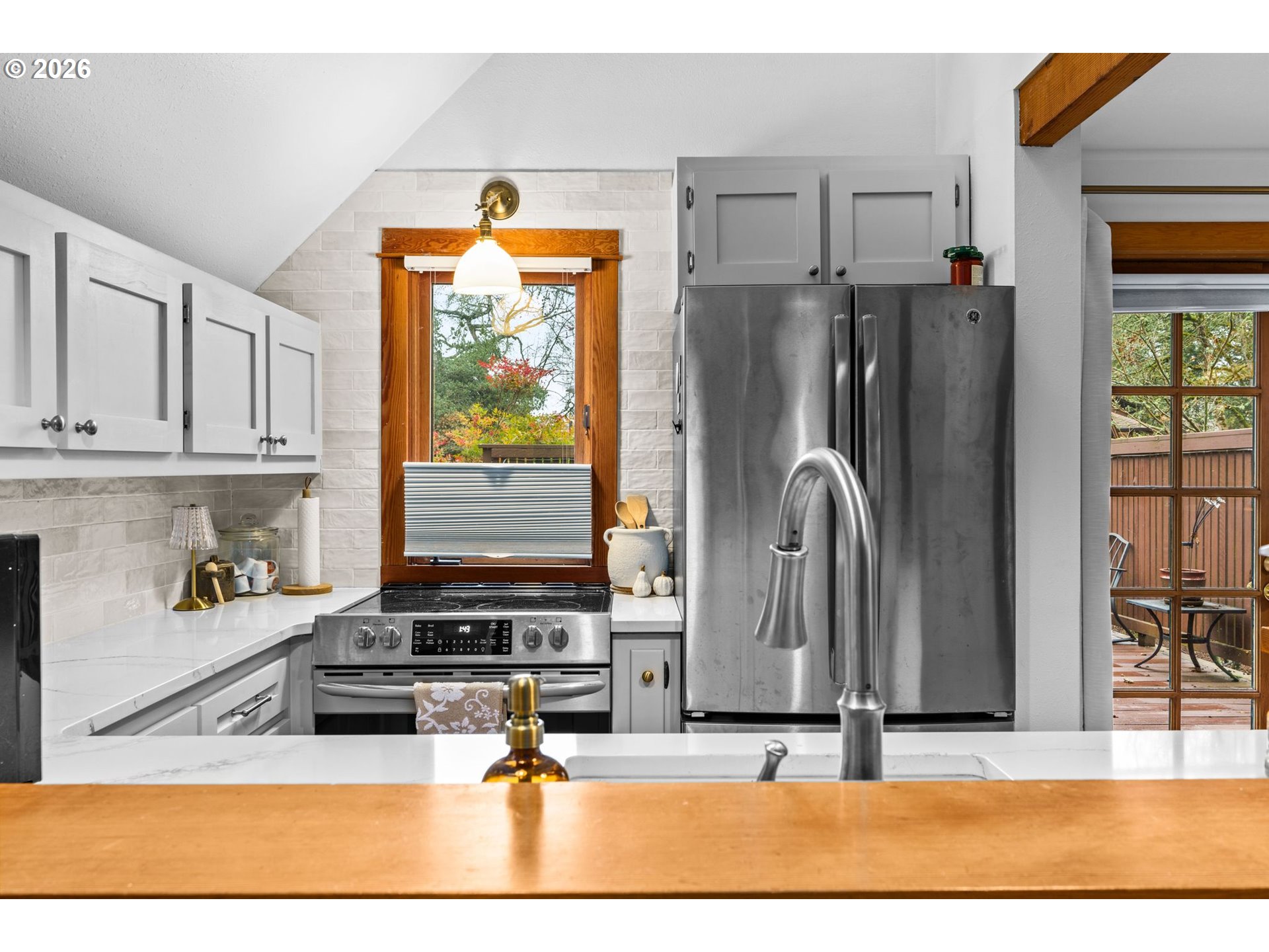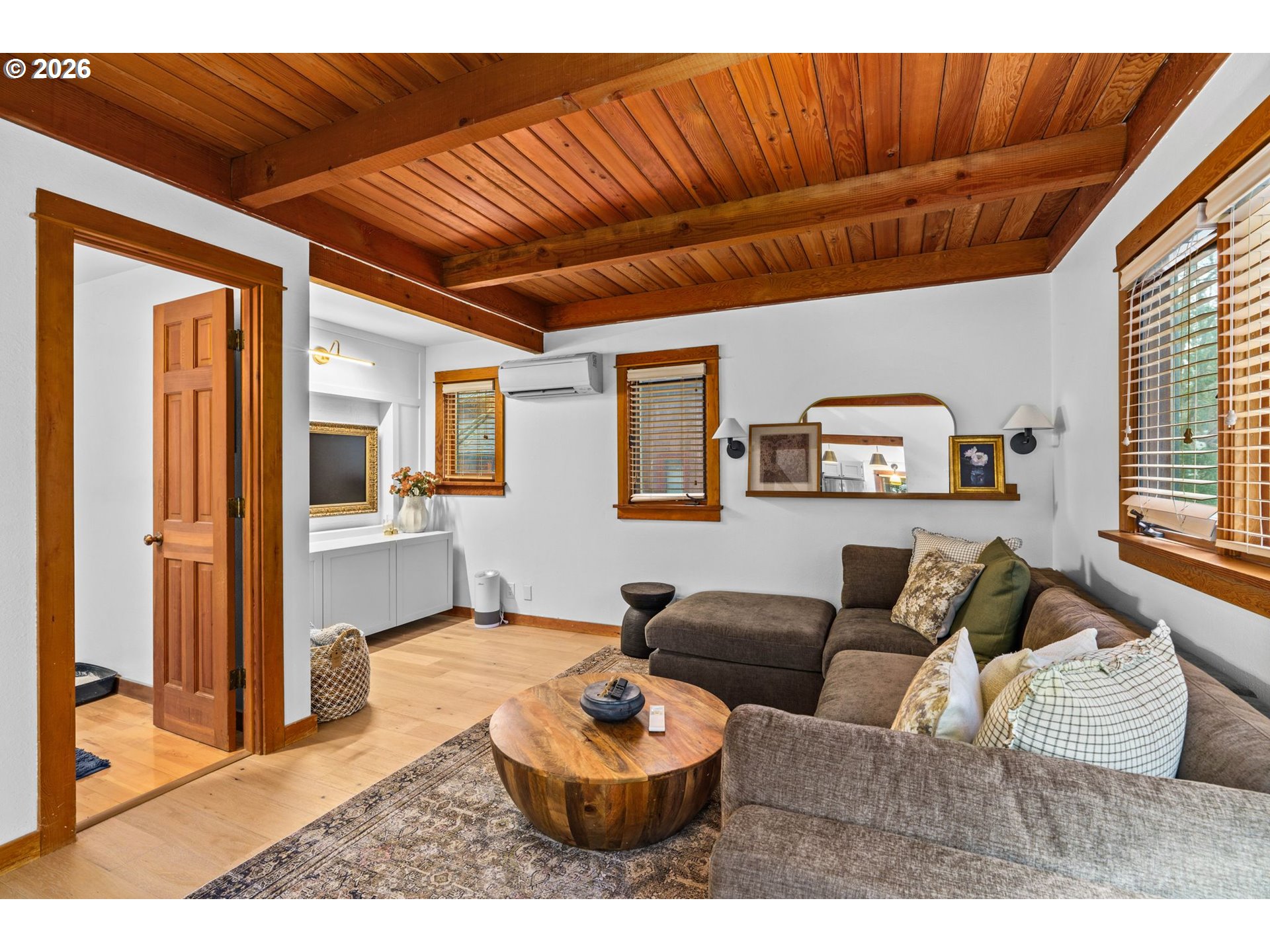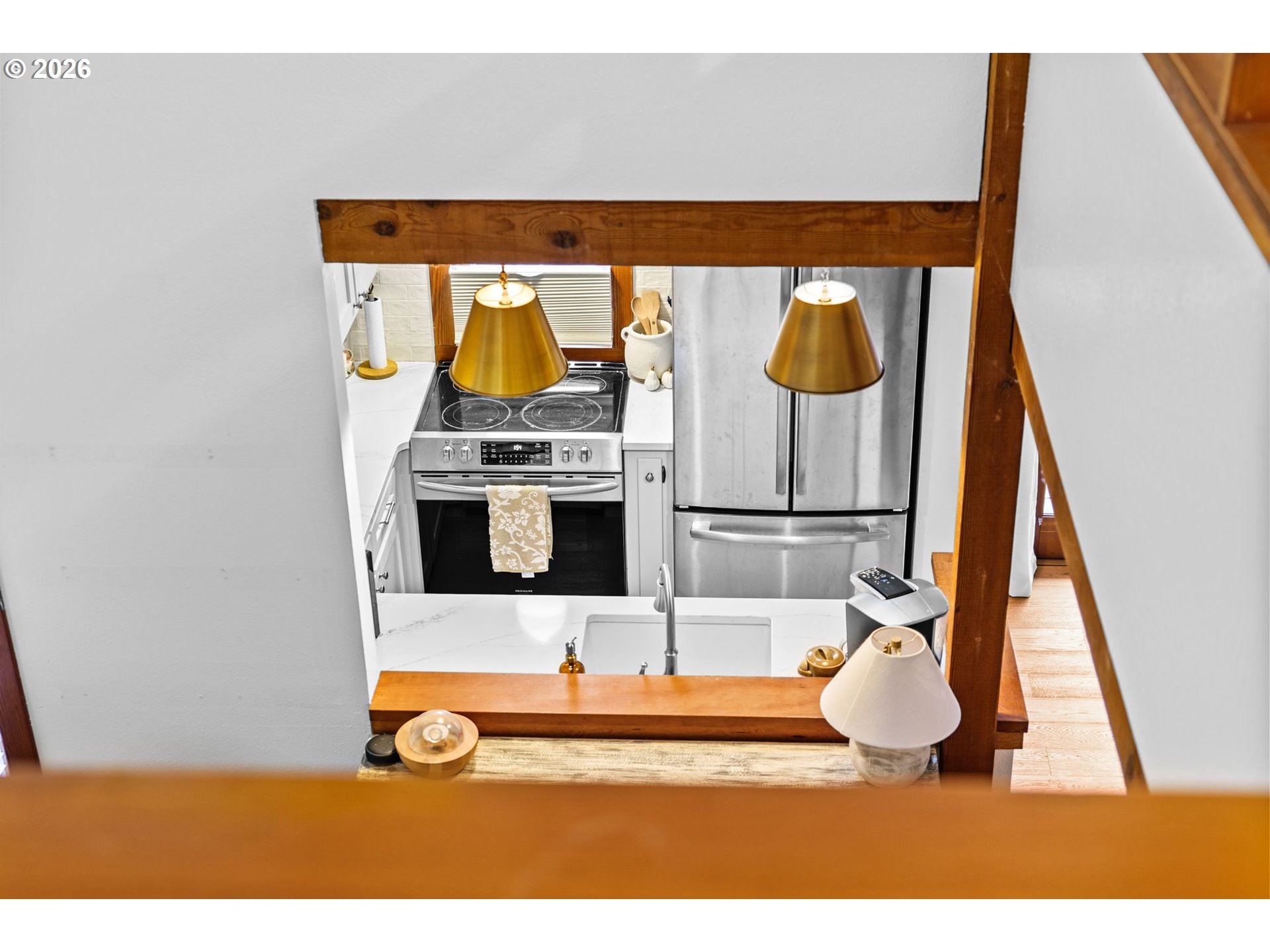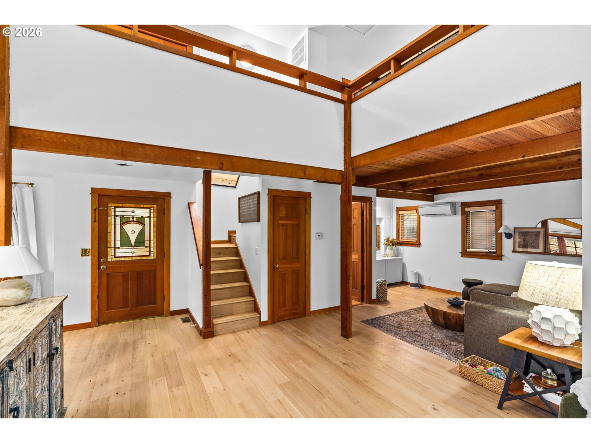 Welcome to your serene retreat! This thoughtfully updated home offers the perfect blend of modern comfort and natural beauty. The open-concept layout creates an inviting flow throughout, while the master bedroom loft provides a private sanctuary above.The kitchen shines with quartz countertops and stainless steel appliances, ready for both everyday living and entertaining. Recent updates include new flooring and newly replaced roof and skylights that bathe the interior in natural light. Step through the French doors onto the back deck and discover your peaceful outdoor oasis, surrounded by beautiful trees that provide both privacy and tranquility. Additional conveniences include in-house laundry and AC for year-round comfort. This quiet, tree-lined setting offers a rare escape from the everyday while keeping you perfectly positioned—just a short drive to the golf course and all essential amenities. Don't miss this move-in ready gem!