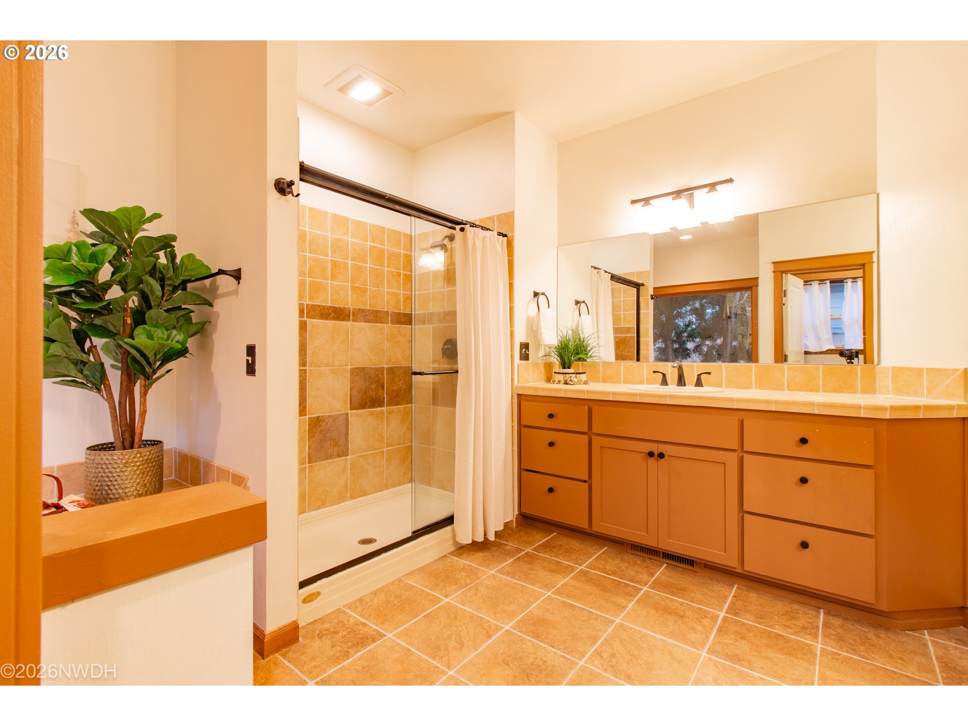This custom-built, single-level Craftsman-style home showcases exceptional design and quality throughout. A welcoming front porch leads into an open-concept floor plan featuring high ceilings, arched doorways, and distinctive bamboo doors. The spacious great room offers a gas fireplace, built-in cabinetry, and surround sound, with seamless access to a large, partially covered patio overlooking a beautifully fenced and fully landscaped yard complete with a sprinkler system.The kitchen is thoughtfully appointed with Silestone countertops, a gas cooktop, an island, and a pantry, ideal for both everyday living and entertaining. The expansive primary suite features a walk-in closet, coffered ceilings, a soaking tub, a separate shower, and dual vanities. Additional highlights include a three-car garage and ample off-street parking, providing both convenience and functionality.