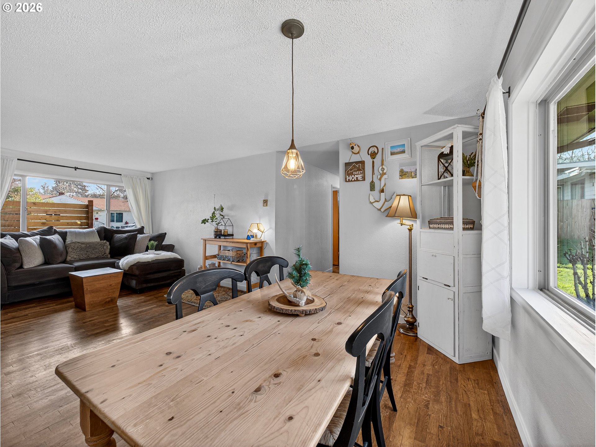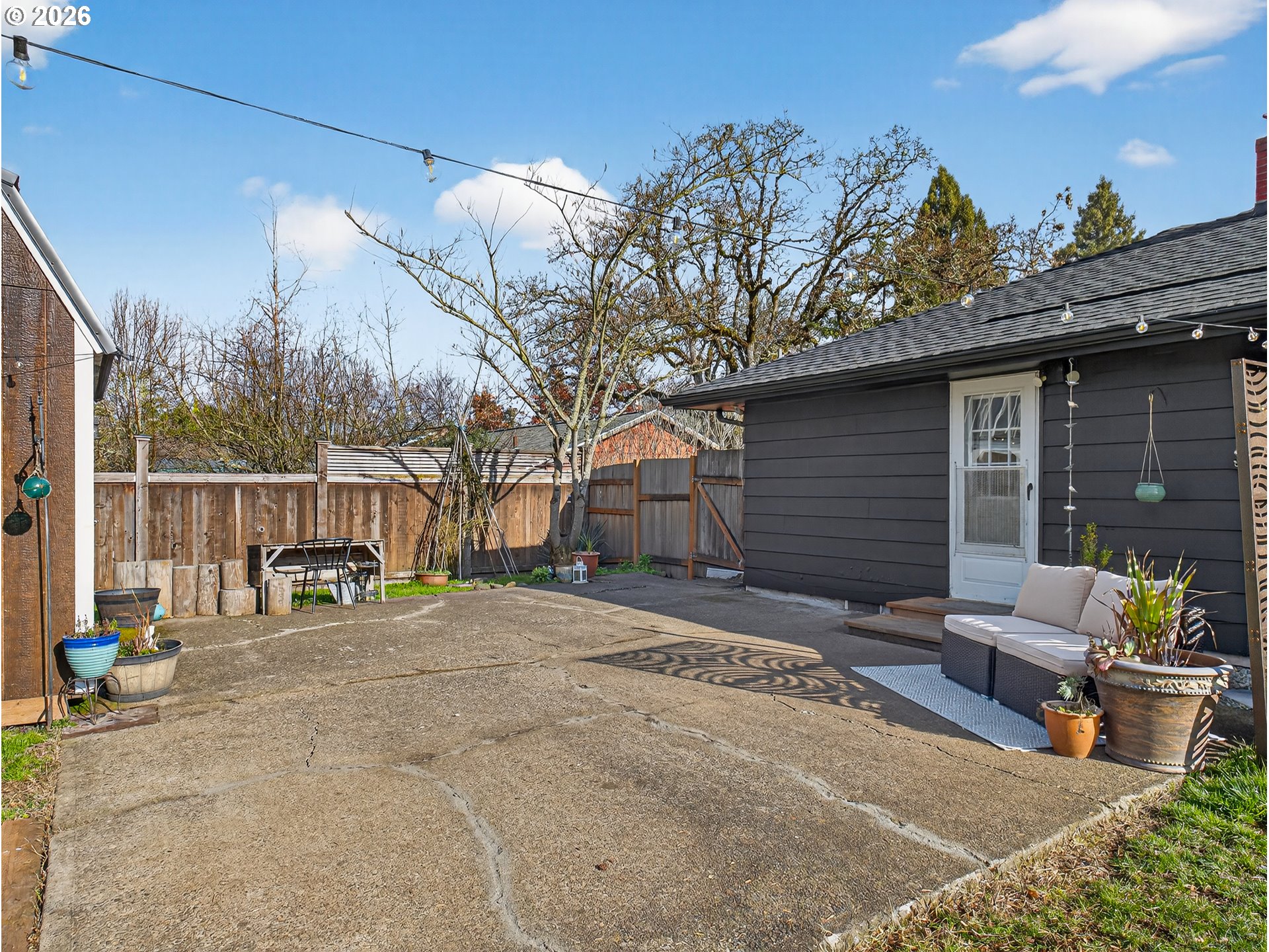 Welcome to this charming 3-bedroom, 1-bath home set on a generous 0.21-acre lot in a quiet, well-established SW Eugene neighborhood. Thoughtfully updated while preserving its original character, this home offers comfort, efficiency, and clear pride of ownership throughout. Recent improvements include, new roof (2020), fresh interior and exterior paint, newer vinyl windows, updated electrical, freshwater lines, a new vapor barrier and insulation in the crawlspace, and an extensive French drain system surrounding the home. A well-maintained mini split provides efficient year-round heating and cooling, and a new garage door adds convenience and curb appeal. Inside, you’ll find original hardwood floors, updated lighting throughout, bright living spaces, and a modern electric faux fireplace that adds both style and supplemental heat. The layout feels open, warm, and inviting. The updated bathroom features modern finishes, a walk-in shower, and thoughtful upgrades. The fully fenced backyard is a standout, offering garden beds, berry bushes, a large strawberry patch, established landscaping, patio space, and newly planted trees. There is also room and existing structure for a potential chicken coop. Alley access, camper or trailer parking, and a 30-amp RV outlet add flexibility and functionality. Additional features include a lofted garage with shelving and vent fan, plus a fully insulated 10x12 lofted barn—ideal for storage, hobbies, or creative space. Located by parks, green spaces, and local amenities, this move-in-ready home combines a peaceful setting with everyday accessibility. A well-cared-for property with meaningful updates you’ll truly appreciate.