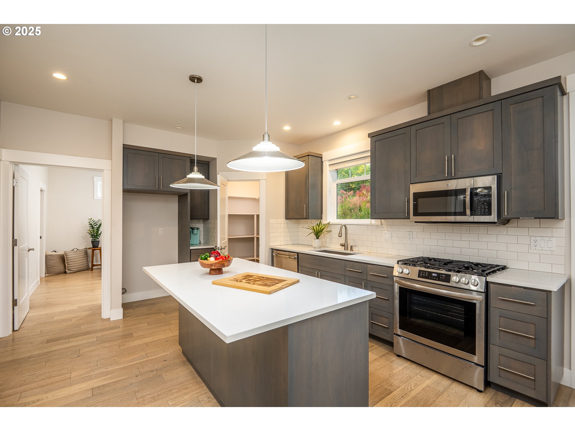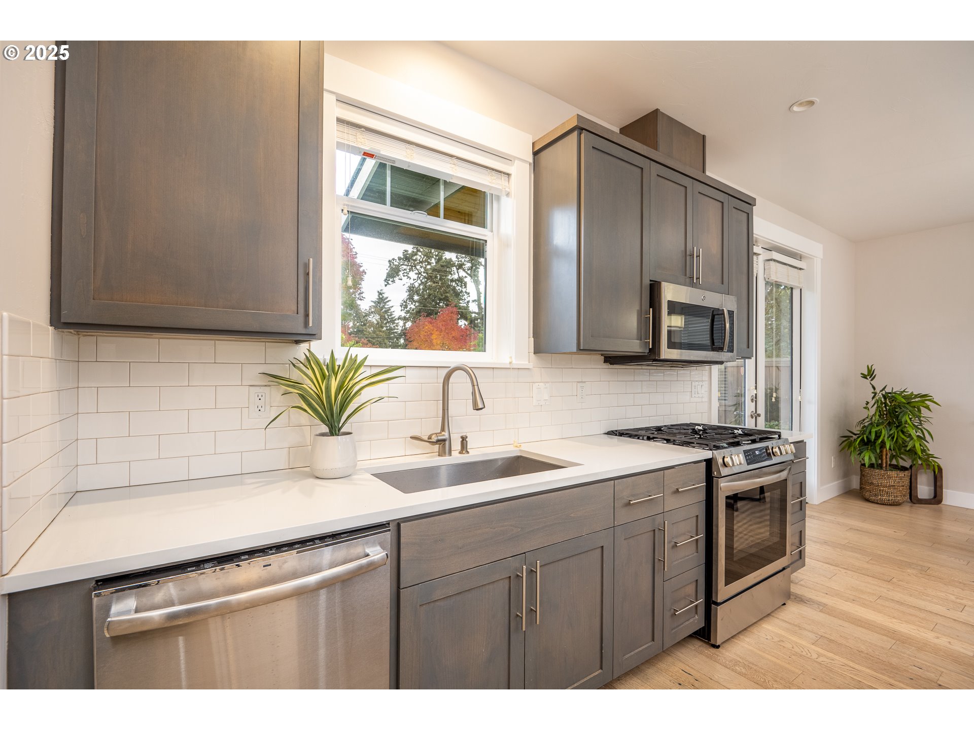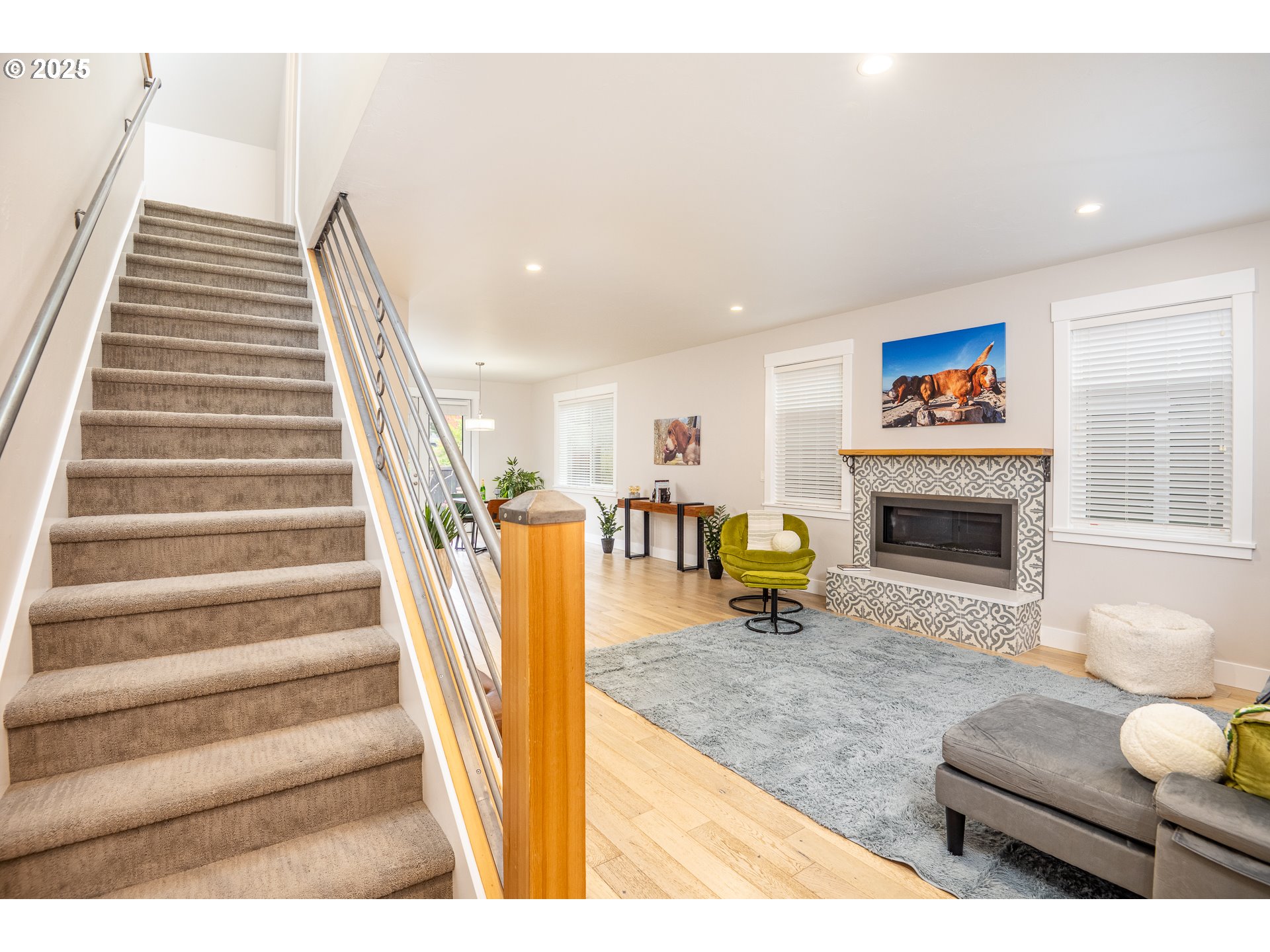 This contemporary and modern home showcases sleek architectural lines and minimalist design. Open spaces flow seamlessly throughout, creating an airy atmosphere with abundant natural light and clean finishes.This three-bedroom, two-and-a-half-bathroom residence features a spacious great room with vaulted ceilings and a gas fireplace for cozy evenings. An additional room could be a 4th bedroom, without a closet. The location offers exceptional convenience with proximity to Oakway Center for shopping and dining. This home offers excellent access to Sheldon High School, while outdoor enthusiasts can enjoy nearby Alton Baker Park with its recreational opportunities and scenic trails.The surrounding area provides the perfect balance of suburban tranquility and urban accessibility. This desirable neighborhood combines residential charm with practical amenities, making it an ideal choice for those seeking both comfort and convenience in their daily routines.The primary bedroom is on the main level with a large window overlooking the lush backyard, and has a fantastic walk in shower with gorgeous tile and no ledge to step over. The kitchen has a large center island, new gas stove and access to the back yard.