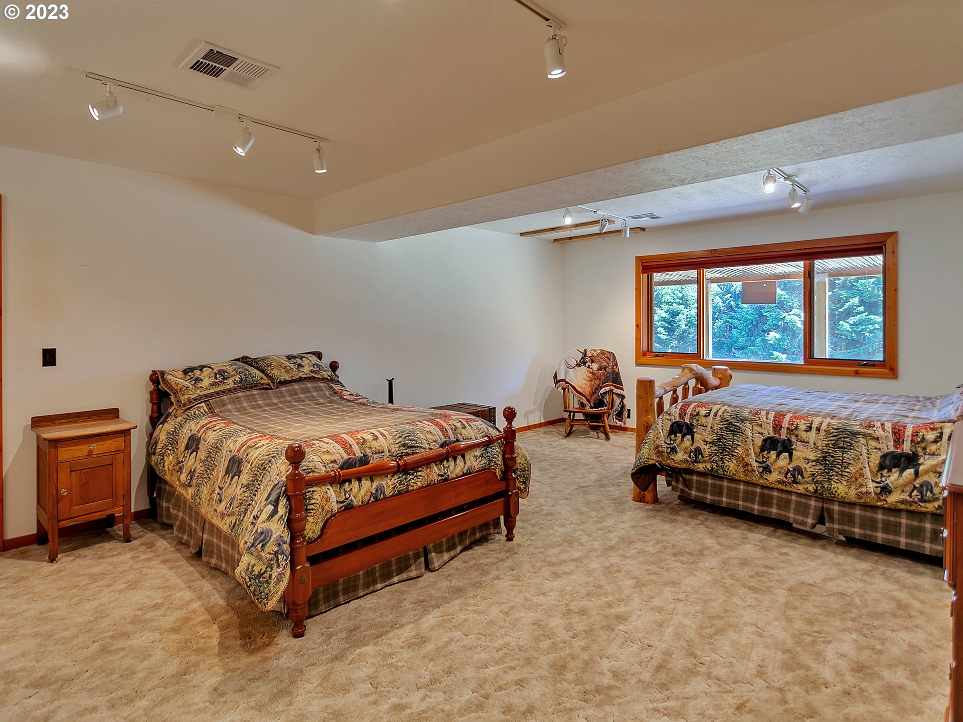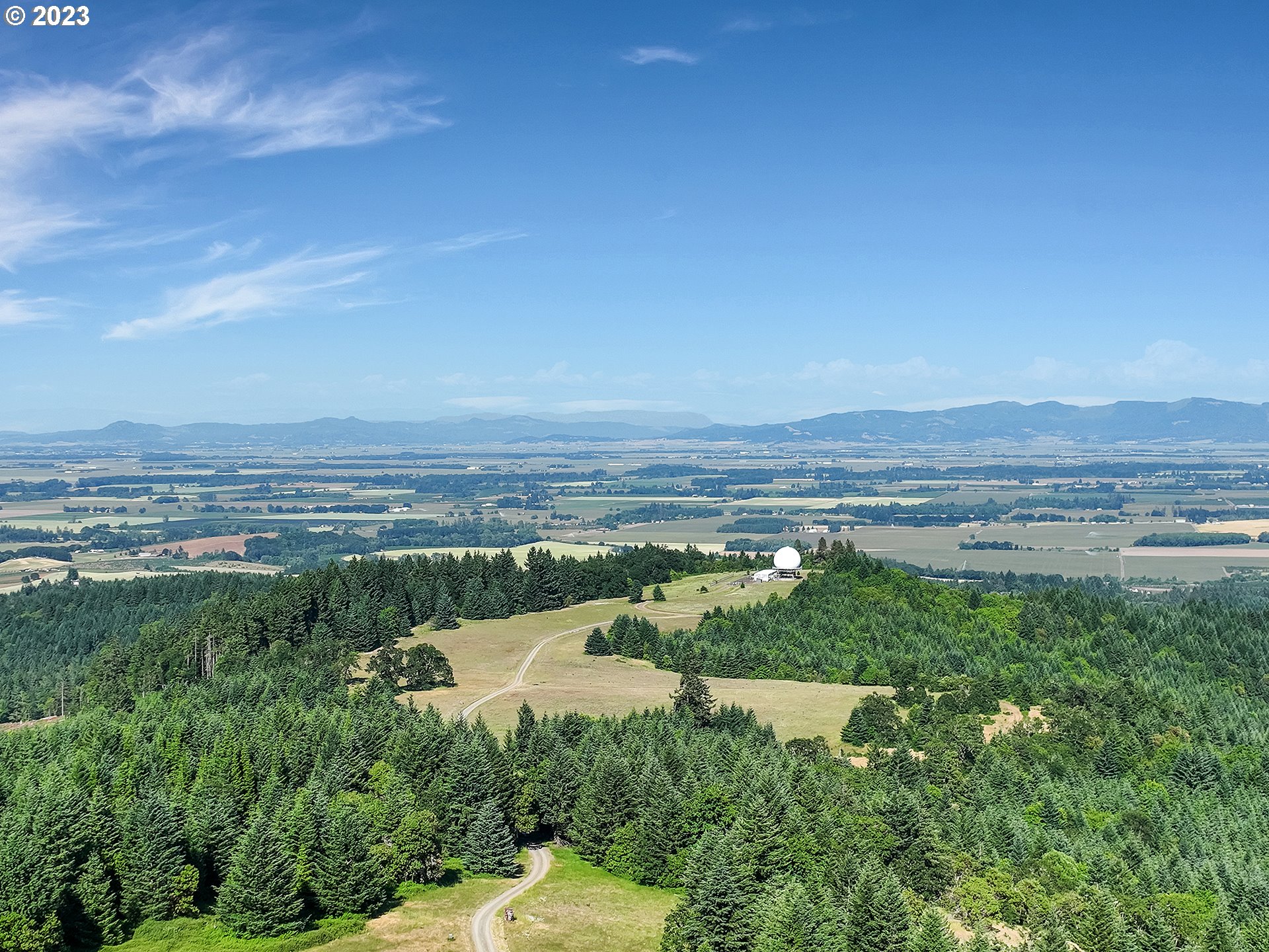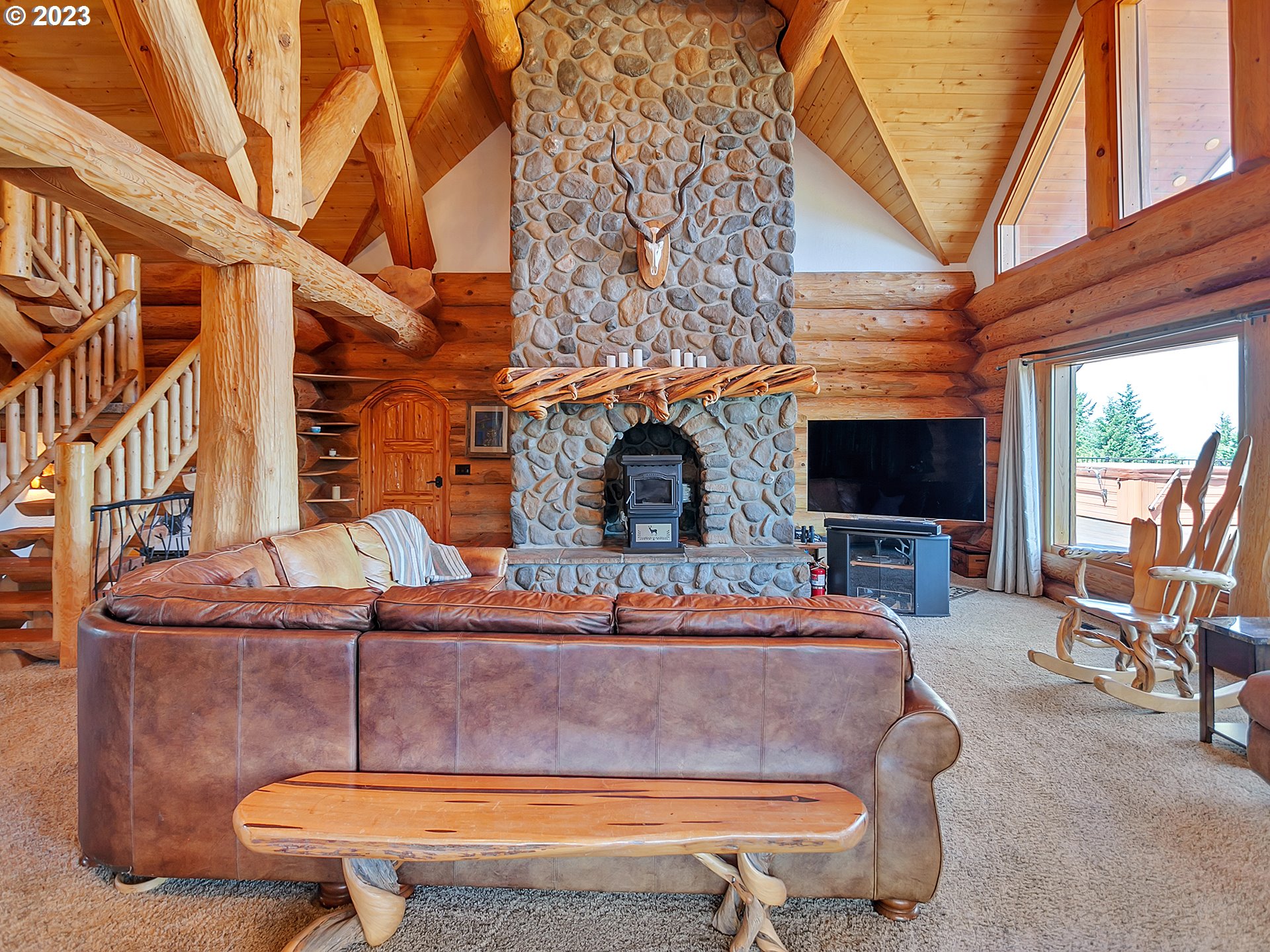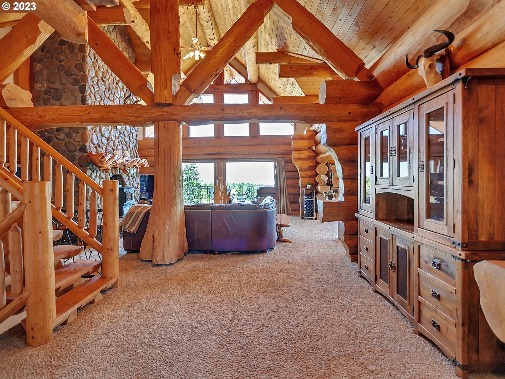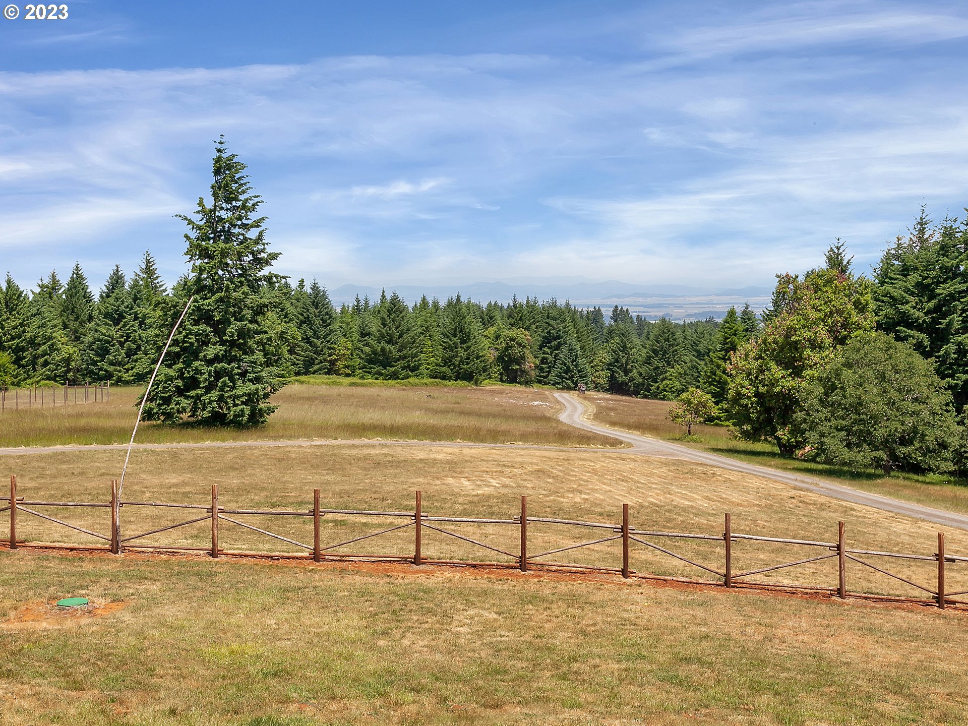 Experience breathtaking, panoramic views from this secluded custom Pioneer Log Home, gracefully perched above the Willamette Valley. Encompassing over 122 acres of rolling pasture and mature forest, this remarkable estate offers a rare blend of privacy, natural beauty, and tranquility—yet remains conveniently located just 21 miles from Eugene Airport and downtown Corvallis. Designed to embrace its stunning surroundings, the home features an expansive 2,400 sq. ft. wraparound deck—perfect for entertaining, relaxing in the hot tub, or simply taking in the sweeping valley vistas and abundant wildlife. Inside, the main level showcases a luxurious primary suite with soaring vaulted ceilings, a spacious walk-in closet, and a spa-inspired ensuite complete with an enclosed steam shower and jacuzzi tub. The thoughtfully designed layout also includes a full guest bathroom, walk-in pantry, dedicated office space, inviting dining area, and a well-appointed kitchen ideal for both everyday living and hosting. The lower level offers two generously sized bedrooms, a full bathroom, a comfortable additional living area, and a second pantry with ample storage. Upstairs, a private bedroom with a half bath provides a versatile retreat—perfect for guests, a home office, or creative studio. The land itself is equally impressive, featuring a charming orchard, yurt garden, and two separate parcels: a 42-acre homesite and an adjacent 80-acre tract. Both parcels offer marketable timber, with the larger tract also home to a pristine artisan spring.This one-of-a-kind estate seamlessly combines exceptional craftsmanship, stunning natural surroundings, and peaceful seclusion—an extraordinary opportunity that must be experienced in person to be fully appreciated.