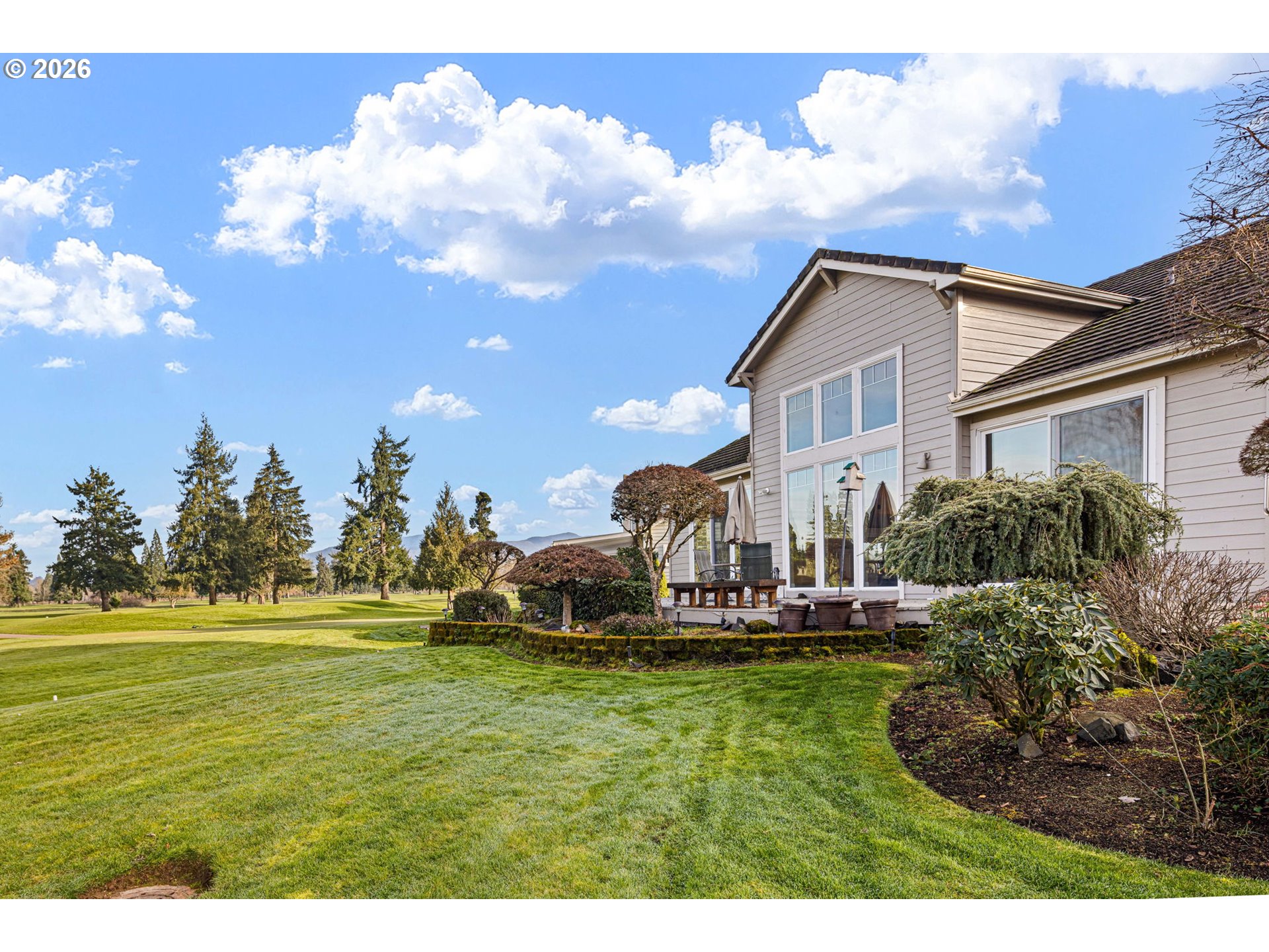 (503) 893-8874This must-see one-level home is ideally situated on the 9th fairway of a Emerald Valley golf course, offering stunning pond and fountain views. Features include a large deck with hot tub, hardwood floors throughout, a gourmet kitchen with Wolf stove, and a luxurious steam shower. 2 Car garage, and bonus office space! Floor to ceiling windows make this home light and bright!