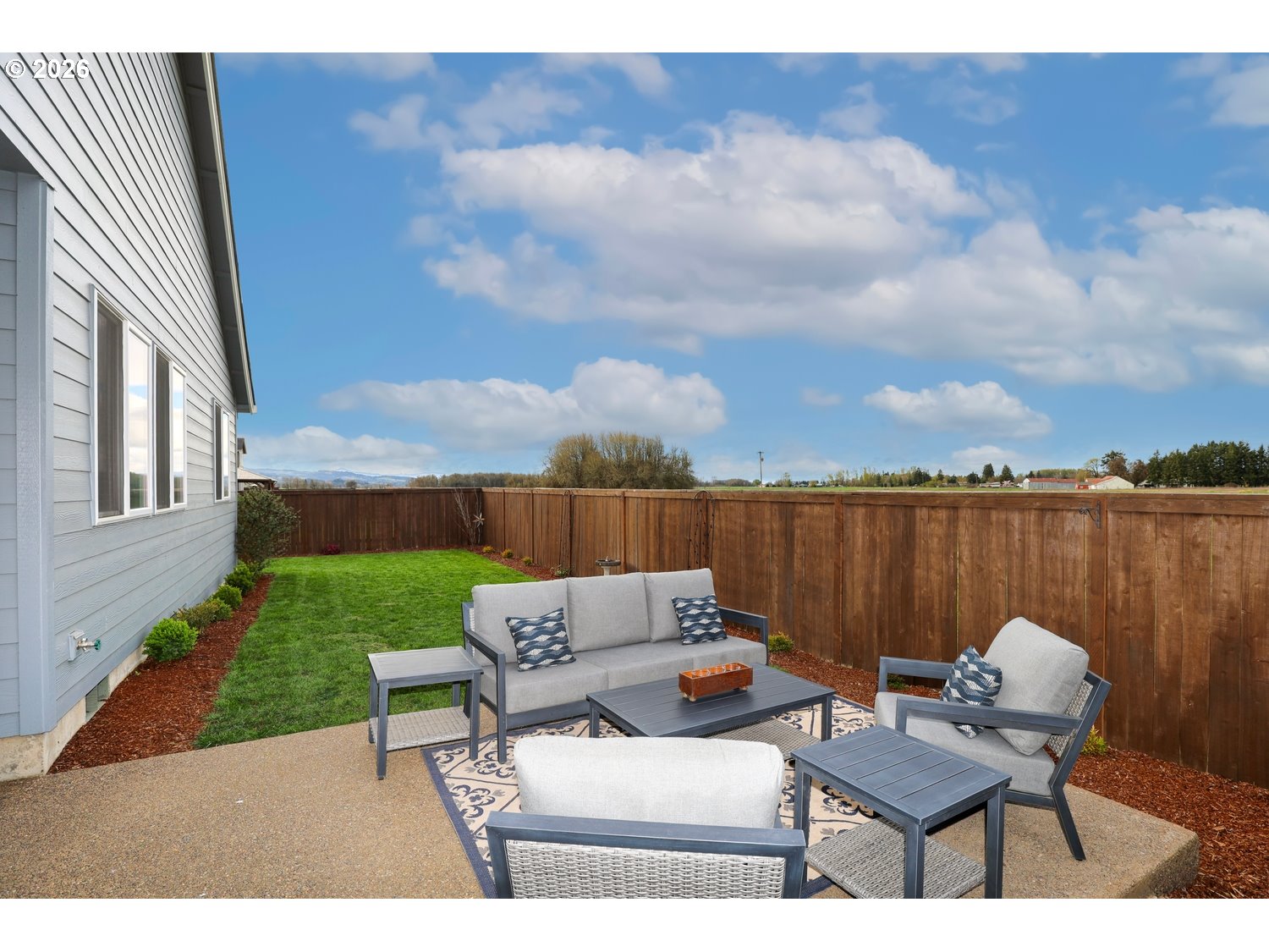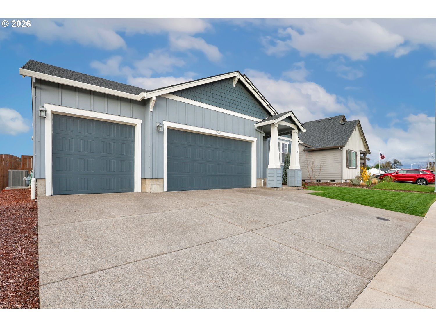 (503) 893-8874Welcome to The Reserve in Junction City. This spectacular 4 bedroom home was the Lennar model home in 2022! Featuring sought -after 3 car garage and premium location that backs to greenspace. Wonderful one-level floor plan with separation of bedrooms. Boasting many upgraded features from custom lighting, ship lap, wainscoting, and tile accent walls to an extraordinary spacious kitchen perfect for entertaining with its massive island bar. Granite counters, custom tile backsplash, stainless steel Frigidaire Gallery appliances, huge double door pantry. Luxury Vinyl plank flooring throughout and carpeting in bedrooms. Gas fireplace in Living Room. Laundry room includes Frigidaire washer & dryer set. Energy efficient with forced air gas furnace and heat pump for air conditioning. This is a smart home with fiber optics and features that can be controlled via apps. Extra large back patio. Fenced yard with no neighbors behind! Community park and playground 1 block away. This beauty is turn-key ready to move right in to!