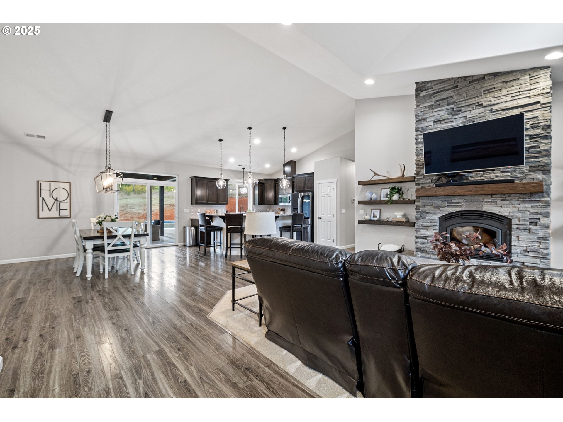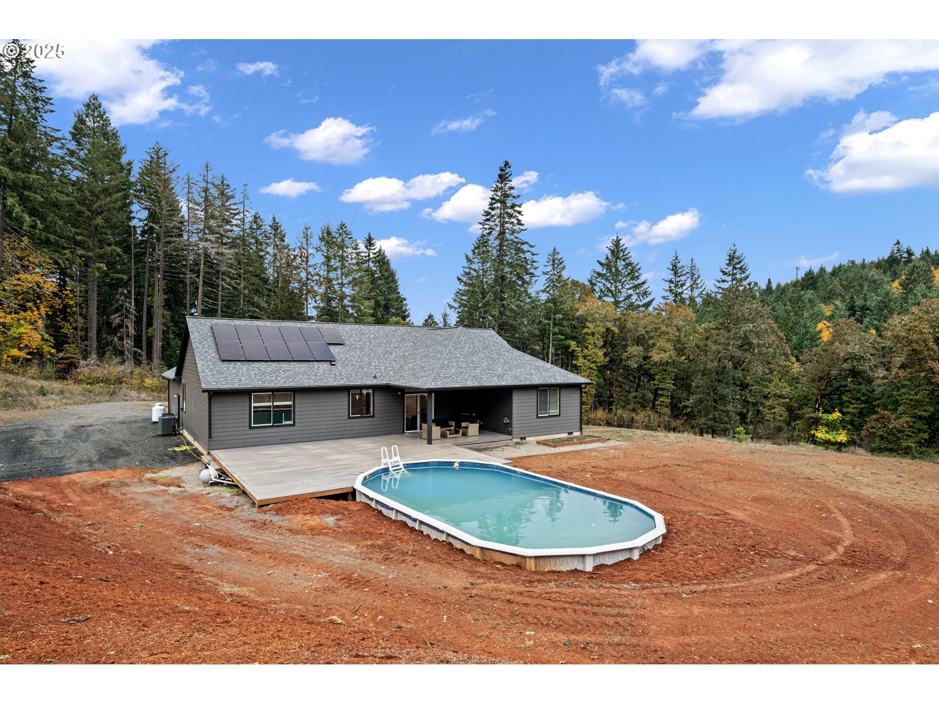 Modern Farmhouse on 2.7 Acres with Pool & Solar Power. Experience refined country living in this 2019 custom-built single-level home. Blending modern design with farmhouse charm, this home welcomes you with expansive windows, a floor-to-ceiling stacked stone wood-burning fireplace, and open-concept living spaces filled with natural light. The gourmet kitchen is a chef’s dream, featuring a massive island, slab granite countertops, gas range with convection oven, stainless steel appliances, and a spacious butler’s pantry for additional prep and storage space. The primary suite offers comfort and sophistication with luxury vinyl plank flooring, granite-topped vanities, a generous walk-in closet and separate shower and bathtub. Three additional large bedrooms and a full bath provide space for family, guests, or a home office setup. Step outside to your private backyard retreat complete with a large trex deck, covered patio and swimming pool (38' x18') — perfect for relaxing or entertaining. This property features a 25 panel Enphase solar array, tankless water heater, RV hookups w/ electrcity, pump house and exceptionally low utility costs. This home combines luxury and efficiency in one exceptional package.