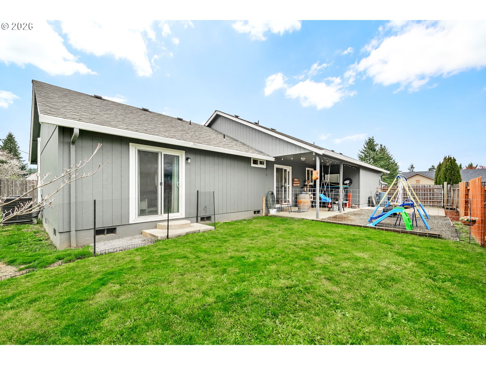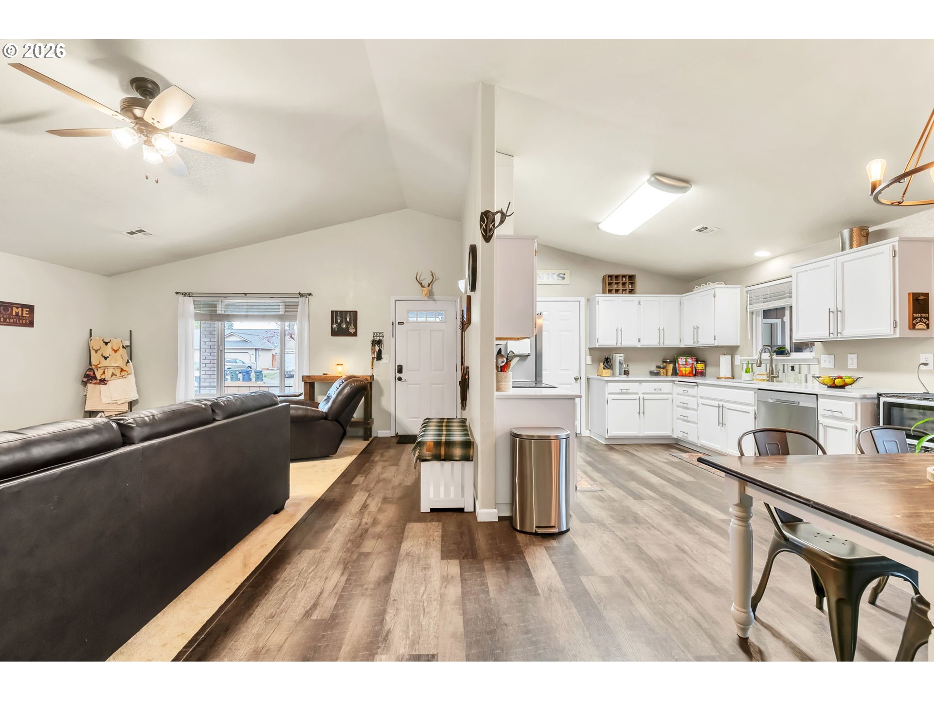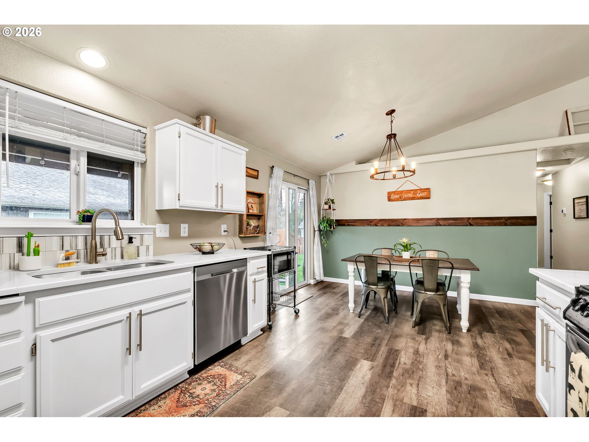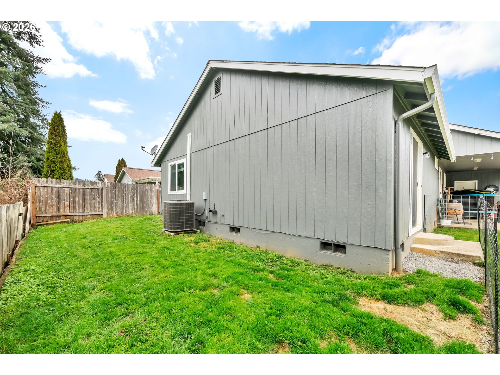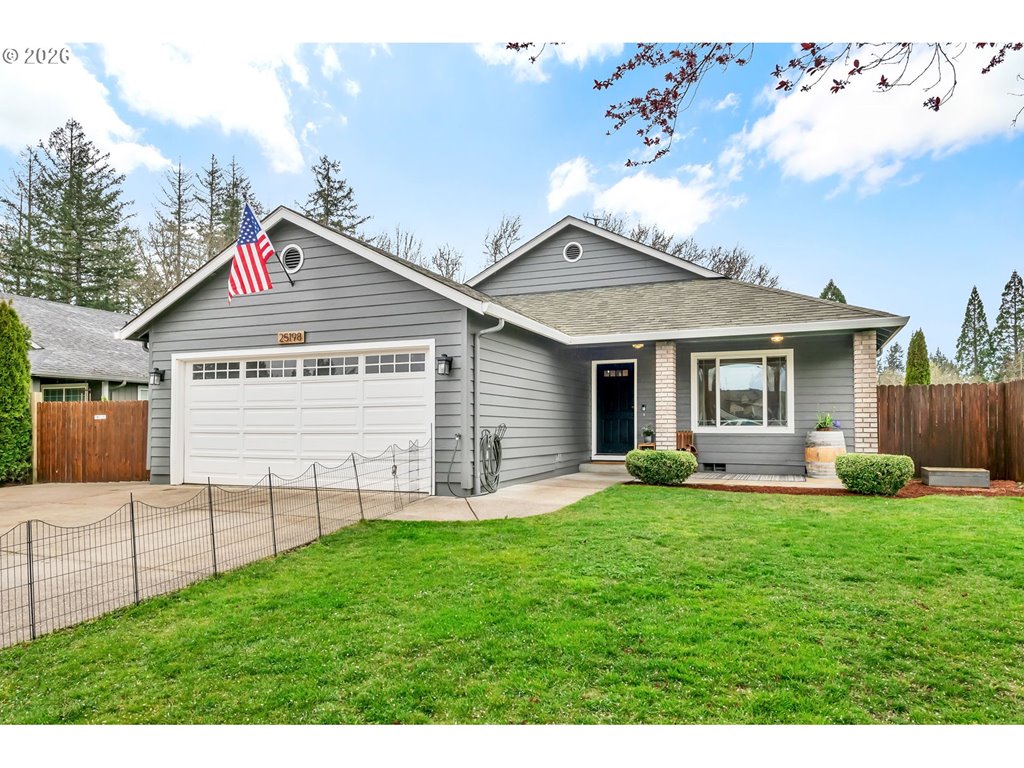 Welcome to this move in ready 3 bed, 2 bath home in a quiet Veneta neighborhood. Built in 2001, this 1285 sq ft home offers a functional open concept floorplan with vaulted ceilings and thoughtful updates throughout. Enjoy newer LifeProof waterproof rigid core vinyl plank flooring in the main living areas, plus updated carpet in the living room. The kitchen features quartz countertops installed in 2025 and comes fully equipped with appliances. Washer, dryer, TV and wall mount are also included. Major system updates bring peace of mind, including a new EnergyStar Bryant heat pump in 2025, HVAC duct cleaning and inspection in 2025, and a 50-gallon EnergyStar water heater installed in 2021. The exterior was freshly washed and repainted in 2024. Situated on a quiet dead end road, the property offers RV parking, a 50-amp 220V plug in the garage, and an exterior generator plug. The yard is designed for easy maintenance with in ground sprinklers in the front, plus covered front and back patios for year-round enjoyment. Mature landscaping includes a cherry plum blossom in the front yard and a magnolia tree in the backyard. A well maintained home with solid upgrades and a comfortable layout ready for its next owner. Seller is a licensed Oregon real estate agent and the listing agent for this property.
