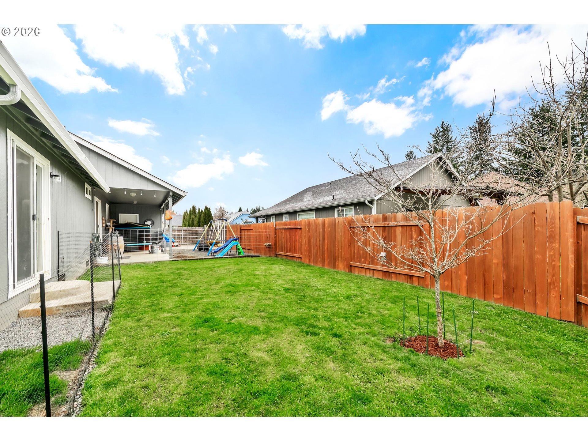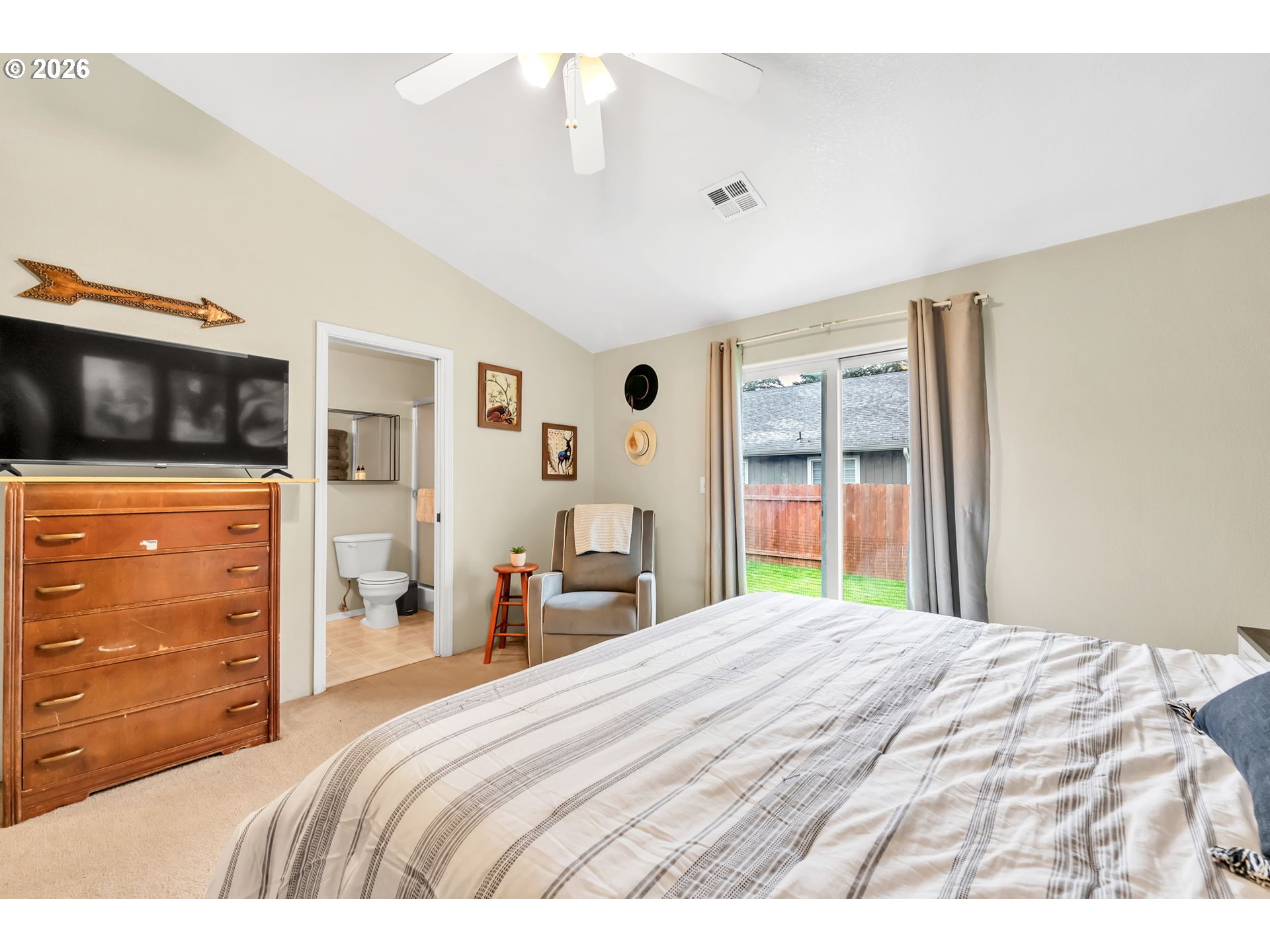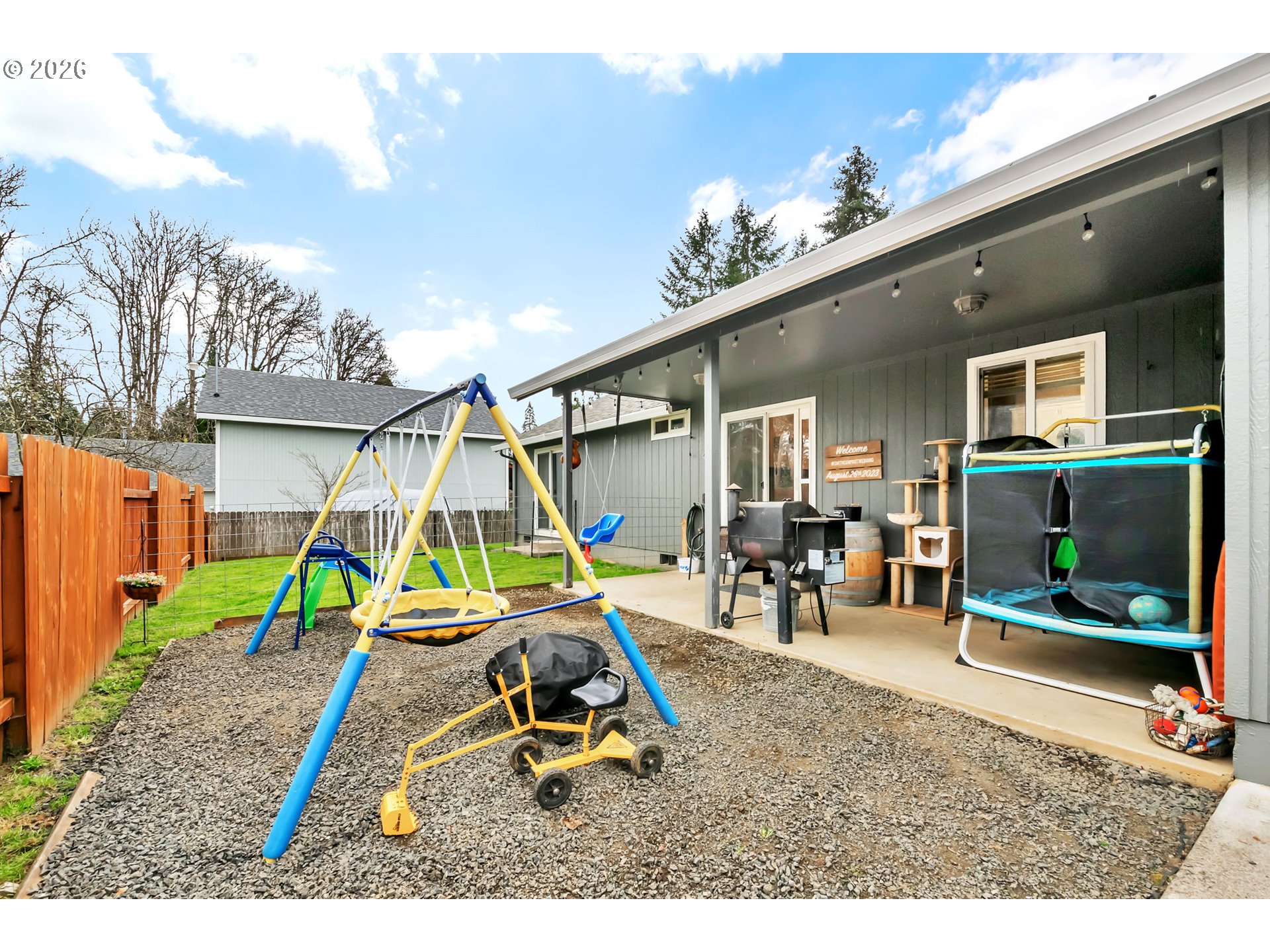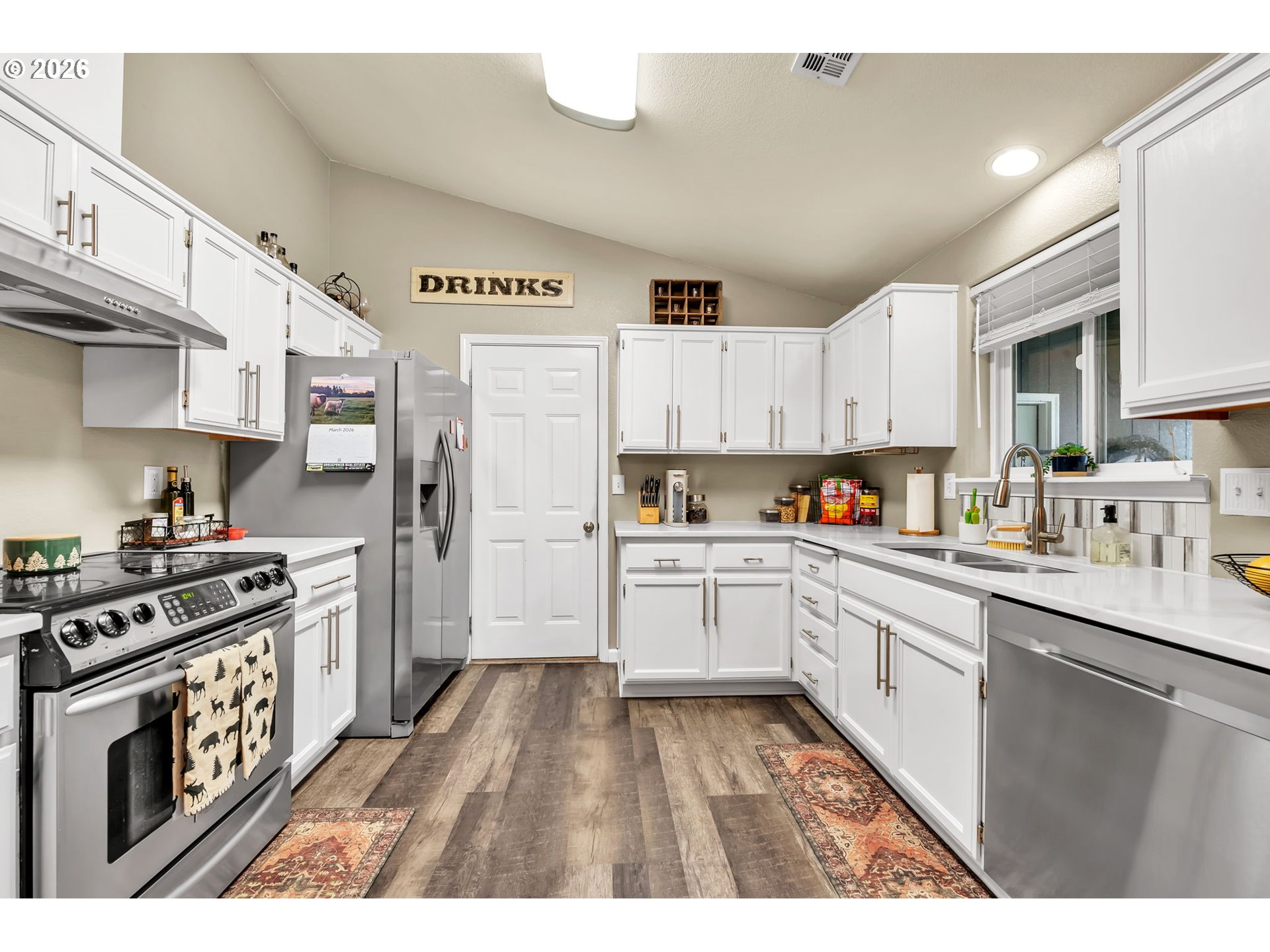 Welcome to this move in ready 3 bed, 2 bath home in a quiet Veneta neighborhood. Built in 2001, this 1285 sq ft home offers a functional open concept floorplan with vaulted ceilings and thoughtful updates throughout. Enjoy newer LifeProof waterproof rigid core vinyl plank flooring in the main living areas, plus updated carpet in the living room. The kitchen features quartz countertops installed in 2025 and comes fully equipped with appliances. Washer, dryer, TV and wall mount are also included. Major system updates bring peace of mind, including a new EnergyStar Bryant heat pump in 2025, HVAC duct cleaning and inspection in 2025, and a 50-gallon EnergyStar water heater installed in 2021. The exterior was freshly washed and repainted in 2024. Situated on a quiet dead end road, the property offers RV parking, a 50-amp 220V plug in the garage, and an exterior generator plug. The yard is designed for easy maintenance with in ground sprinklers in the front, plus covered front and back patios for year-round enjoyment. Mature landscaping includes a cherry plum blossom in the front yard and a magnolia tree in the backyard. A well maintained home with solid upgrades and a comfortable layout ready for its next owner. Seller is a licensed Oregon real estate agent and the listing agent for this property.