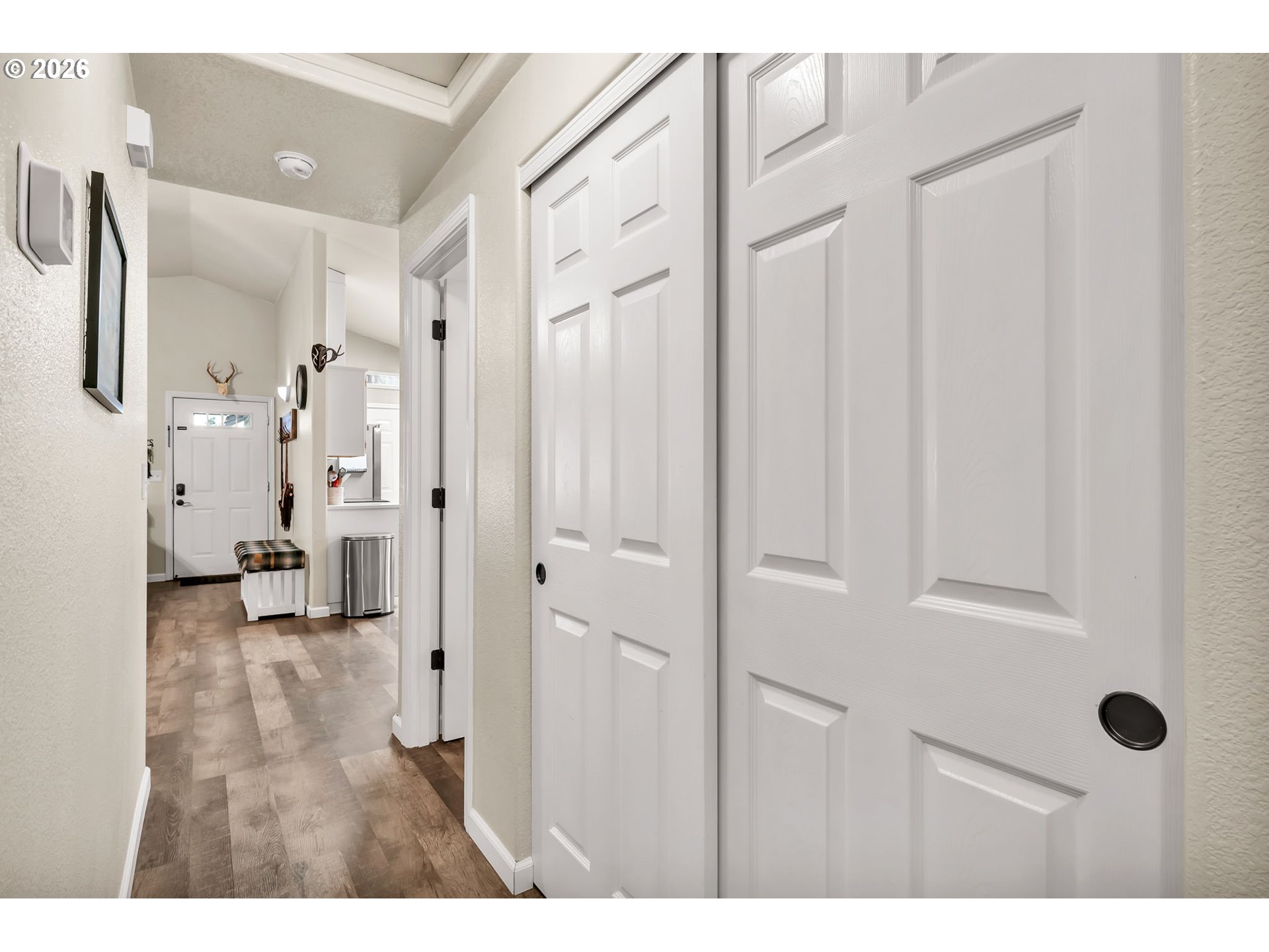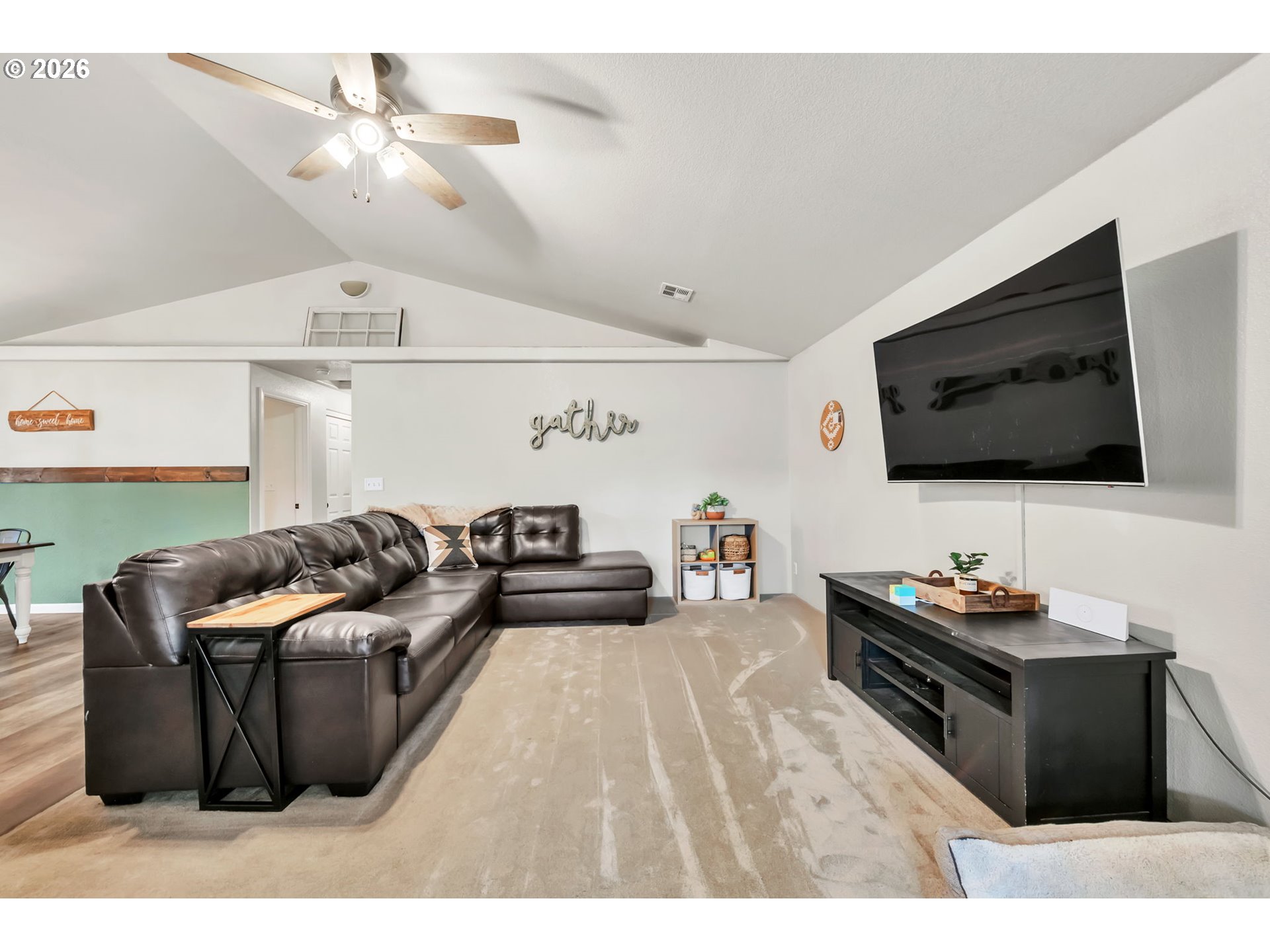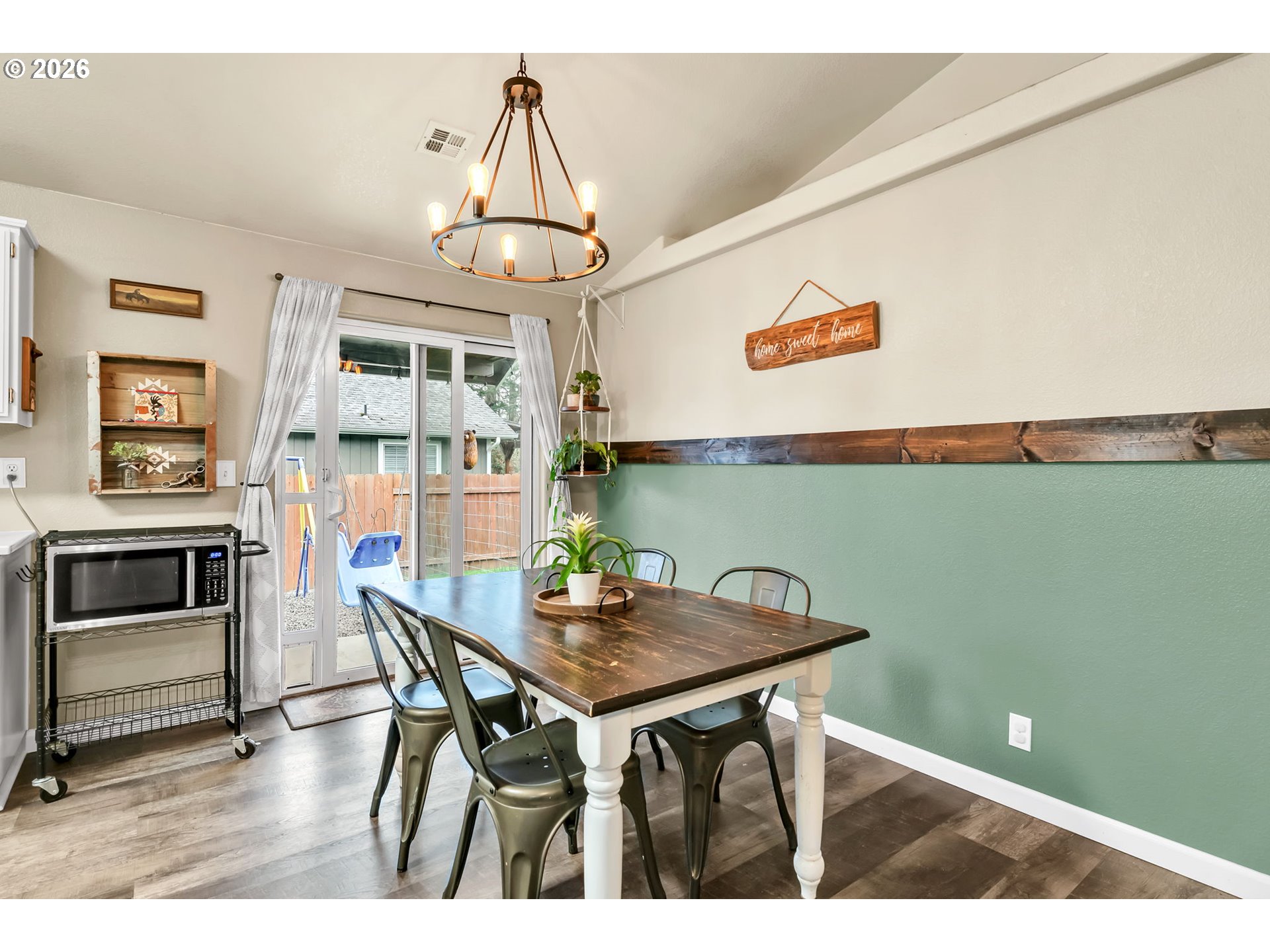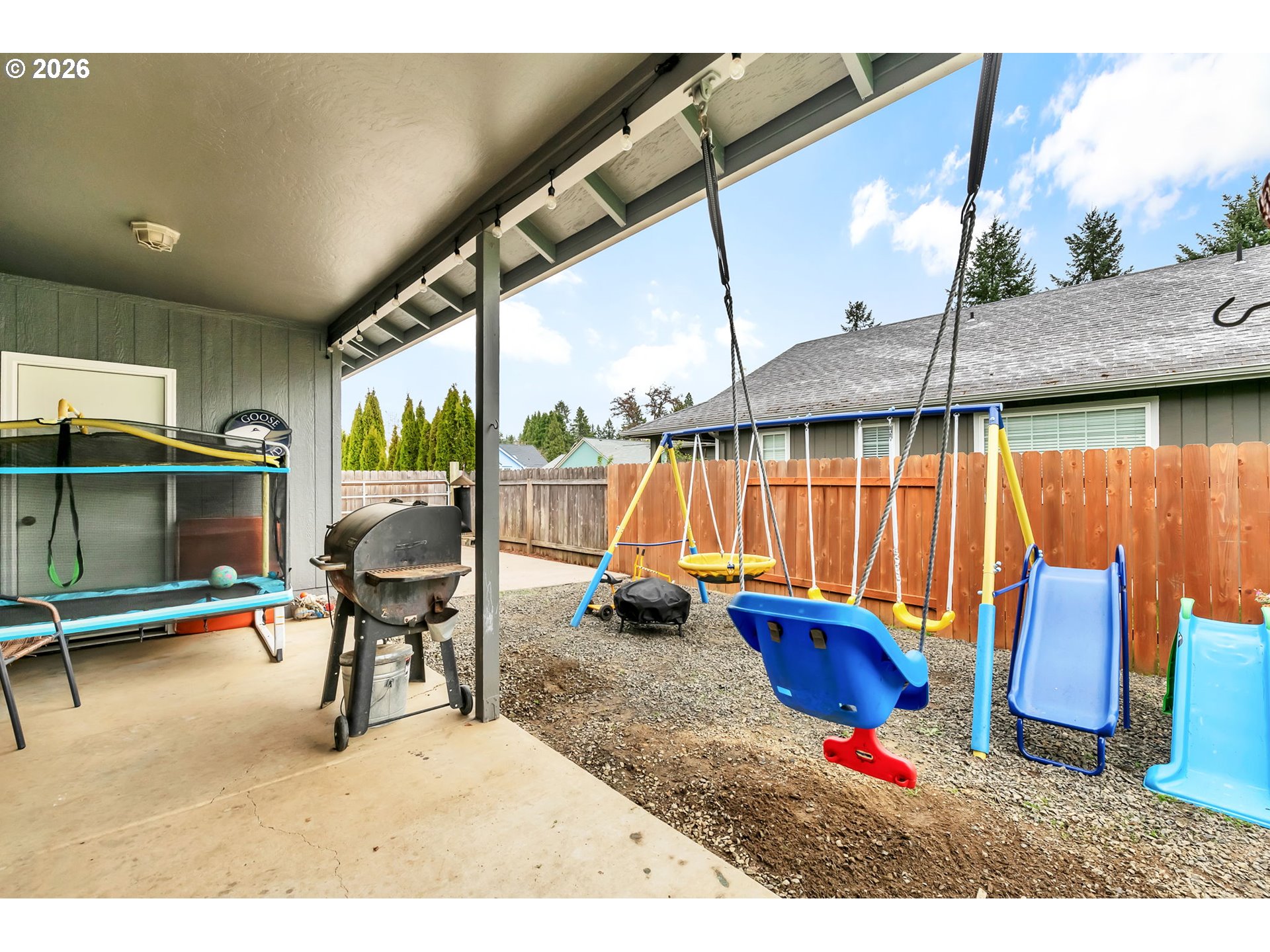 Welcome to this move in ready 3 bed, 2 bath home in a quiet Veneta neighborhood. Built in 2001, this 1285 sq ft home offers a functional open concept floorplan with vaulted ceilings and thoughtful updates throughout. Enjoy newer LifeProof waterproof rigid core vinyl plank flooring in the main living areas, plus updated carpet in the living room. The kitchen features quartz countertops installed in 2025 and comes fully equipped with appliances. Washer, dryer, TV and wall mount are also included. Major system updates bring peace of mind, including a new EnergyStar Bryant heat pump in 2025, HVAC duct cleaning and inspection in 2025, and a 50-gallon EnergyStar water heater installed in 2021. The exterior was freshly washed and repainted in 2024. Situated on a quiet dead end road, the property offers RV parking, a 50-amp 220V plug in the garage, and an exterior generator plug. The yard is designed for easy maintenance with in ground sprinklers in the front, plus covered front and back patios for year-round enjoyment. Mature landscaping includes a cherry plum blossom in the front yard and a magnolia tree in the backyard. A well maintained home with solid upgrades and a comfortable layout ready for its next owner. Seller is a licensed Oregon real estate agent and the listing agent for this property.