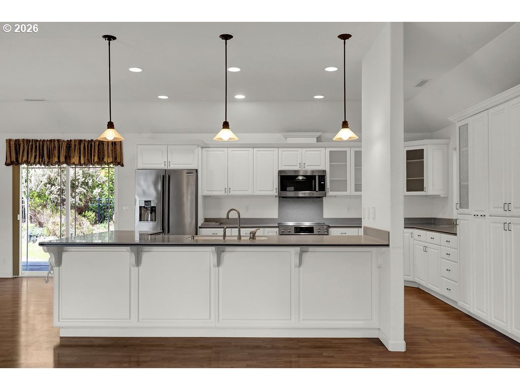Tucked into a peaceful cul-de-sac in Willow Dunes, this 2,932 sq. ft. home on .32 acre sits in one of Florence’s most convenient in-town locations. You’re close to everything you need, but once you’re home, you are in your own private oasis. The setting is hard to beat. Out back, you’ve got 80 acres of city-owned forested land giving you a quiet backdrop and a level of privacy that’s rare in town. To the side is Ocean Dunes Golf Links, where Hole 14 keeps things interesting but never intrusive. Inside, the layout is open, comfortable, and built for real life. The great room is the natural gathering spot, anchored by a propane fireplace that makes Oregon evenings feel just a little cozier. The kitchen has been updated with stainless steel appliances—simple, clean, and ready to go to work. There are 4 bedrooms and 3 full bathrooms, including a junior suite that gives you flexibility for guests, extended family, or a little separation when you need it. The primary bathroom adds an extra touch of comfort with heated floors and a large soaking tub. What really sets this place apart is the extras it has to offer: A large RV barn, 3-car garage with storage to spare, a dedicated workshop, and a heated greenhouse mean hobbies, toys, and projects all have a place to land instead of taking over the house. The yard is fully fenced and thoughtfully landscaped with mature plants—and kept looking its best with a 9-station irrigation system. A koi pond with established fish adds a calm, almost tucked-away feel to the space. The covered patio ties it all together—morning coffee, evening wind-downs, or just sitting still for a minute. Additional practical touches include an oversized laundry room, whole-home vacuum system and a central heating. Seller is installing a new roof in early spring.