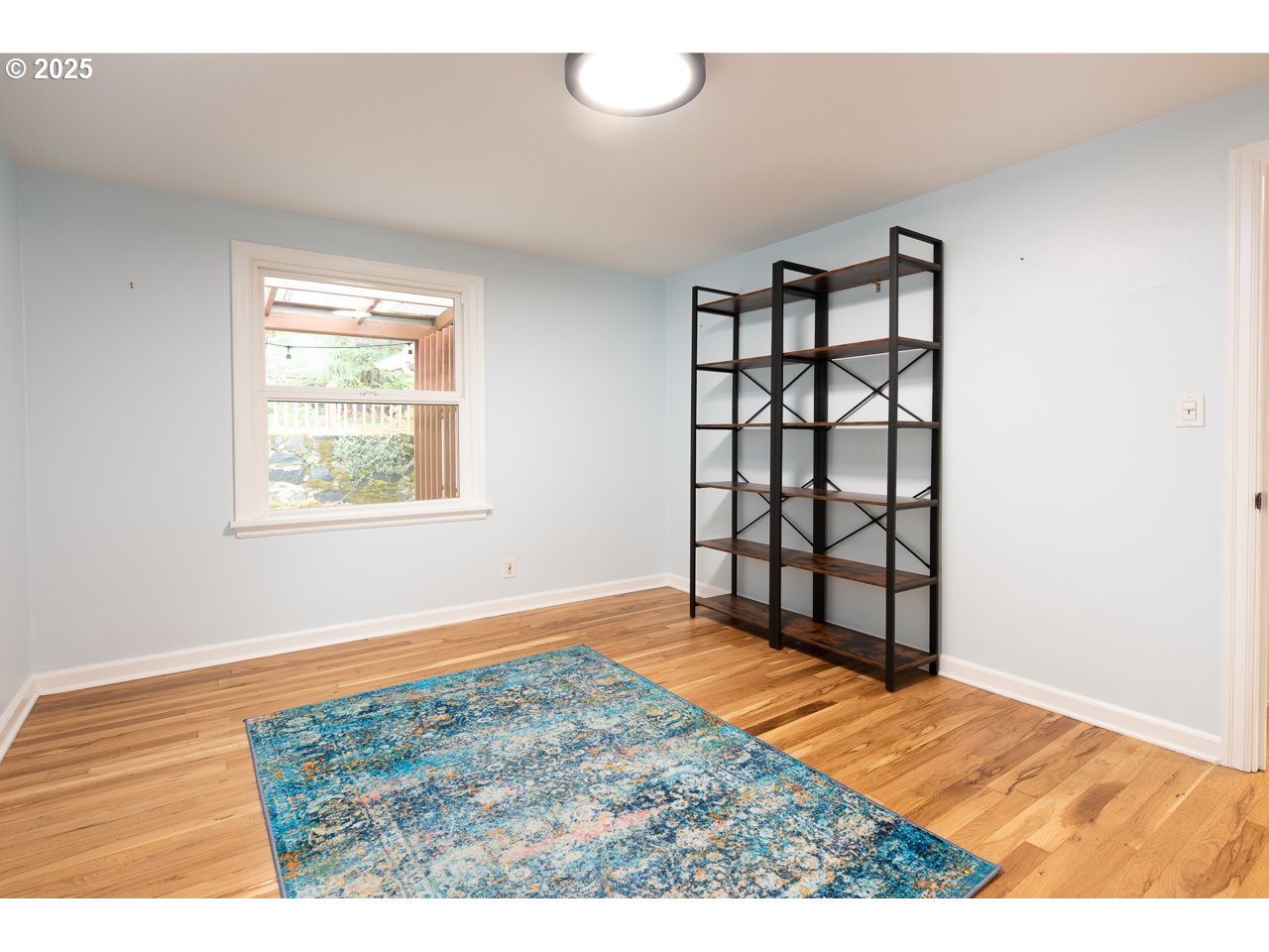 Charming 1940's bungalow in a prime location-just a short walk to the University of Oregon! This rare find blends vintage character with modern comfort, featuring 2 bedrooms and 2 baths. The spacious primary suite includes a large full bath, double closets and French doors that open to the peaceful backyard. Beautifully refinished wood floors flow throughout the sunny rooms, and the inviting living room showcases classic built-ins that highlight the home's 1940s charm. The generous laundry room offers excellent storage and workspace, adding to the home's functionality. Thoughtful updates and a newer roof provide peace of mind. Enjoy hillside views from the terraced, private backyard surrounded by natural and enhanced landscaping, along with a fenced front yard for added appeal.