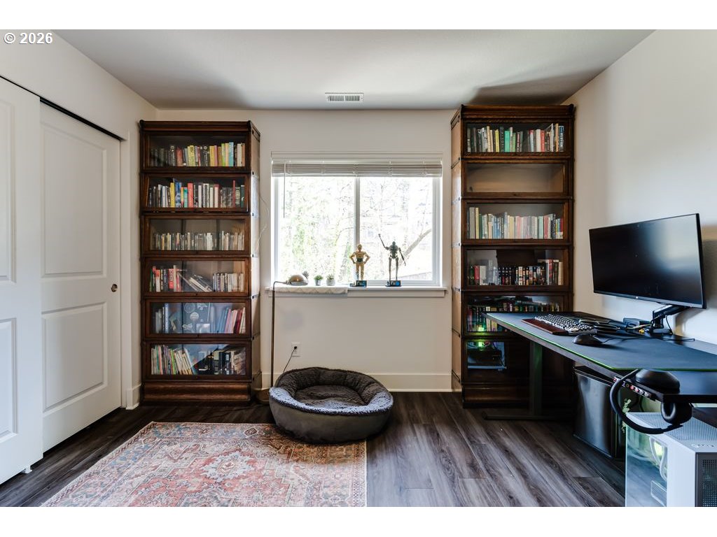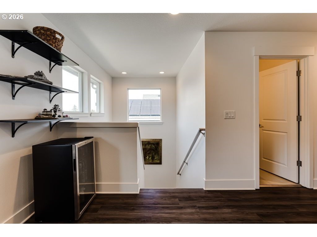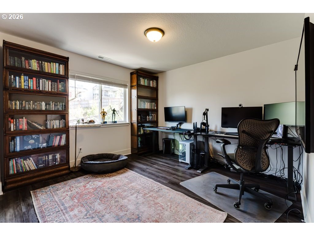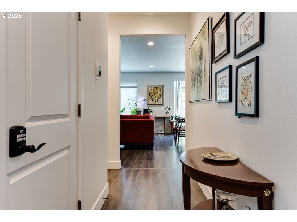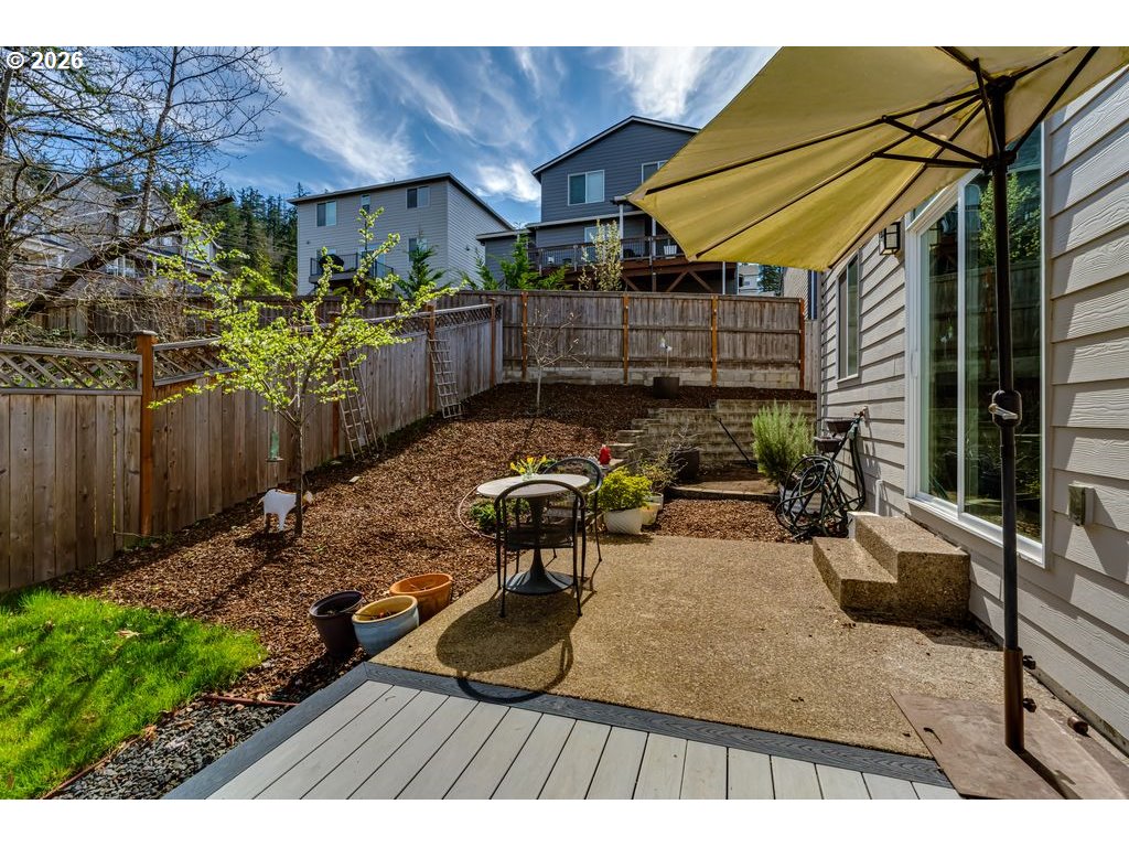 Like-new and beautifully maintained, this 5-year-old home offers modern comfort in a pride-of-ownership neighborhood. Bright and airy with high ceilings and abundant natural light, the open layout combines living spaces, flowing into a stylish kitchen with quartz countertops, gas range, Samsung stainless steel refrigerator, generous pantry, and island with built-in outlets. Sliding glass doors lead to a composite deck—perfect for easy indoor-outdoor entertaining. A protected natural area runs along the backyard, creating a peaceful, private setting and serving as the direct view from the primary suite, complete with walk-in closet and en suite bath with double sinks and quartz counters. Upstairs, a roomy loft adds flexible space for an office, den, or creative studio, plus well-sized bedrooms and a convenient laundry room with drying rack system (washer and dryer included). Thoughtful extras include a gas fireplace, surround sound, gas water heater, and recently serviced HVAC. Over $40K in upgrades: new vinyl flooring throughout, AC unit, Wyze security system, and extensive landscaping with fencing, drip irrigation, sprinklers, raised beds, drainage, pear and plum trees, lilacs, and strawberries. Prime location close to the University of Oregon, PeaceHealth, and downtown Eugene. Don't wait--schedule your private tour today! Open houses 3/21 and 3/22 noon-1:30 pm.