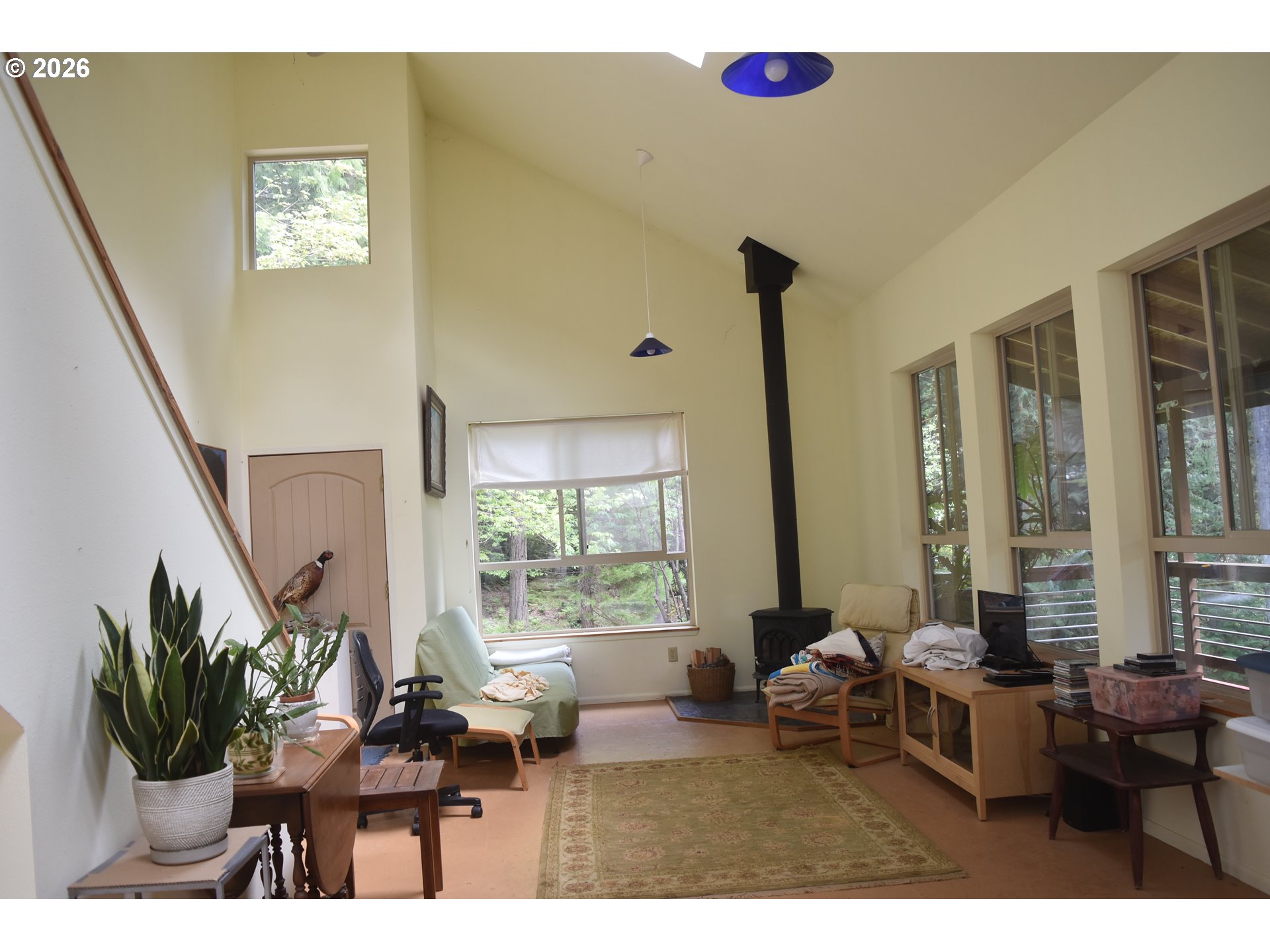 Quality and excellence abound in this custom home on 4.65 acres. Light filled and open. Brazilian tigerwood floors. Designed for a comfortable transition from indoors to the beautiful woodland surrounds. Set well off the road, when the driveway splits, the main house is to the right and the guest studio to the left. Each have cedar siding and spacious decks. The guest studio, 819 sq ft, isn't included in the total square feet. See 'additional structures' for details.