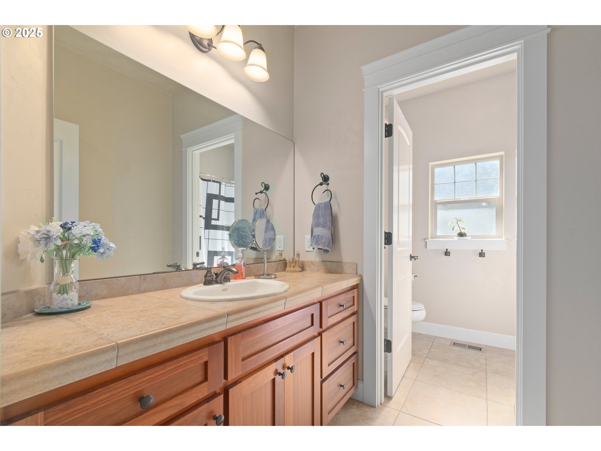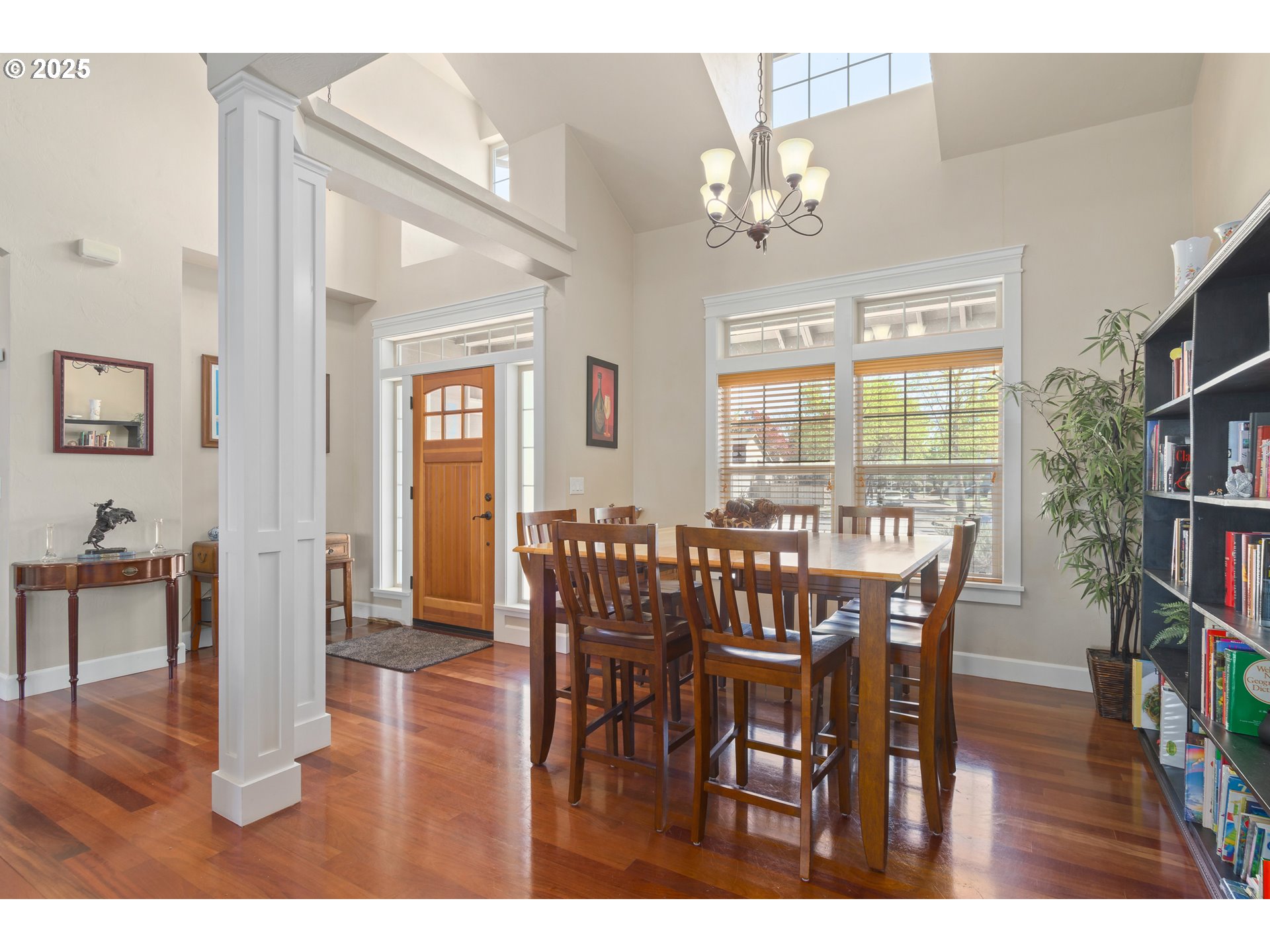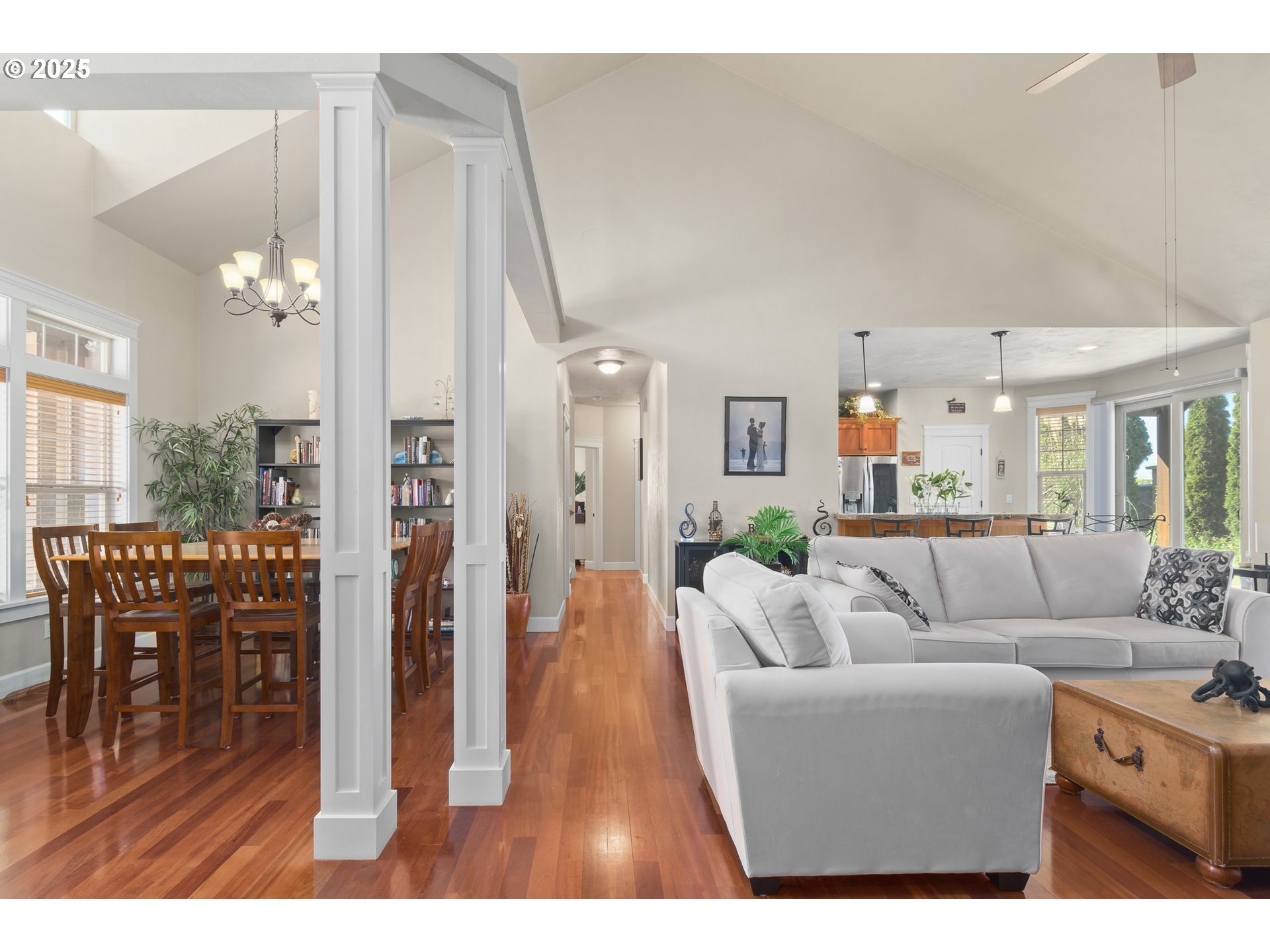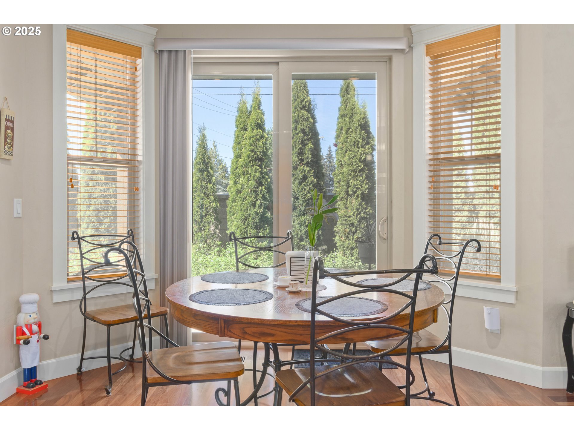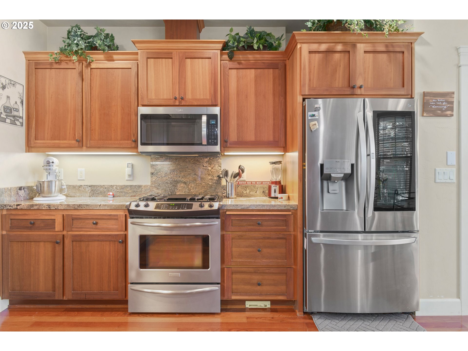 Located in the Glenn Haven neighborhood in Santa Clara, this quality-built newer home features a spacious and functional floor plan with thoughtful finishes throughout. The main living area offers rich hardwood floors and a vaulted great room anchored with a gas fireplace, creating a warm and inviting atmosphere. The oversized kitchen is designed for convenience, with ample counter space, cherry cabinetry, generous storage, and gas cooking. A dedicated dining room and separate eat-in area provide flexibility for both everyday living and larger gatherings. The primary suite is proportioned to feel substantial without excess featuring a well-appointed bathroom with double sinks, a jetted tub, and a spacious walk-in closet. Upstairs, a versatile bonus room provides added flexibility, perfect as a guest bedroom, home office, or hobby space, complete with its own half bathroom. The backyard is private and fully fenced, featuring a covered patio that offers a comfortable outdoor space for year round use. The front landscaping was recently redesigned for a clean, low maintenance presentation that enhances curb appeal without added upkeep. Perfectly located for an easy commute to downtown Eugene or wherever else you need to be, this home accentuates easy living.
