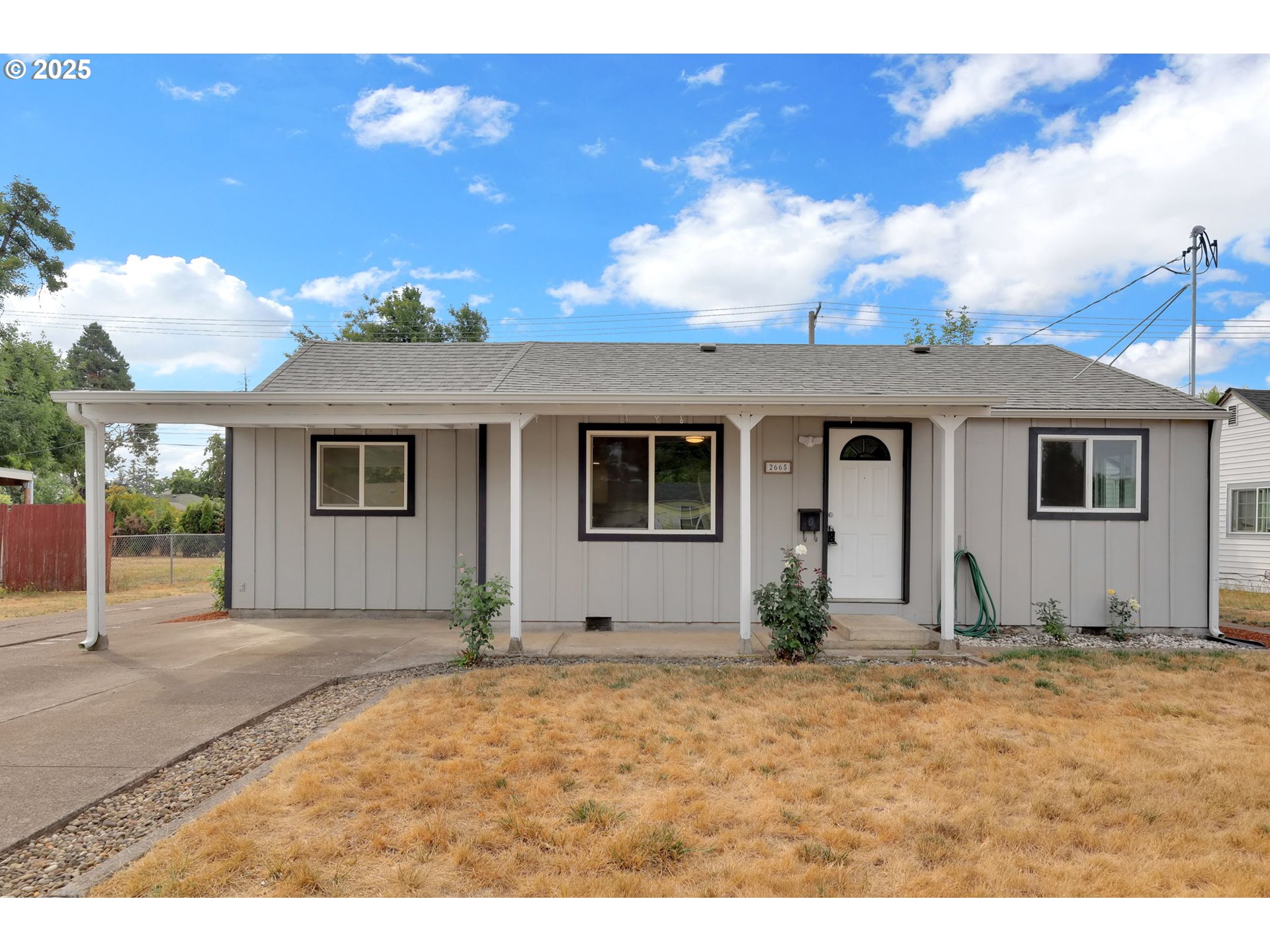 Welcome to 2665 E Street — a beautifully renovated 3 bedroom, 1 bathroom home with 800sqft SHOP that blends modern updates with timeless comfort! Thoughtfully remodeled from top to bottom, this home is truly move-in ready!Step inside to find all new luxury vinyl plank flooring, fresh interior paint, a brand-new 200-amp electrical panel, new plumbing, and a fully updated bathroom featuring a stylish new shower and vanity. The heart of the home is the gorgeous new kitchen, boasting trendy white cabinetry, pantry storage, granite countertops, and a full Whirlpool stainless steel appliance package including a French-door refrigerator with ice maker, built-in microwave, electric range, and dishwasher. The kitchen flows seamlessly into the dining room—perfect as is, or easily adaptable as a home office or flex space.An indoor laundry area with built-in shelving adds convenience, while the backyard features a covered patio that extends the living space for year-round entertaining. The fenced yard is flat, usable, and accented with mature landscaping. For those needing extra room, the impressive 20x40 SHOP offers concrete floors, electricity, and oversized doors—ideal for parking, storage, hobbies, or a workshop. The large paved driveway provides even more flexibility with ample space for RV, boat, or additional vehicle parking. There is also an additional shed for even more storage! Lovingly maintained and recently upgraded to today’s modern standards, this home offers both peace of mind and convenience. Located close to schools, parks, shopping, and bus lines, it’s the perfect Springfield location!