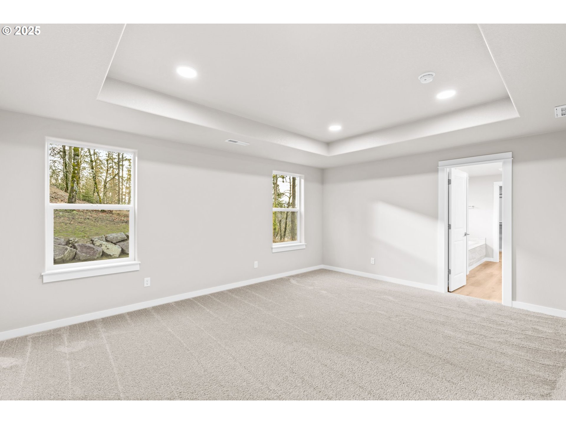 At 2,968 square feet, this beautifully designed new construction home offers generous living space, exceptional storage, and stunning views throughout. The main level welcomes you with an oversized garage and convenient mudroom entry, creating an ideal setup for an organized and functional lifestyle. The open-concept dining and kitchen area features a large pantry, expansive island, and abundant counter space—perfect for both entertaining and everyday living. The kitchen flows seamlessly into the light-filled great room, where large windows showcase the home’s scenic surroundings. A second bedroom suite on the main level adds flexibility and convenience for guests or multigenerational living.Upstairs, the home continues to impress with a versatile loft space, ideal for a media room, office, or additional living area. The expansive main suite is a true retreat, highlighted by a double-door entry and elegant coffered ceiling. The spa-inspired main bathroom includes a dual vanity, water closet, soaking tub, and an oversized walk-in closet. Two additional spacious bedrooms with ample closet space complete the upper level.Enjoy organized comfort, modern design, and beautiful views in this thoughtfully crafted new construction home—perfect for those seeking space, storage, and timeless style.