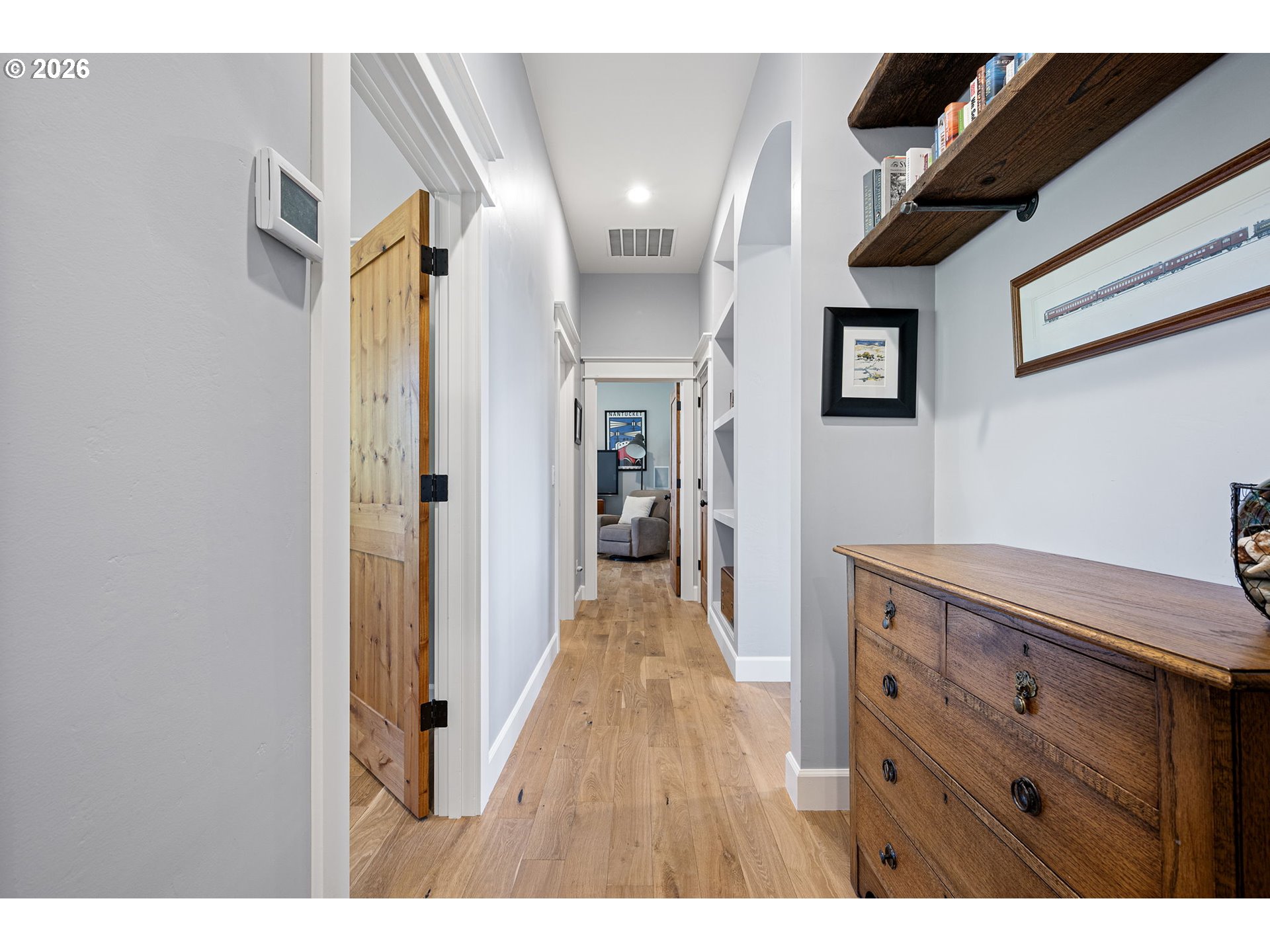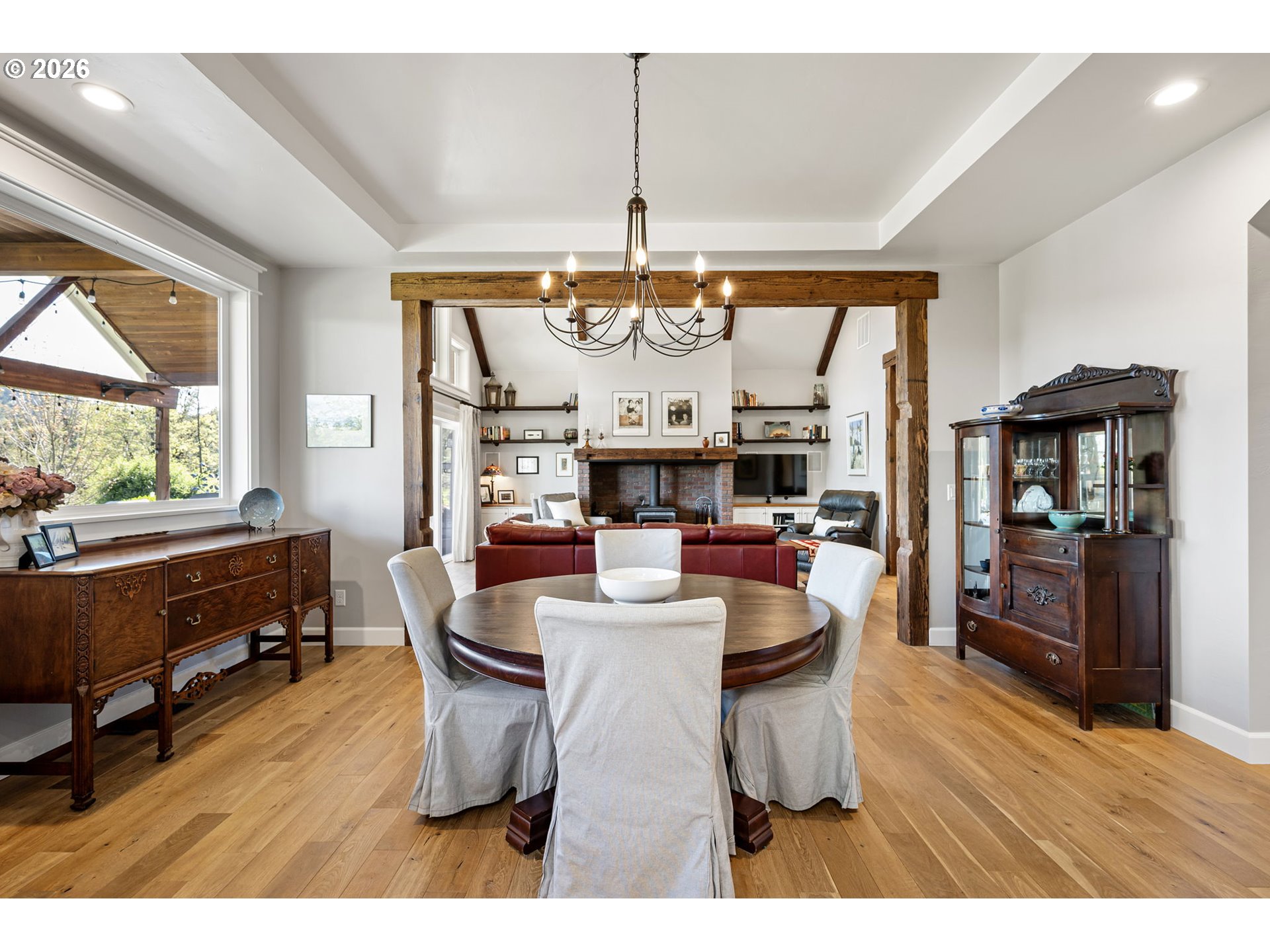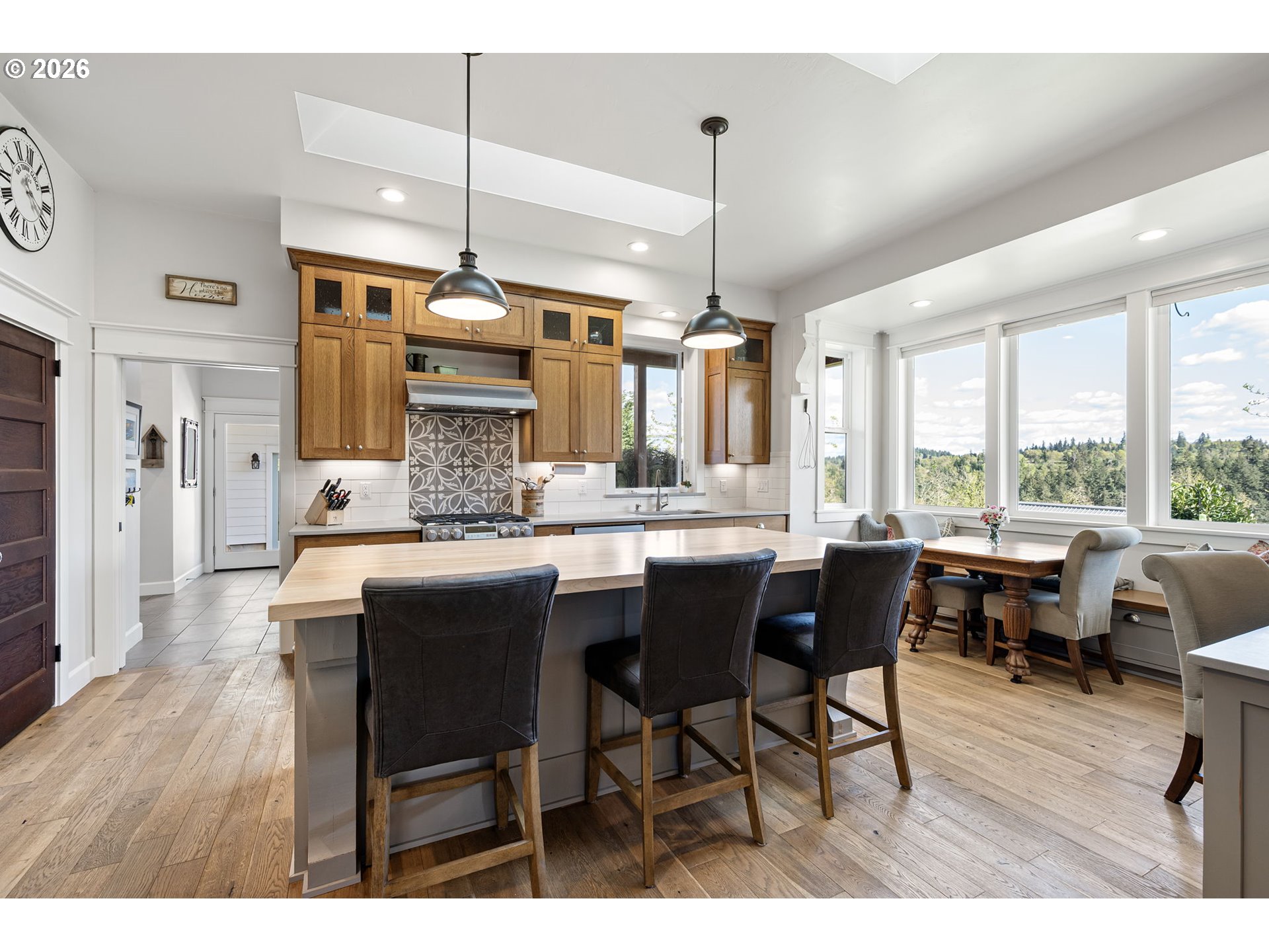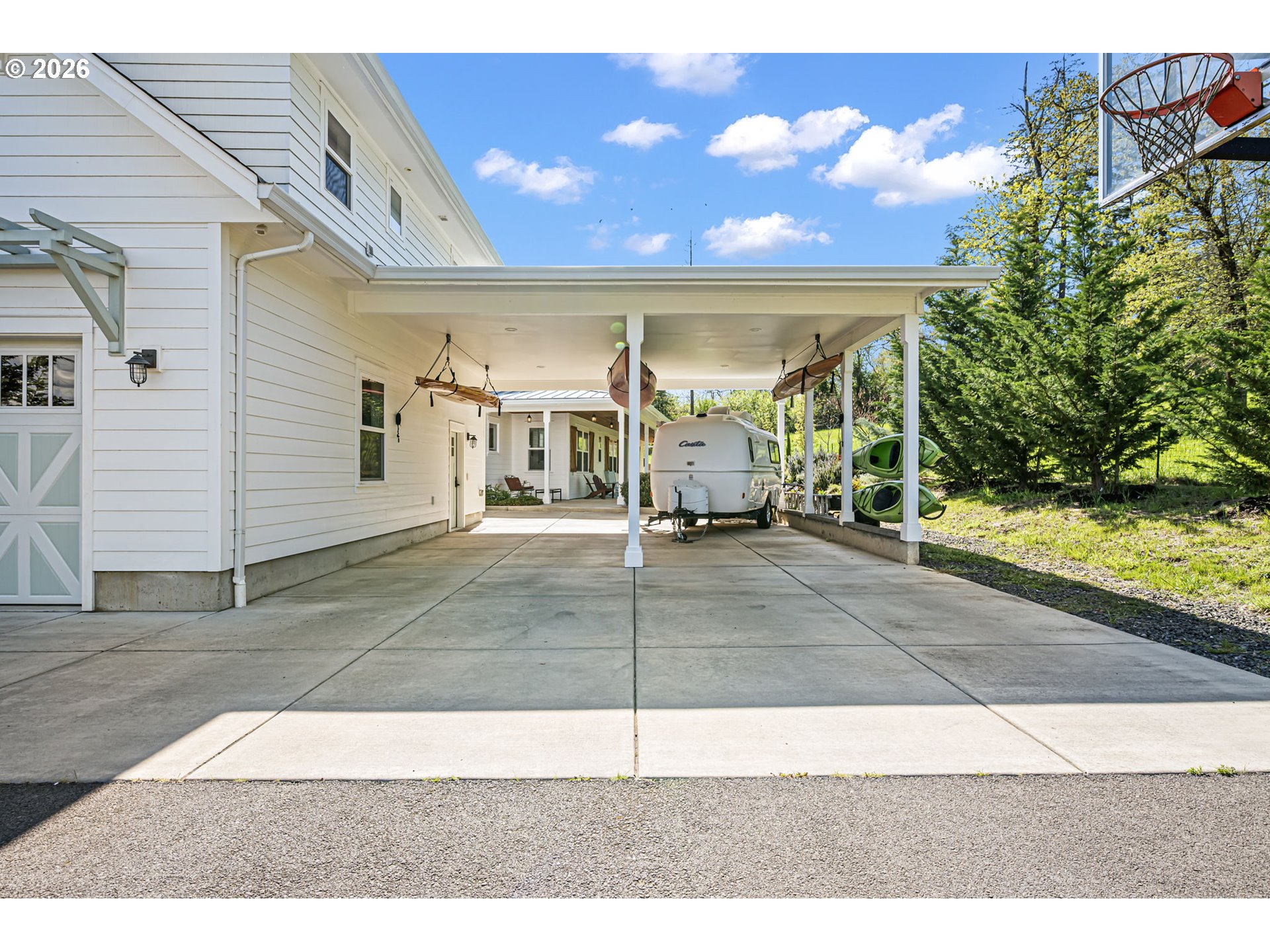 (503) 893-8874Contemporary one-level farmhouse set on over 6 acres. A welcoming wraparound covered patio and expansive redwood deck create over 1,500 sq ft of outdoor living space, perfect for relaxing or entertaining in every season. Thoughtfully designed by local designer Pat Greenwell, filled with natural light this home offers 10-foot ceilings, vaulted livingroom and abundant windows showcasing beautiful south-facing views from the kitchen, dining, livingroom and primary suite. Warm Italian solid oak-oil finished floors throughout, complimented by solid alder interior doors and stunning mahogany Dutch door that opens to the rear deck. The custom kitchen features rift oak cabinetry, quartz countertops, stainless steel appliances, gas range, built-in oven, and solid dovetail drawers. A blend of natural oak and tastefully distressed Elephant Grey cabinetry adds character and depth. Enjoy the convenience of on-demand hot water with a recirculating system throughout the home. The primary suite offers a spa-like bath with radiant heated floors, a flush-entry 5x5 tiled shower with rain head, and high-end finishes throughout. A covered breezeway connects the home to the insulated, finished two-car garage, shop, and additional flex space/guest suite. This versatile area also serves as a functional outdoor hub with space for firewood storage, shaded seating, and a hot/cold exterior wash station. The vaulted livingroom features a wood stove set in a brick surround, providing efficient, cozy warmth throughout the main living areas. Additional features include a backup electrical panel for essential circuits and a natural gas generator capable of extended operation while connected to gas meter. Outside, the property is equally impressive with a barn, fenced garden area, raised beds, and established plantings including grapes, marionberries, blueberries, raspberries, and flowers. A mature orchard of pears, cherries, plums & apples completes this peaceful and productive country setting.