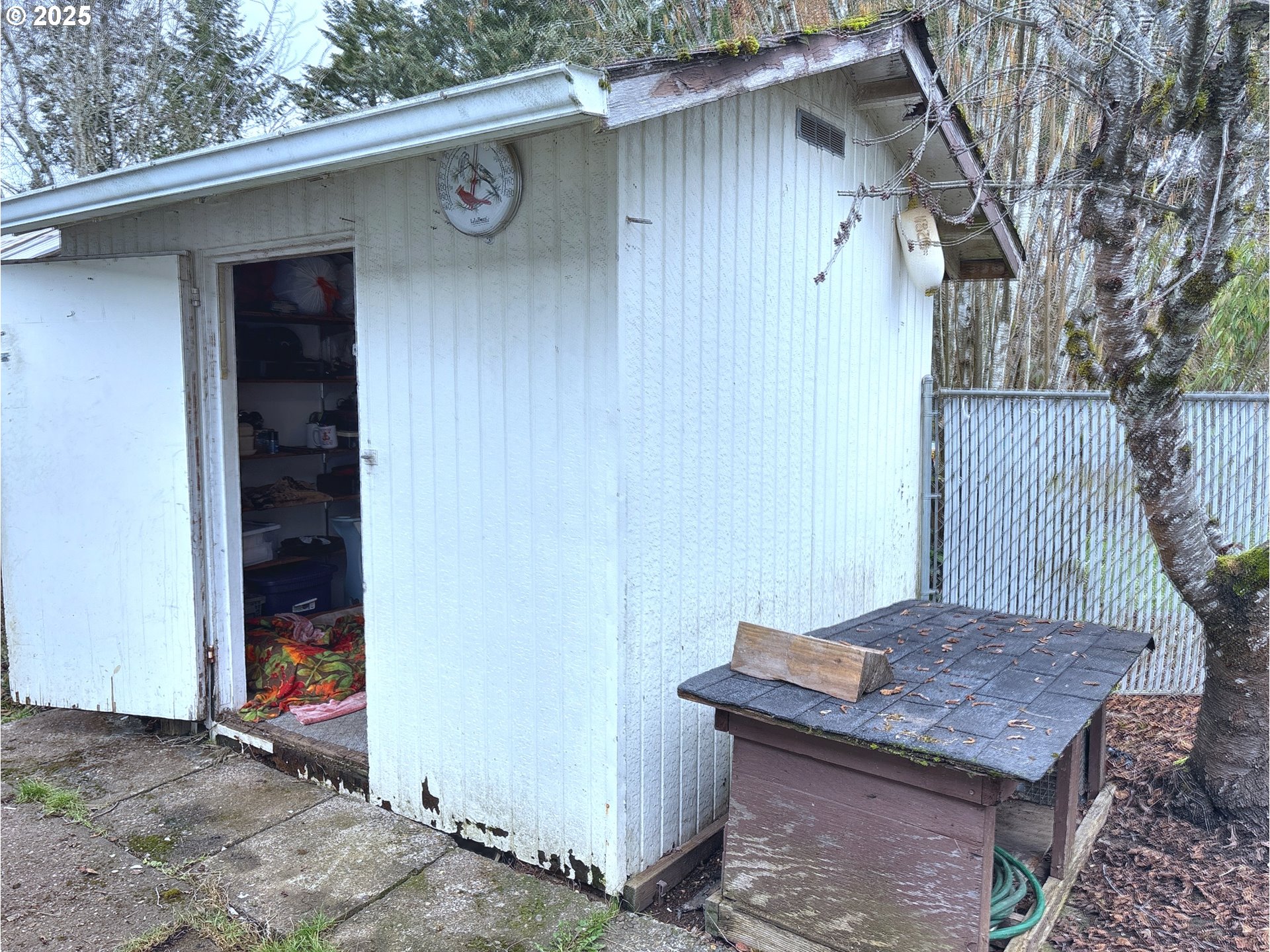 Welcome to this well-maintained 2-bedroom, 1-bath home in the community of Fern Ridge Estates. Offering 728 sq ft of comfortable living space, this home features a open layout. The kitchen is equipped with ample cabinetry and a freestanding refrigerator, while the spacious primary bedroom is complemented by a versatile second space ideal for guests or a home office. Recent upgrades include a new water heater for peace of mind. The efficient heat pump provides year-round comfort. Step outside to enjoy a fully fenced yard, a covered deck perfect for relaxing, and a detached shed with power and wood flooring for extra storage or workspace. Nestled in a quiet cul-de-sac, the home also offers a shared well and septic, with fiber internet available.