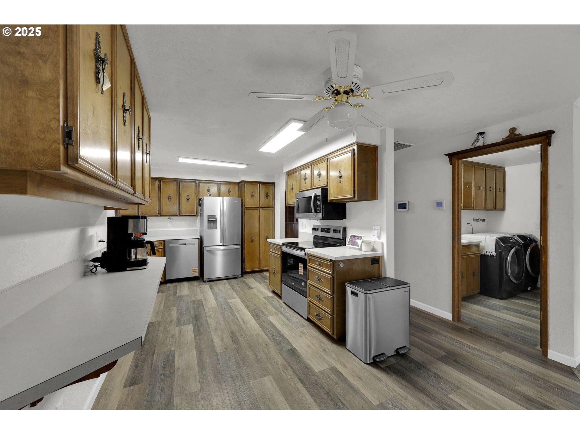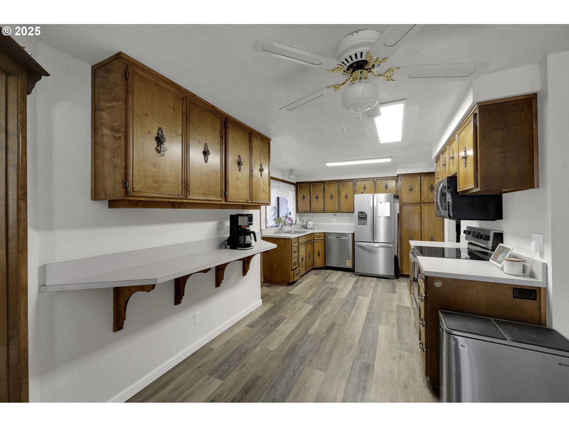 Spacious single-level Meltebeke-built home in the highly desirable Cal Young area of Eugene. A private front courtyard lined with mature foliage and a beautiful vine maple tree greets you with a sense of tranquility. Upon entry, you’ll find a smart floor plan with 3 bedrooms, excellent space separation, and two inviting living areas. A light-filled kitchen with a brand-new stainless steel range and dishwasher ensures a hassle-free mealtime experience. Enjoy the covered back deck overlooking a private yard, great for entertaining and year-round use. The yard also has a storage shed perfect for storing gardening and landscaping tools. A large RV parking area provides rare flexibility for extra vehicles or toys. This home features a strong layout and great location near parks, shopping, and schools, offering plenty of opportunity to add your own updates and style. For easy viewing, come to the open house on Saturday and Sunday from 12:00 - 2:00 pm. Listing agent is related to Seller.