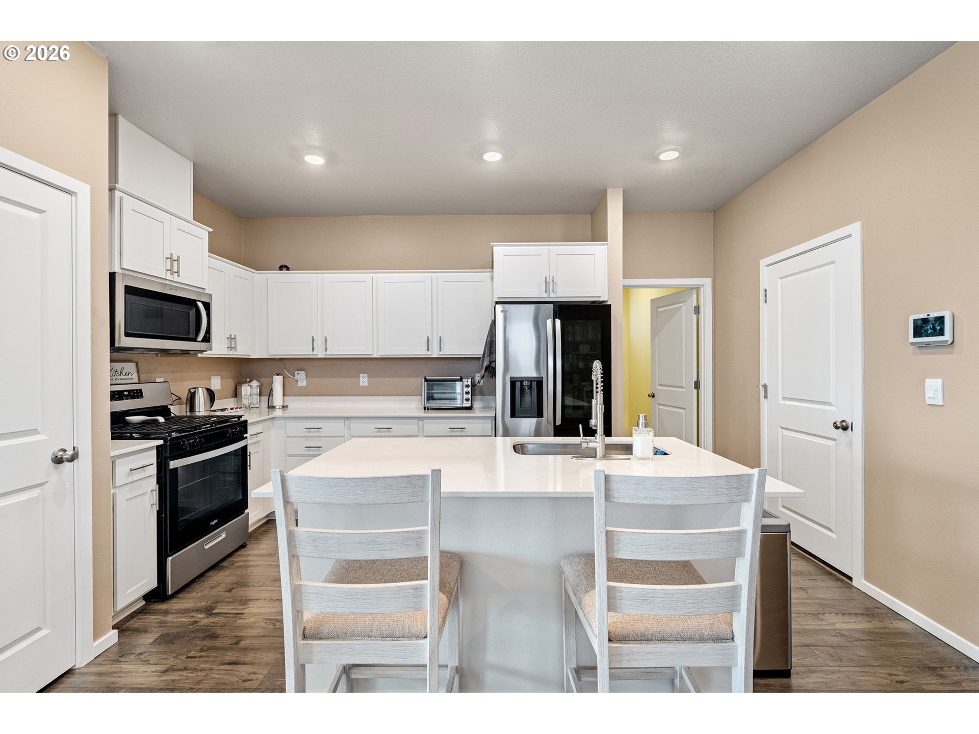 (503) 893-8874Better-than-new, highly desirable single-level home in Marcola Meadows. This popular Spruce floor plan features an open-concept design with the kitchen seamlessly connected to the living space, perfect for everyday living and entertaining. Enjoy high ceilings, a stunning electric fireplace, custom fit blinds and fresh interior paint throughout. Stylish laminate flooring flows through the main living areas, complemented by luxury vinyl tile in the bathrooms and laundry room. The chef’s kitchen offers a large quartz island, solid-surface countertops, pantry, and gas range, making it both beautiful and functional. Upgraded faucets enhance both the kitchen and bathrooms, adding a touch of elegance. Energy-efficient features include a high-efficiency furnace, hybrid heat pump water heater, and a Smart Home package for modern convenience. Outside, sit on the charming front porch or enjoy the patio and fully fenced yard with sprinklers in both the front and back. Ideally located near shopping, bus lines, and with easy freeway access, plus just a short walk to the neighborhood park, this home truly has it all. Call to see this fantastic home today!
