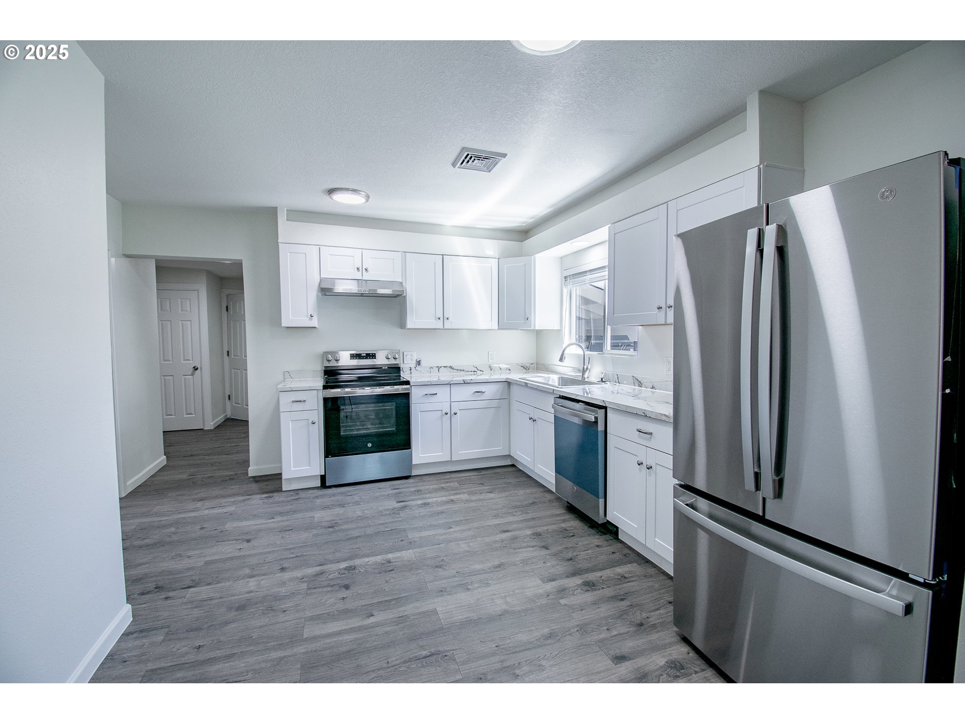 Don’t miss this beautifully remodeled 1910 family home near Historic Downtown Cottage Grove! Step into this 4-bedroom, 2-bath home where modern updates meet comfort and style. Nearly every detail has been refreshed — from the brand-new siding, windows, and roof to the updated cabinetry, sleek laminate flooring, and stylish tilework in both bathrooms. The flexible & spacious 4th bedroom offers the perfect option for a cozy family room, home office, or guest space. Nearly every room has a new ceiling fan and has new heating & AC system… for comfort and air flow.Thoughtfully designed for accessibility and everyday ease, the home includes a convenient ramp entry & walk-in showers… as well as a fenced backyard — ideal for pets, play, or simply soaking up the Oregon sunshine.Nestled on a quiet street walking distance from charming downtown Cottage Grove and the historic library, this move-in-ready home combines convenience with peaceful living. Don’t miss your chance to make it yours — schedule a tour today!