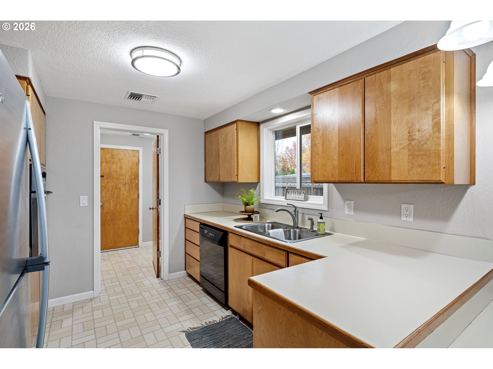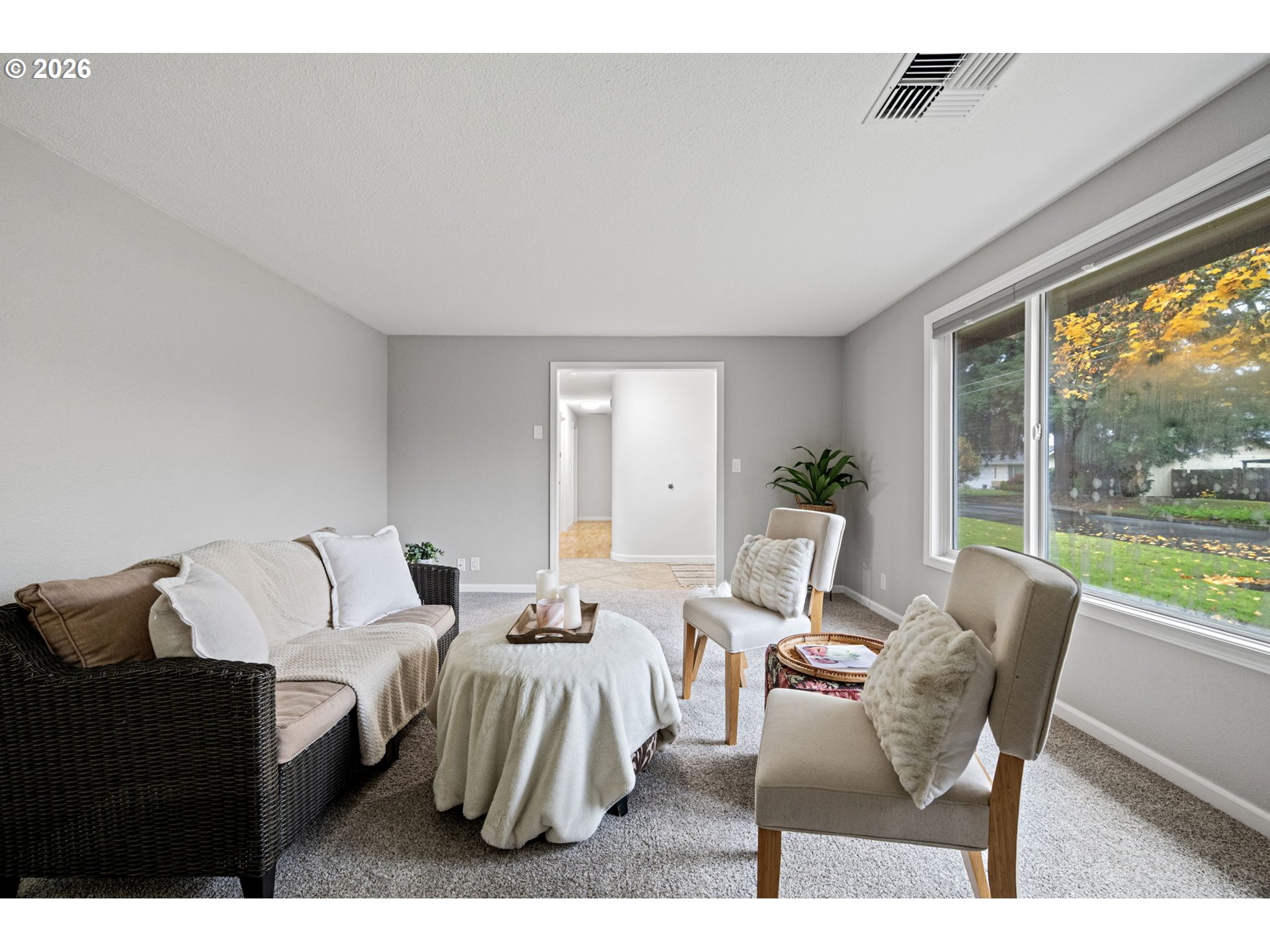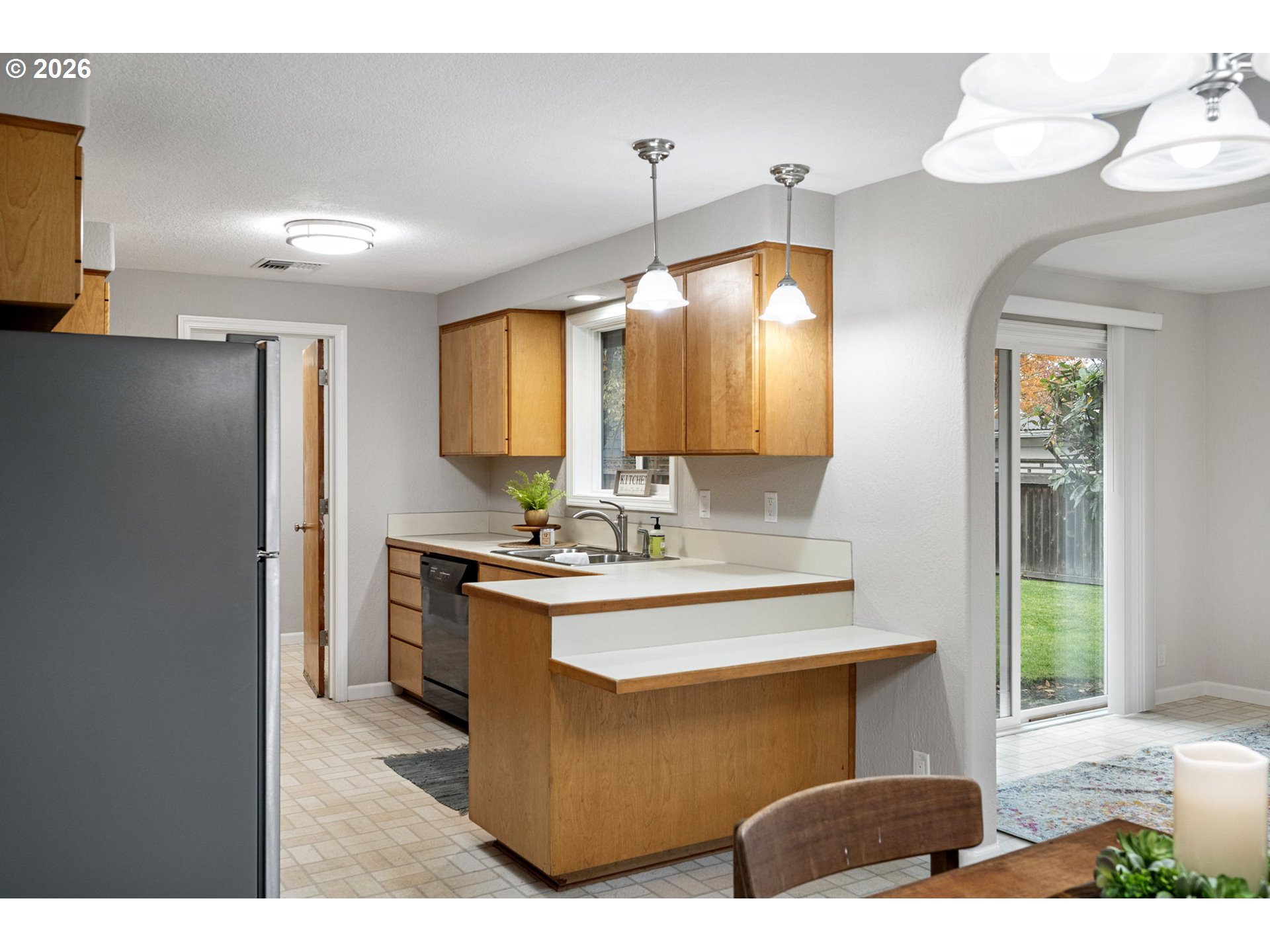 (503) 893-8874OPEN HOUSE 1/18 10am-noon. Situated on nearly a quarter-acre lot, this home offers RV covered parking and excellent outdoor space. Major updates include a new roof (fall 2025), updated heating and cooling (fall 2024), and fresh exterior paint (fall 2025)+ new low-energy LED lights, blinds and interior paint throughout the house. The functional floor plan features both a living room and family room, with the kitchen and dining area thoughtfully positioned between them. The galley kitchen with hints of vintage charm, an eating bar and adjoining the dining space. Three generously sized bedrooms share an updated, spacious main bath, while the indoor laundry/utility room includes a convenient half bath. The oversized garage has built in storage. An irrigation well services the underground sprinklers in the front and back yards + beds. Enjoy the flexibility of the large lot, perfect for future possibilities. Backyard patio with access from both the family room and garage.