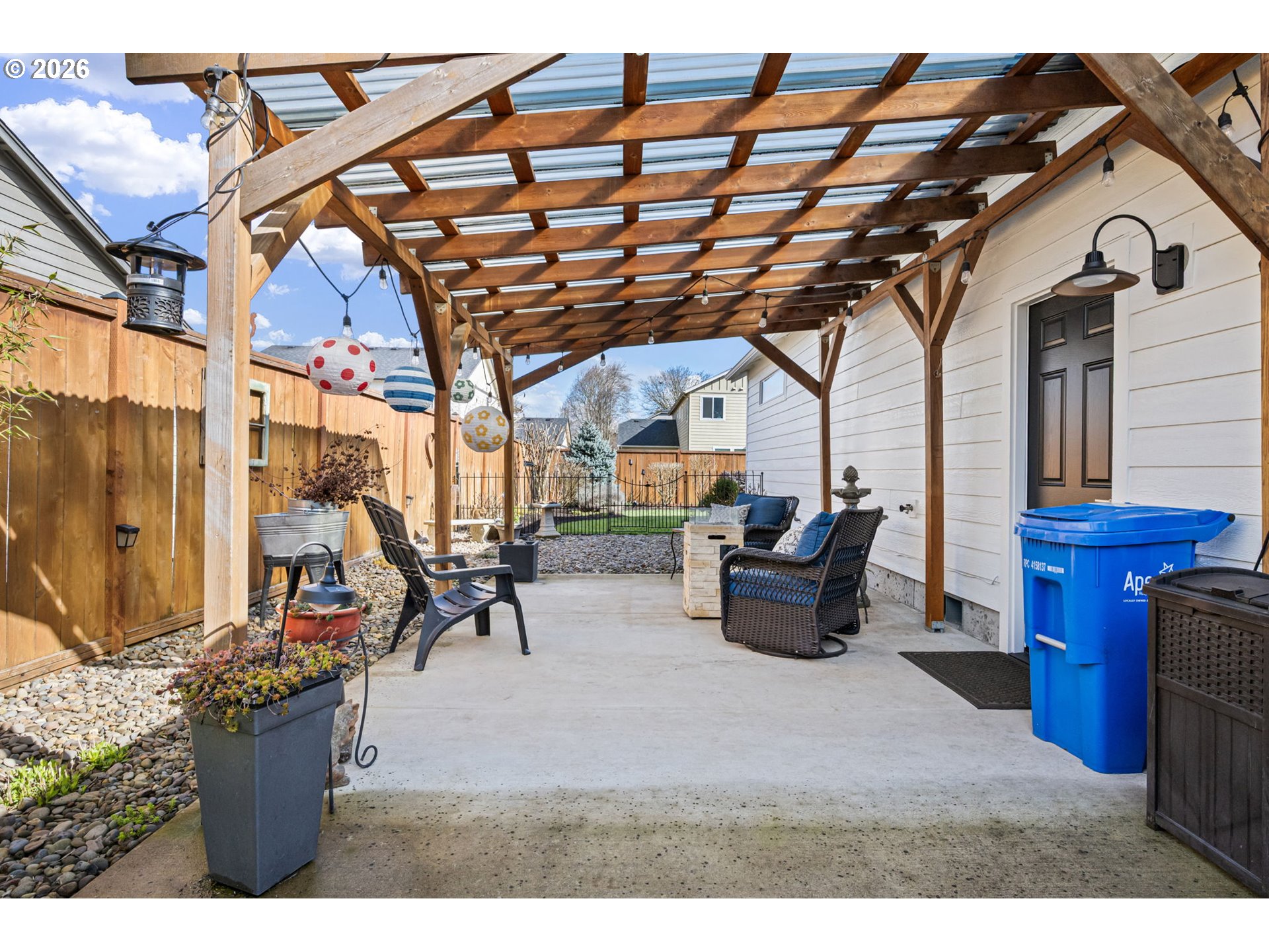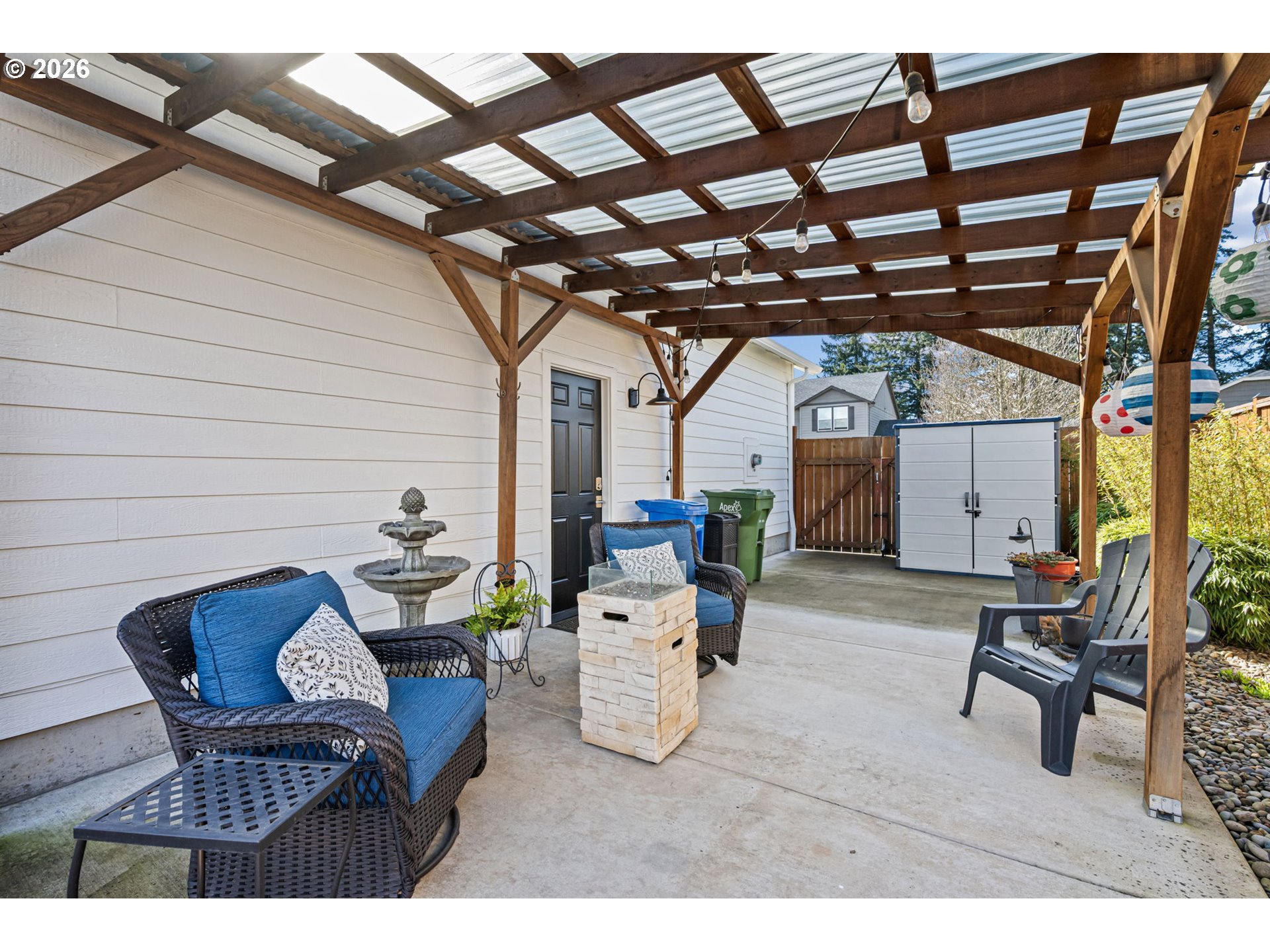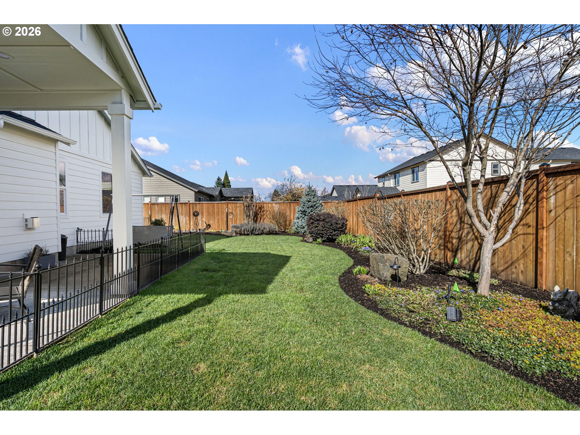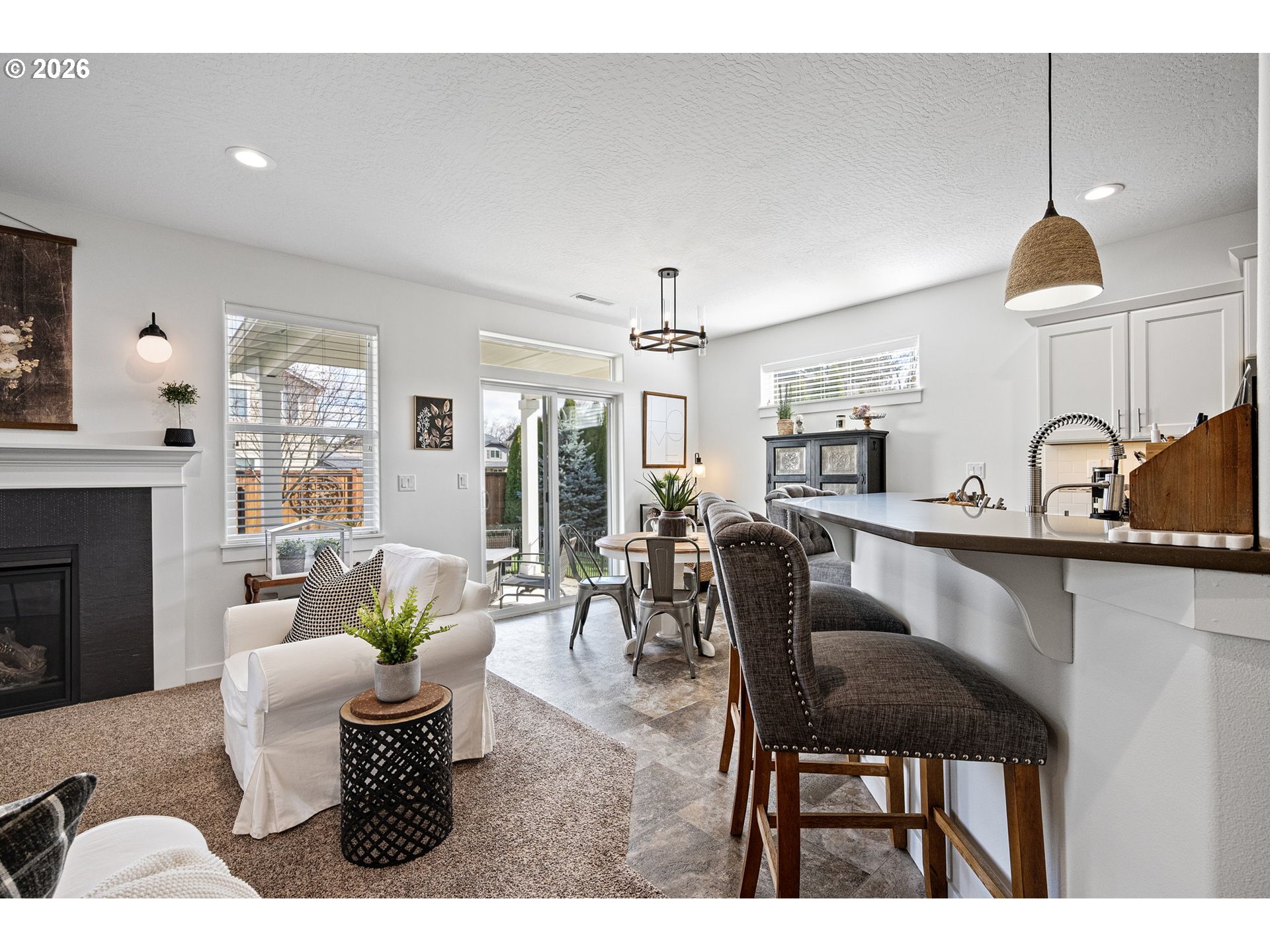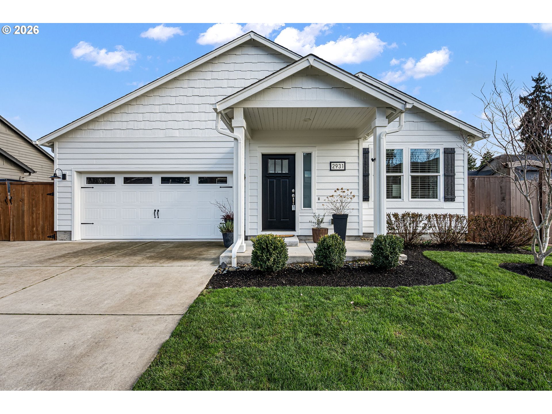 (503) 893-8874Impeccably maintained home on a corner lot with RV parking. Layout offers separation between the primary suite and secondary bedrooms. Spacious great room design with high ceilings and a kitchen eating bar. Dining area features a slider to a covered +extended patio. Living room includes a fireplace. The third bedroom with glass French doors is ideal for a home office. Primary suite includes a walk-in closet, walk-in shower and recently updated with with quartz countertops, under-mount sinks and new toilet.Gorgeous landscaping that has been professionally maintained that includes underground sprinklers in the front and back. The south fence (plus partial west) replaced in 2025. RV parking is currently set up as a patio, cover will need removal for larger RV access, space was previously used for a hot tub. Recent updates include exterior paint (2025), kitchen appliances (2024/2025), updated interior and exterior light fixtures,bath and kitchen faucets, and full interior paint including garage.