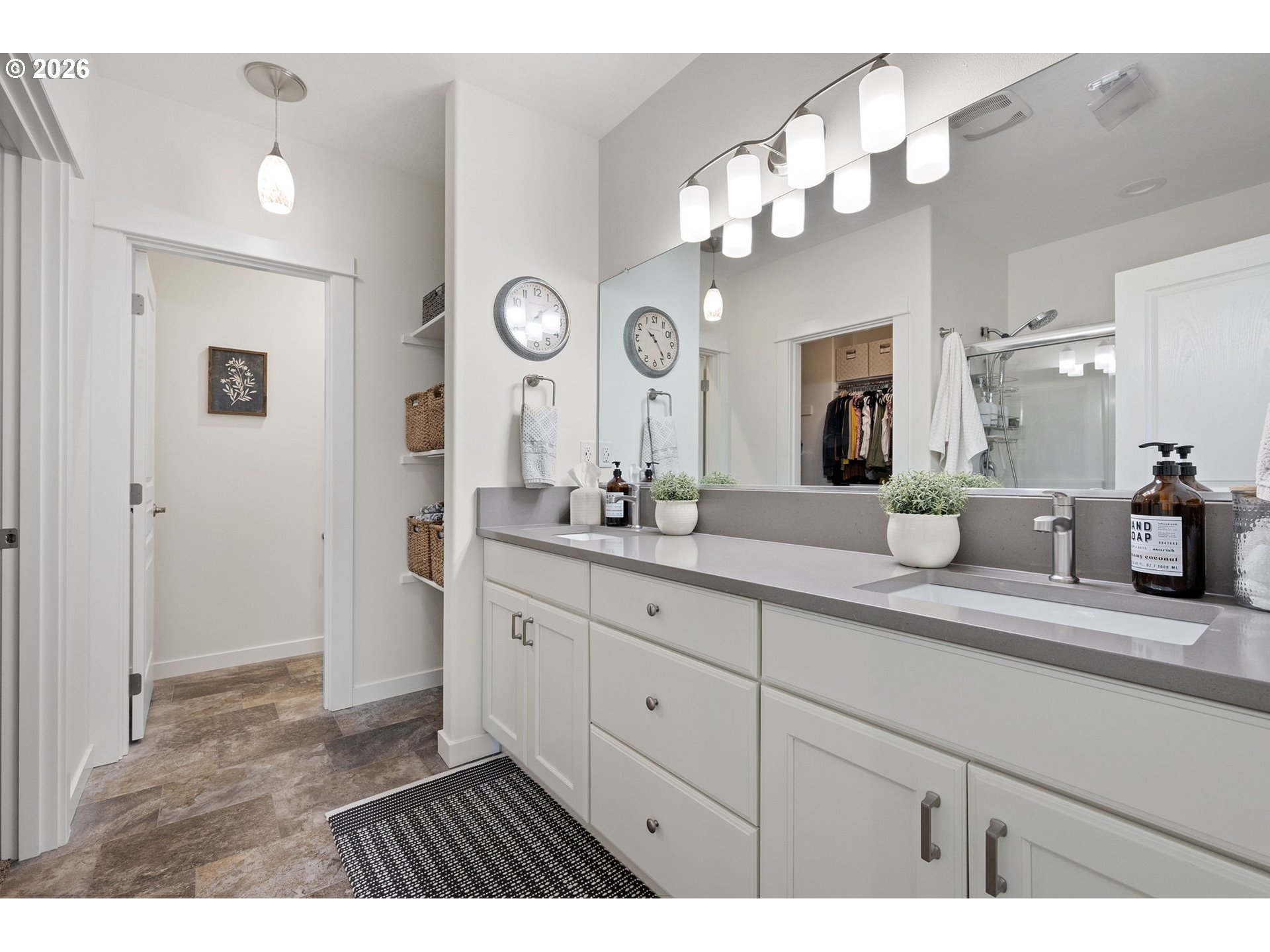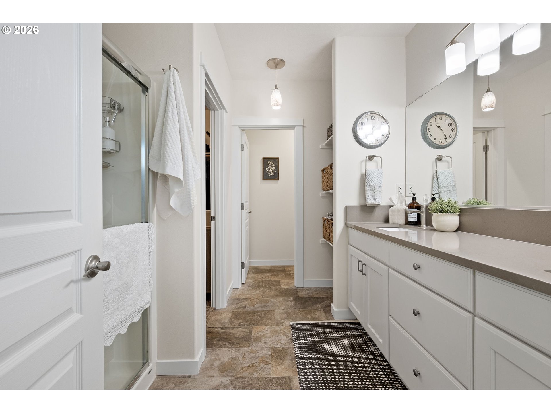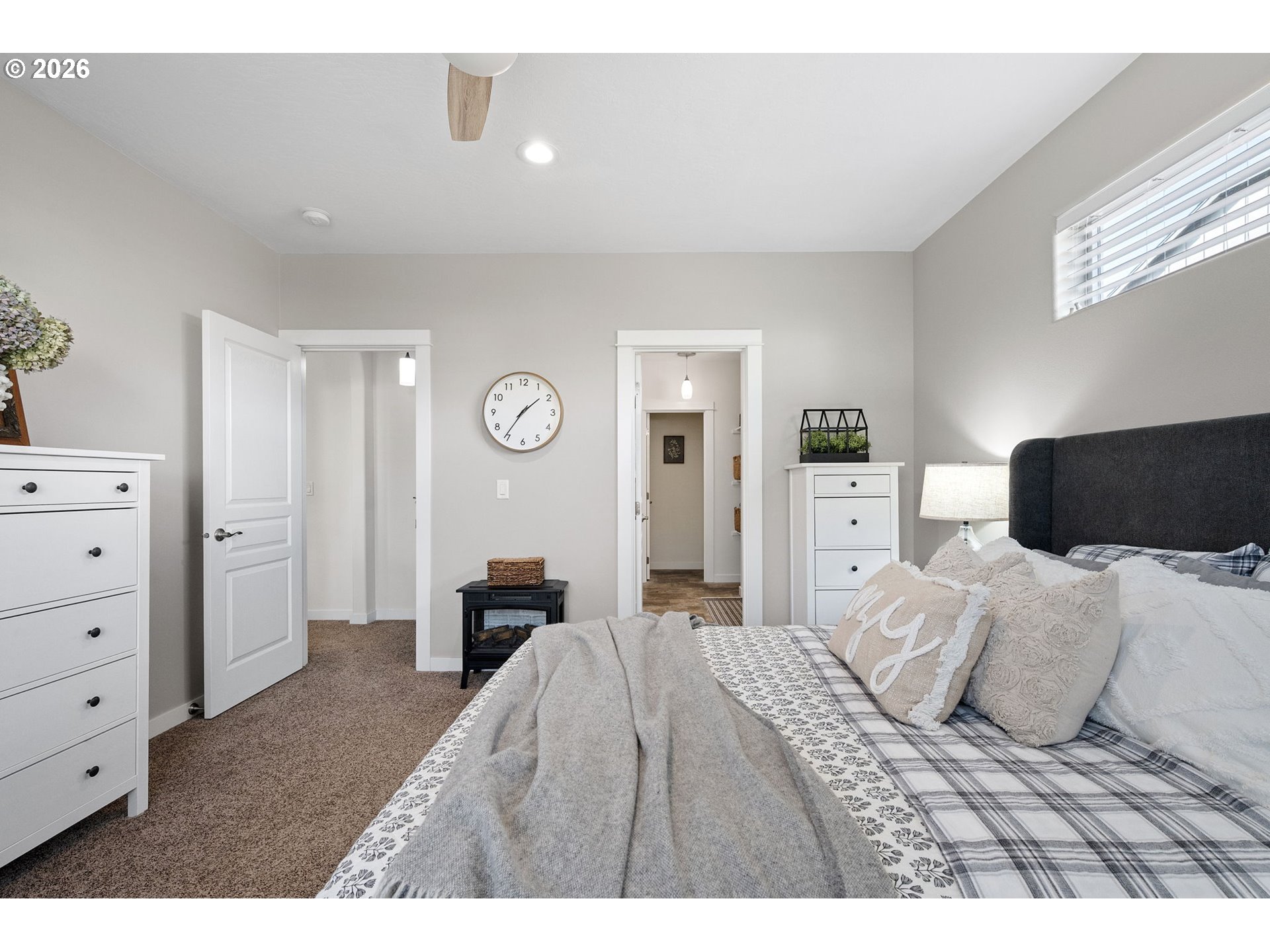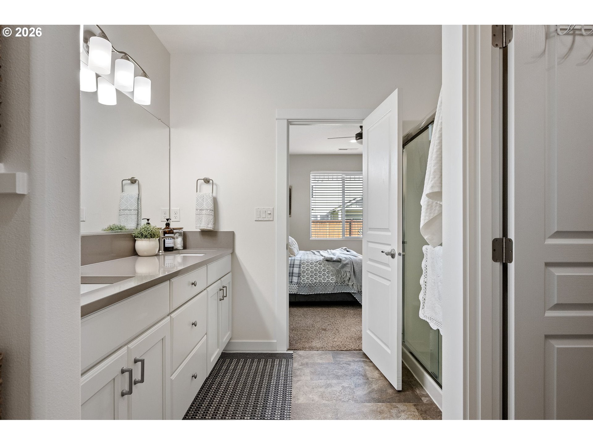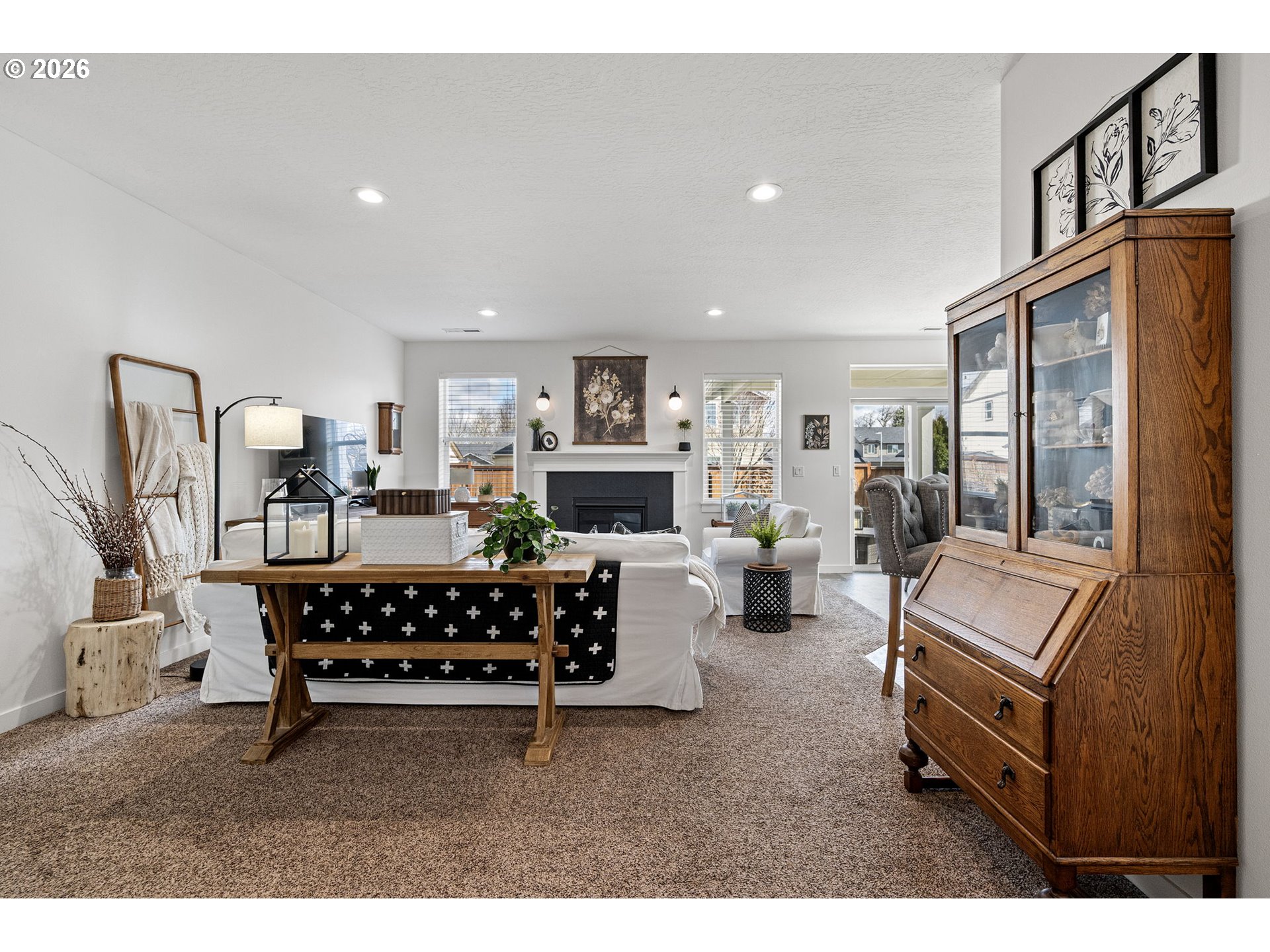 (503) 893-8874Impeccably maintained home on a corner lot with RV parking. Layout offers separation between the primary suite and secondary bedrooms. Spacious great room design with high ceilings and a kitchen eating bar. Dining area features a slider to a covered +extended patio. Living room includes a fireplace. The third bedroom with glass French doors is ideal for a home office. Primary suite includes a walk-in closet, walk-in shower and recently updated with with quartz countertops, under-mount sinks and new toilet.Gorgeous landscaping that has been professionally maintained that includes underground sprinklers in the front and back. The south fence (plus partial west) replaced in 2025. RV parking is currently set up as a patio, cover will need removal for larger RV access, space was previously used for a hot tub. Recent updates include exterior paint (2025), kitchen appliances (2024/2025), updated interior and exterior light fixtures,bath and kitchen faucets, and full interior paint including garage.