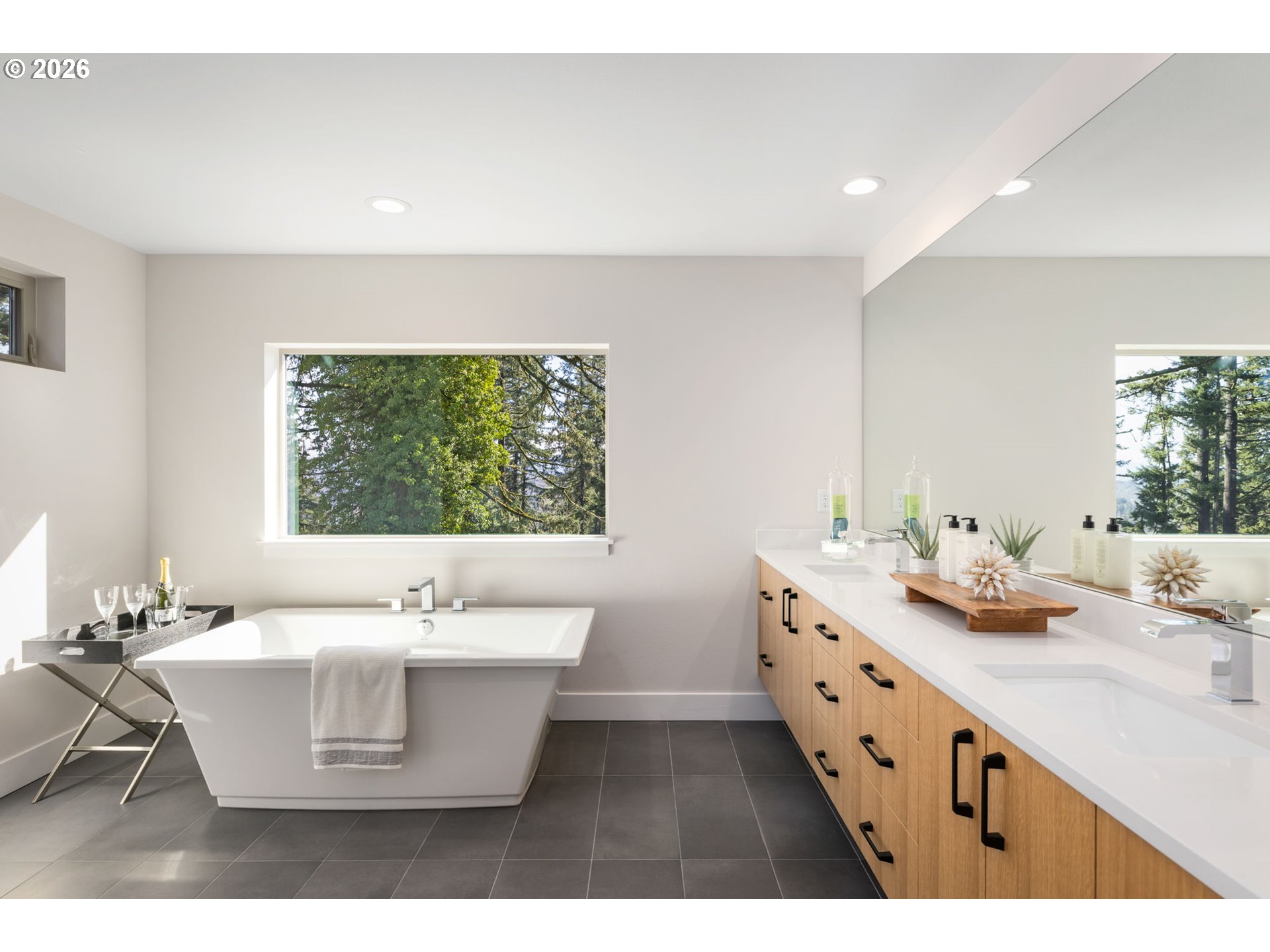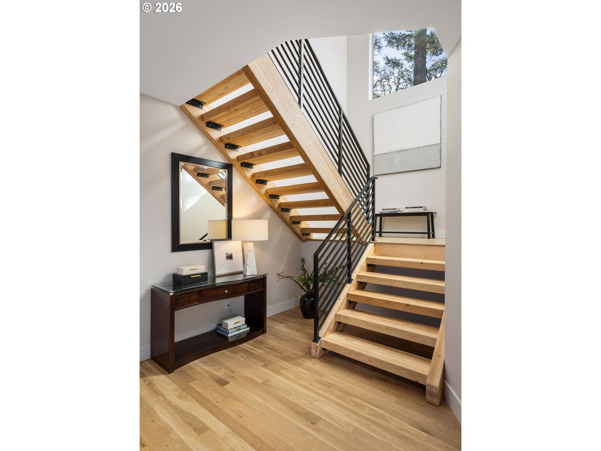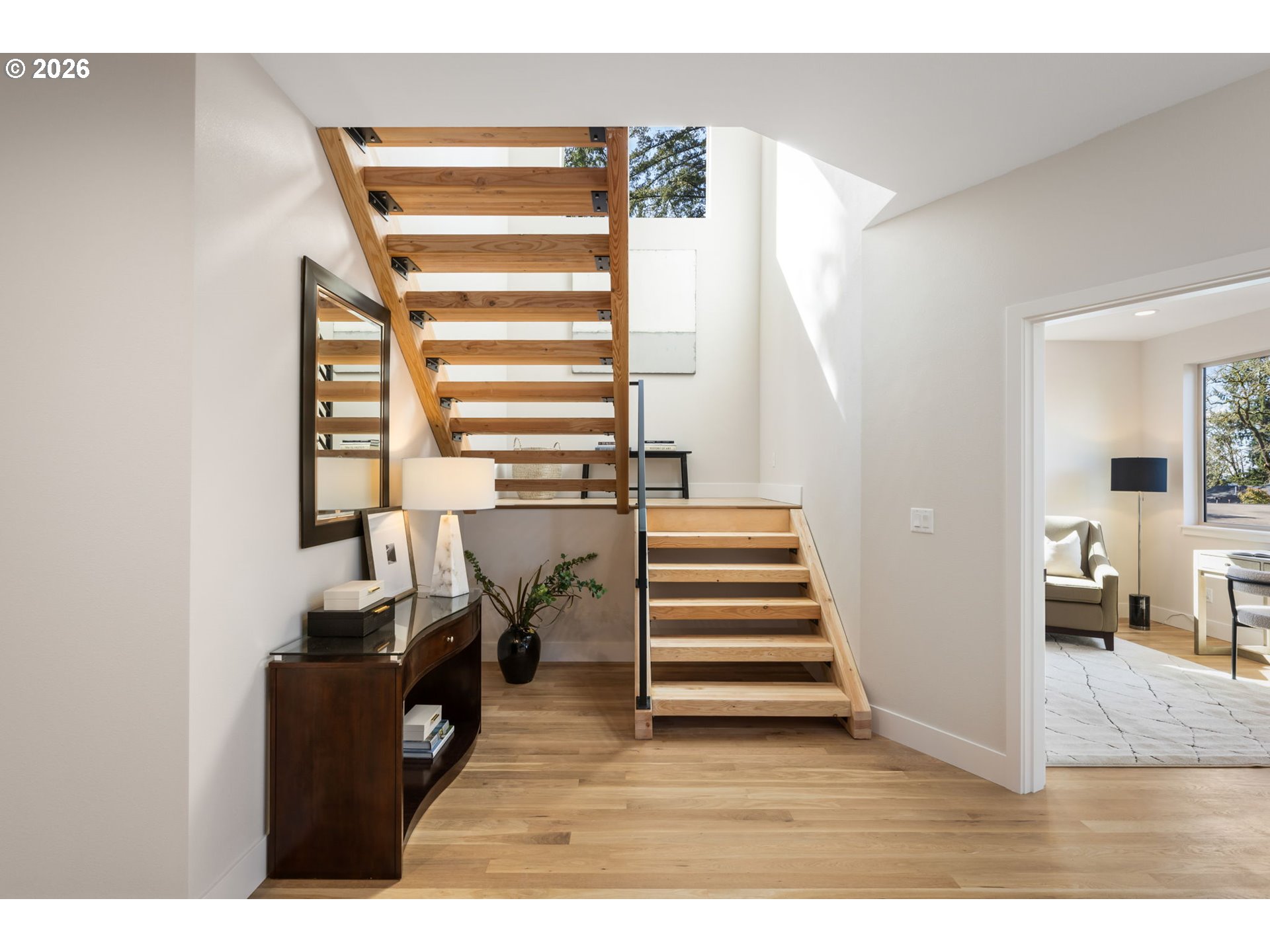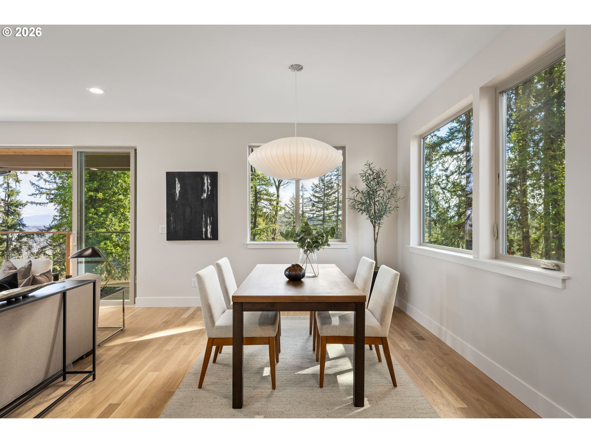 (503) 893-8874This newly constructed "Northwest Modern" home masterfully combines sleek architectural design with the inviting warmth of natural materials. Step through the entryway into a stunning space featuring a striking wood staircase that flows effortlessly into the great room. The open floor plan, paired with double sliding doors leading to a covered deck, creates a seamless indoor-outdoor living experience—perfect for entertaining or relaxing.Every detail, from the rich hardwood oak floors to the quartz countertops, designer lighting, and a contemporary fireplace, reflects superior craftsmanship and thoughtful design. Perched high within the University Overlook neighborhood, the home is surrounded by the natural serenity of lush trees and open skies, with glimpses of city skyline and mountain views adding to its allure.This is more than just a home—it's a modern, luxurious retreat waiting to welcome you. *property tax not yet assessed.