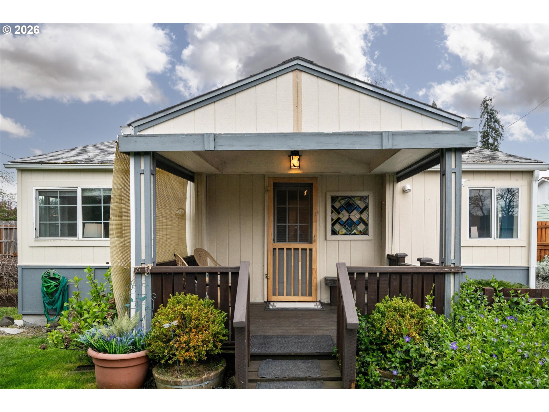 Adorable 2 bedroom cottage in Springfield with RV parking and cute gardens. Fruit trees in the sunny backyard. Property feels very private due to landscaping. This is truly a Gardener's Delight! Updates in kitchen and bathroom, too. Stackable washer and dryer included. All kitchen appliances stay. This house is not a fixer. It is in great shape and move-in ready. Come see it today! Open house Sat & Sun 1-3pm (April 4-5th).