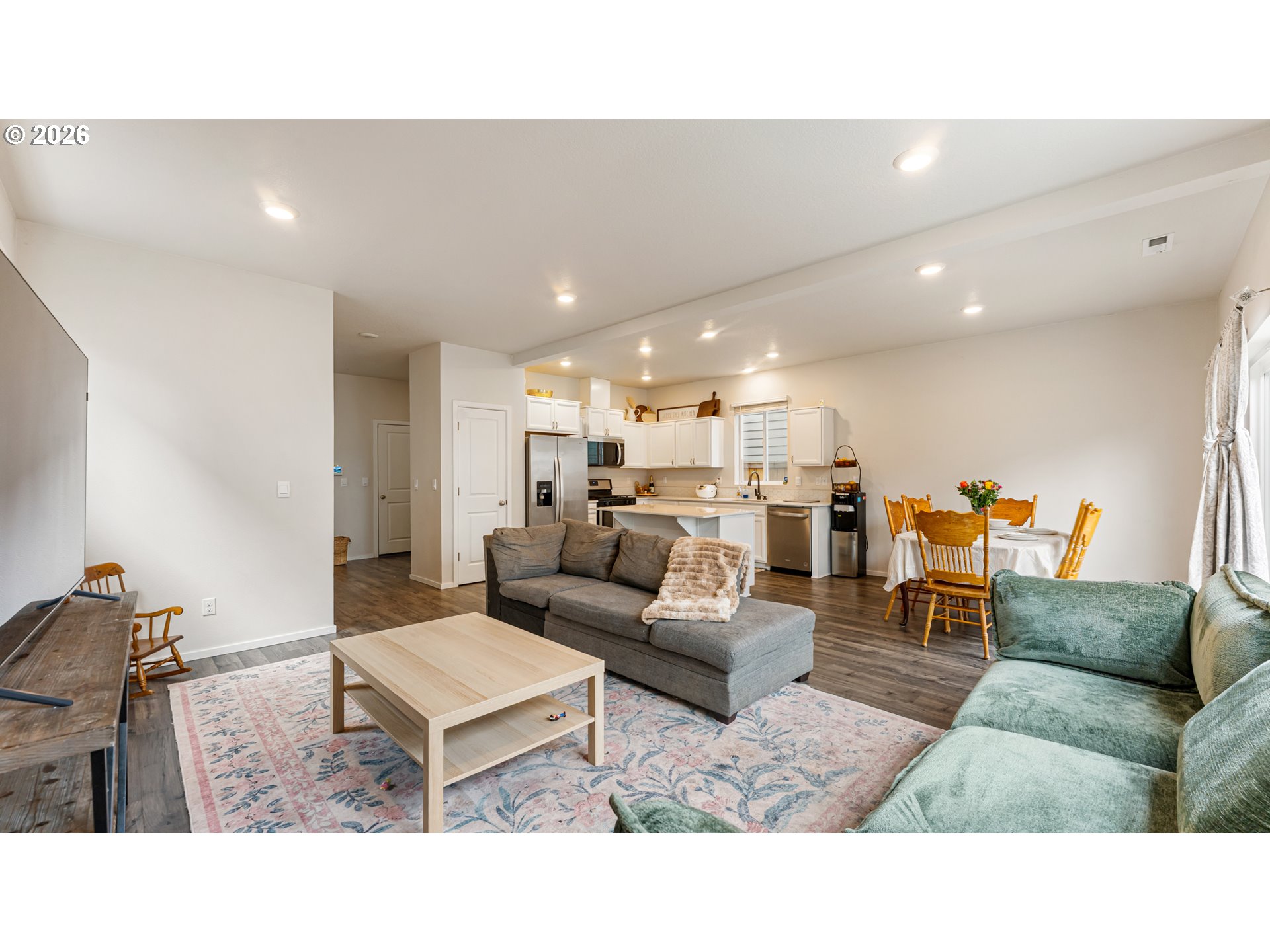 This beautifully maintained home offers an open and inviting layout, featuring four spacious bedrooms, three and a half bathrooms and a thoughtfully designed space for comfort and everyday living. The main level welcomes you with a bright, expansive living room that flows seamlessly into the dining area and kitchen—creating the perfect setting for both entertaining and relaxing at home.The kitchen is thoughtfully designed with modern cabinetry, quartz countertops, stainless steel appliances, and a generous pantry for ample storage. At the center, a large island anchors the space, making it the true heart of the home. Just off the kitchen, the dining and living areas provide a warm and functional space for gatherings, enhanced by natural light throughout.Upstairs, you’ll find all four bedrooms, including a spacious primary suite designed for privacy and comfort. The additional bedrooms are generously sized, ideal for family, guests, or a home office. The upper level offers a practical and well-balanced layout, giving everyone their own space.Located in a sought-after neighborhood, this home offers easy access to nearby parks, walking paths, shopping, and dining. With its blend of style, functionality, and location, this move-in ready home is an excellent opportunity for buyers looking for their forever home.