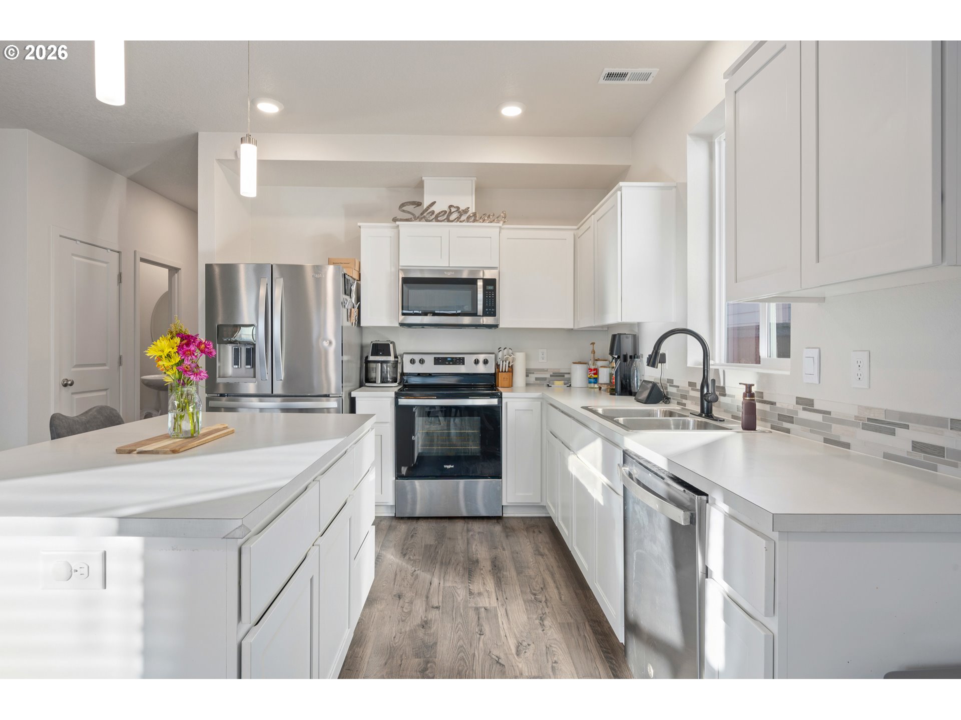 Well-maintained and move-in-ready 2021 build, this home is located in the desirable Marcola Meadows community and offers a thoughtfully designed layout with four bedrooms and a versatile loft, ideal for a home office, media room, or additional living space. The main level features tall ceilings and an open-concept design that creates a bright, welcoming atmosphere. All stainless steel kitchen appliances included. The large kitchen island provides functional space for both everyday living and entertaining. A convenient upstairs laundry adds to the home’s practical design. The primary suite includes a spacious walk-in closet and a private bathroom with a walk-in shower. Additional features include a two-car garage and a one-year home warranty, offering added comfort and peace of mind. Outdoor living is enhanced by a covered patio perfect for relaxing or hosting gatherings, along with a fully fenced yard. Conveniently located with access to shopping, dining, schools, and the EWEB path, this home blends comfort, functionality, and location
