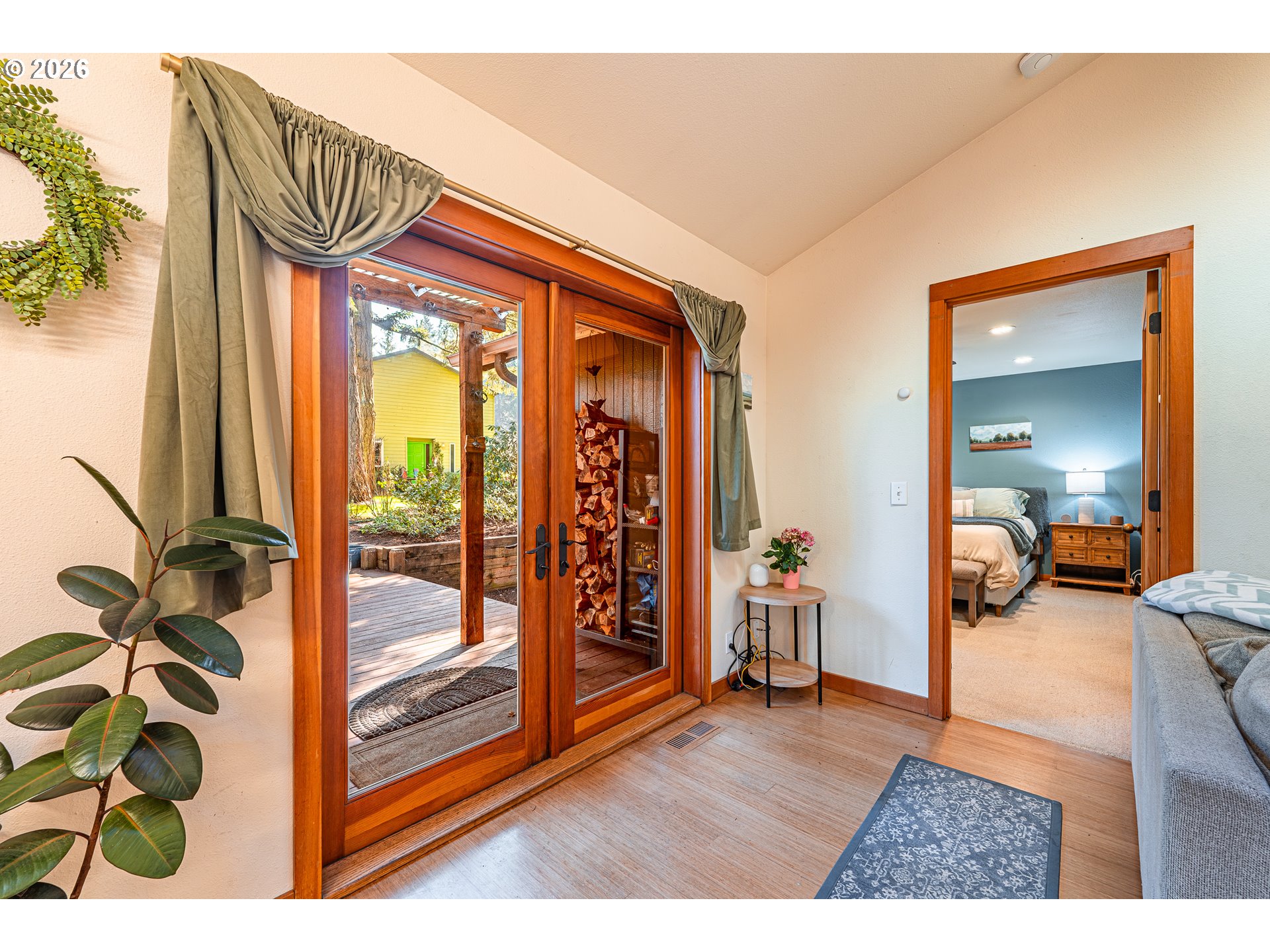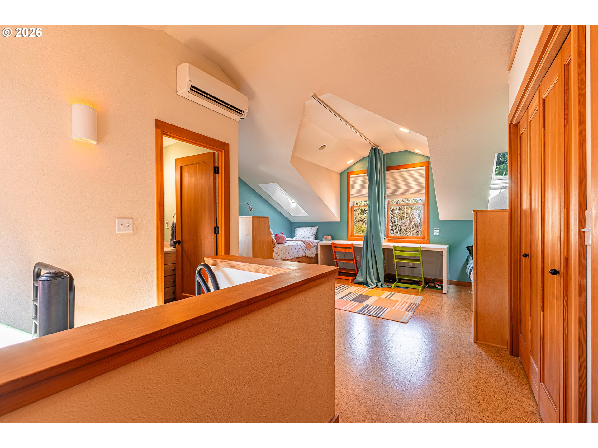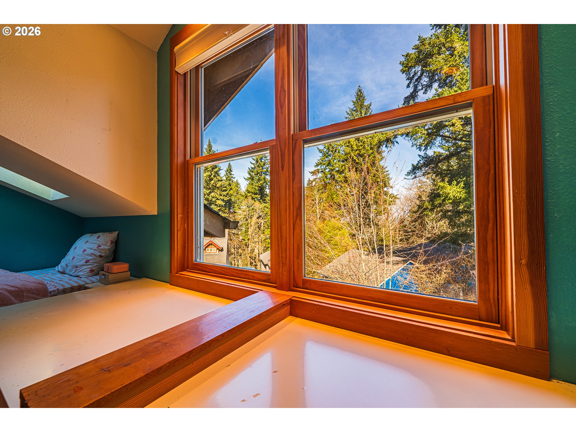 Tucked away in a serene private community surrounded by towering evergreens, this 4-bedroom, 3-bath Midcentury PNW Contemporary home is a true retreat. Clean architectural lines, warm wood tones, vaulted ceilings, and bamboo floors create an inviting blend of style and durability throughout the main living spaces. Skylights flood the home with natural light by day and offer cozy views of the night sky after sunset, enhancing the open, airy feel. A wood stove provides warmth and ambiance in the winter, while air conditioning keeps things comfortable through the summer months. With EV charging capability already in place, this home is thoughtfully equipped for modern living. The updated kitchen combines beauty and function with custom cabinetry, butcher block counters, and smart appliances. Built-in storage throughout the home ensures space for everything you need. From the kitchen, the layout flows seamlessly into the main living and dining areas—ideal for both everyday living and effortless entertaining. Leading up the spiral staircase is the fourth bedroom, offering a private retreat complete with its own full bath and two built in twin beds. It’s a perfect setup for guests, a home office, or multigenerational living. An on-demand water heater adds efficiency and provides endless hot water for daily comfort. Enjoy peaceful seclusion while remaining just minutes from the University of Oregon, downtown Eugene, and downtown Springfield. This home offers timeless design, modern convenience, and the tranquility of true forest living. Open house Sat 3/7/26 Sun 3/8/26 10am-12pm. Come see this unique home.