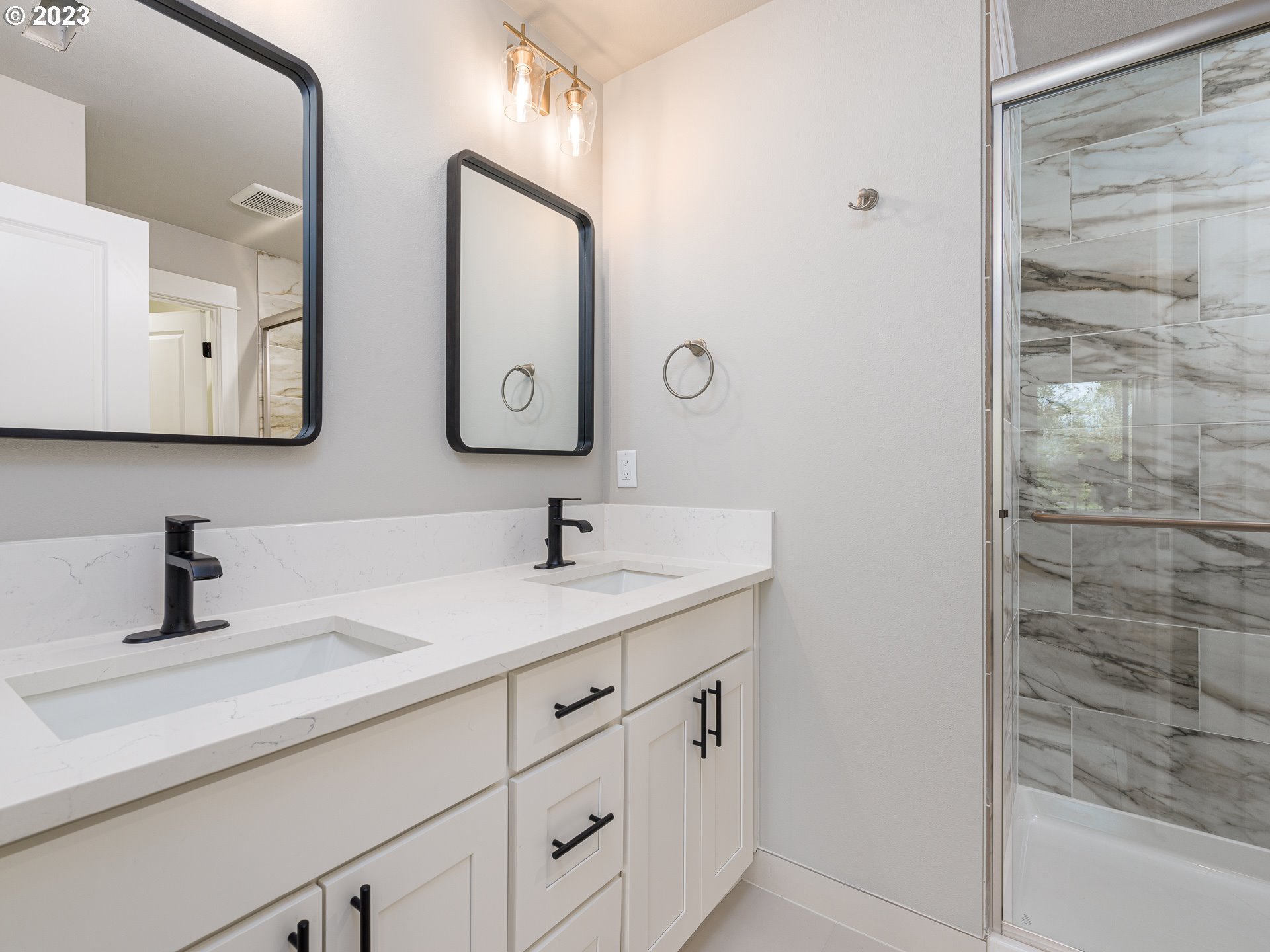 Introducing our brand-new contemporary construction, conveniently located just 10 minutes away from Eugene! Enjoy the best of both worlds with easy access to the city while still being able to enjoy the peace and tranquility of a suburban lifestyle. Our community offers a range of 4-bedroom units, perfect for families of all sizes. Spacious Great room floorplan on main floor. The living room has tons of light with large Milgard windows, high ceilings, hardwood floors, and a cozy fireplace. The great room space is open to both the kitchen & dining room. You'll also find a powder room and generous 2 car garage off the main floor. The Gourmet kitchen has all stainless appliances, tons of built in cabinets, quartz countertops & tile backsplash. The generous dining room opens to the back patio & yard for entertainment. Upstairs you'll find a roomy primary bedroom ensuite with a generous walk-in closet & tons of light. Designer colors & finishes throughout the entire home. The front yard is landscaped with lawn, hardscape, and sprinklers. Amenities include tennis courts, basketball, parks, extensive neighborhood walking paths & a renowned golf course which is a short walk away.