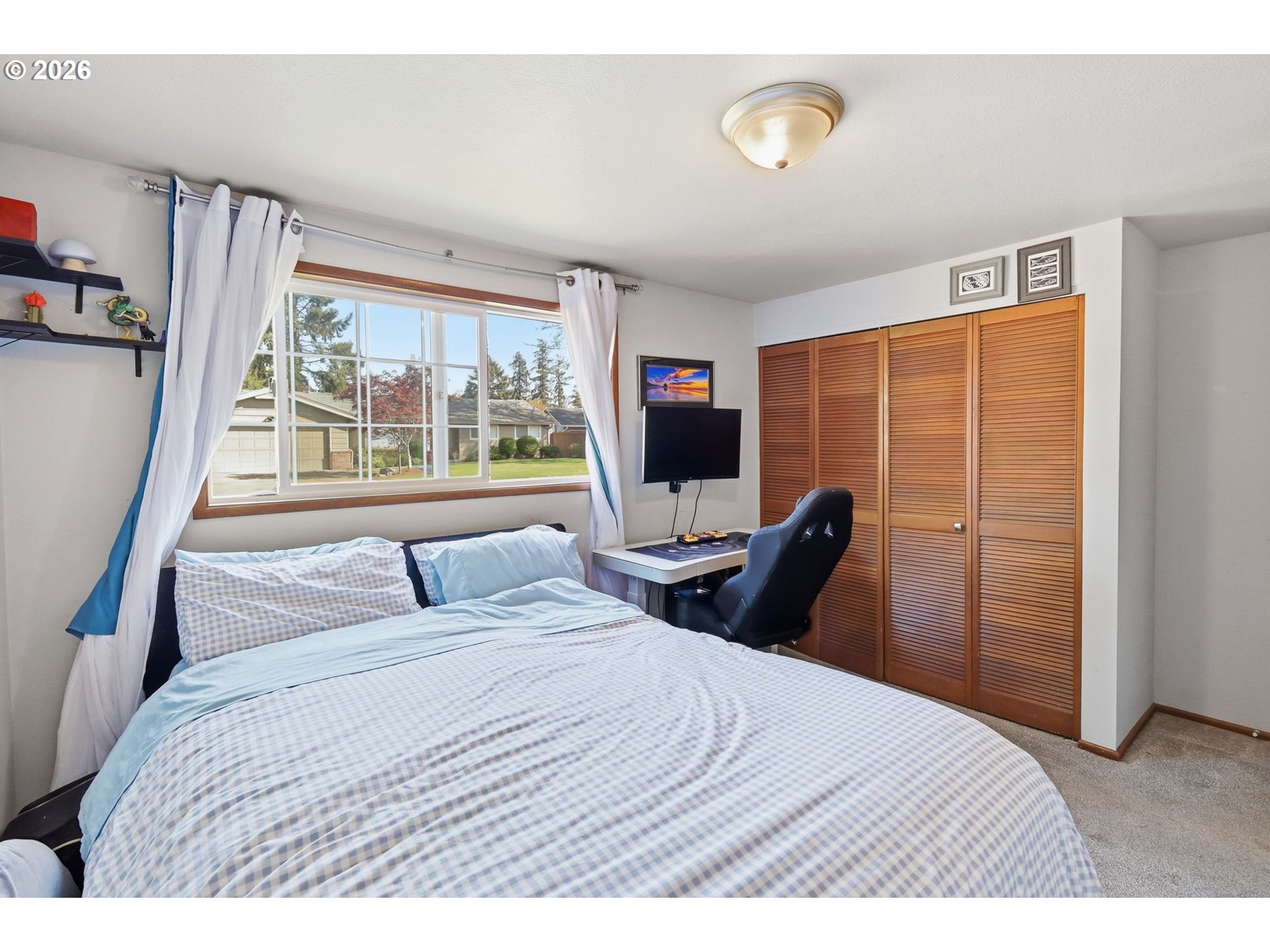 This well-maintained single-level home in Santa Clara offers a functional layout, quality updates, and inviting indoor-outdoor living. The light-filled living room is anchored by a brick fireplace with built-in shelving and large windows overlooking the backyard, creating a comfortable and connected main living space. The kitchen features quartz countertops, stainless steel appliances, gas range, and abundant cabinetry, flowing easily into the dining area with sliding door access to a covered patio. The primary suite includes an updated ensuite bath with walk-in shower, while two additional bedrooms provide flexibility for guests, office, or hobbies. Situated on a level, beautifully landscaped lot with a fully fenced backyard, mature greenery, and tool shed, this property also features a brand-new storm door, central air and an attached two-car garage. Conveniently located near schools, parks, and everyday amenities. Schedule a tour today or stop by one of the TWO open houses happening this weekend, April 11th & 12th.