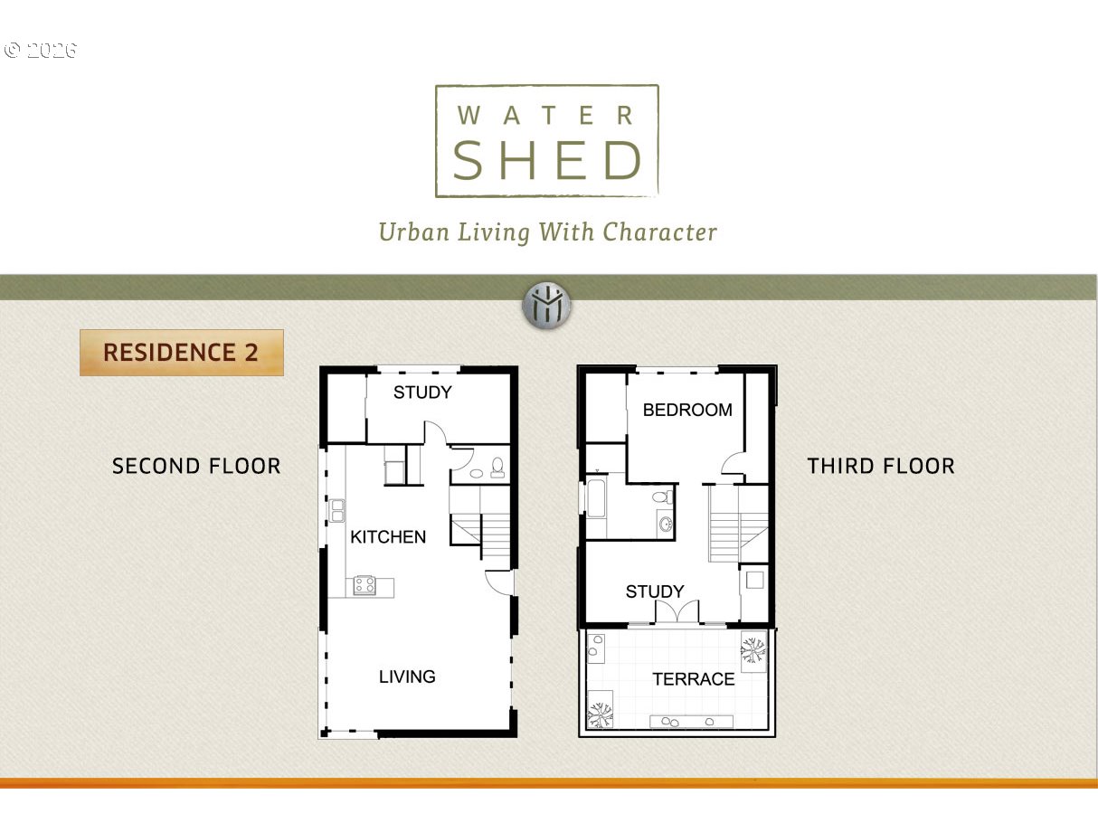 Introducing the WaterShed Condos – A Landmark of Vision and Craftsmanship in Eugene. Born from a deep love of community and inspired by the charm of Europe’s backstreets and the vibrancy of Mexican plazas, the WaterShed was designed to bring that same spirit of place and connection to Eugene’s North of Fourth (NoFo) neighborhood.This one-of-a-kind mixed-use building was crafted with longevity, sustainability, and beauty in mind. Its structure is built with aerated autoclaved concrete—an advanced European material that insulates, soundproofs, and regulates temperature naturally. A stainless steel roof, triple-paned and operable windows ensure quiet comfort, energy efficiency, and fresh air year-round.15,000 gallon rainwater cisterns supply water for laundry, landscaping, and toilets for most of the year, and the landscape is thoughtfully planted with native, low-water flora. With natural finishes, no PVC or natural gas, and exposed utilities for easy maintenance, every detail has been considered.The WaterShed’s classic lines echo timeless architecture, creating a building that feels rooted in history but built for modern life. Located next to Coldfire Brewing’s taproom and restaurant, and part of the revitalized NoFo community, it’s a space meant to be explored—and remembered. Passersby often double back to say, “Wait a minute, what’s that?” Welcome to the WaterShed.~~~~~~~~~~~~~~The first level of Unit 2 features a great room concept living/dining/kitchen area, a half bathroom, ample storage, and an office study on the main level. Upstairs, under vaulted ceilings you'll find a bedroom with en-suite bath with clawfoot tub and dedicated shower, a light filled den/office/study, and a spacious balcony with southerly views of the Willamette River, Eugene skyline, and Spencer Butte.