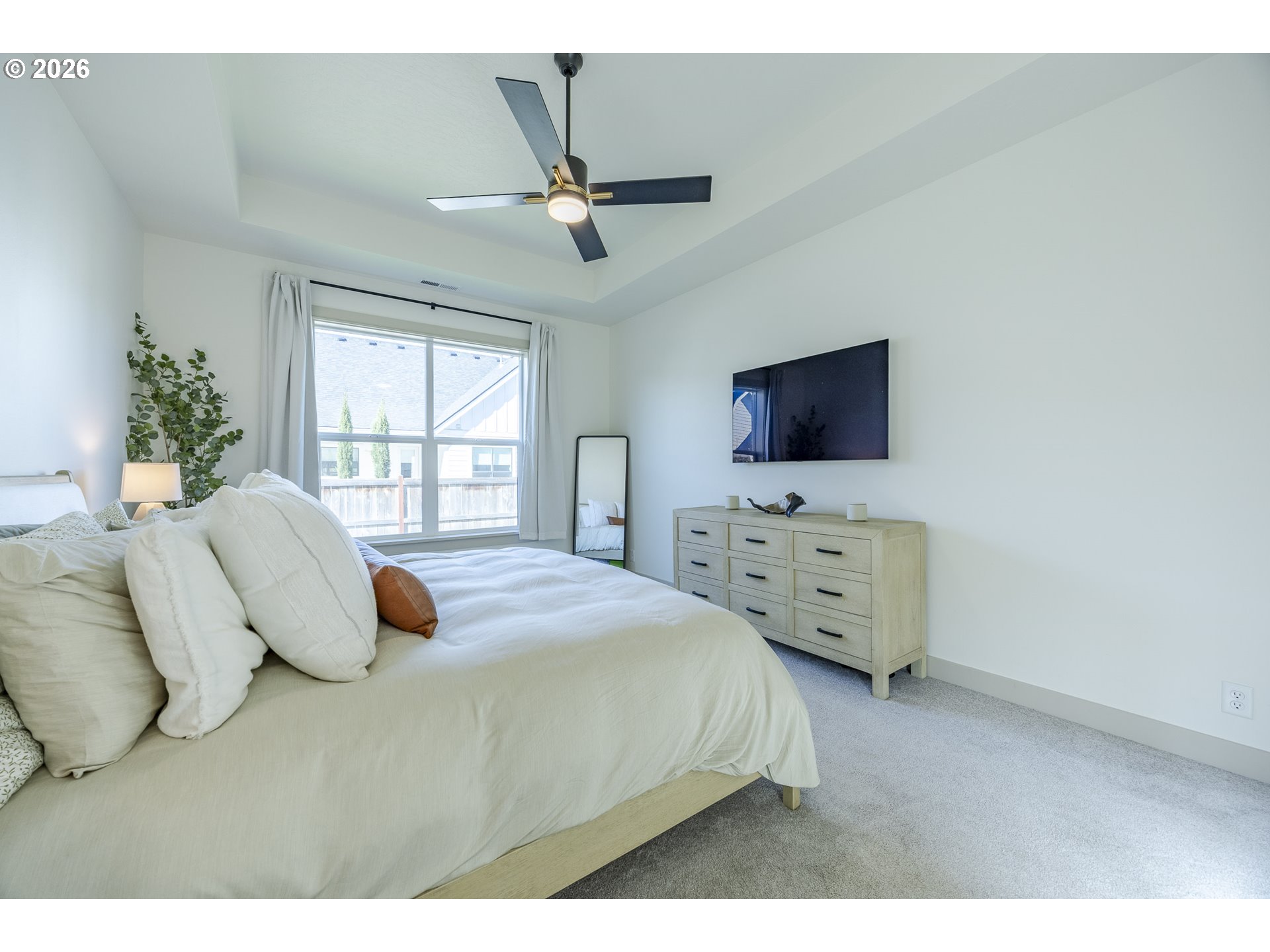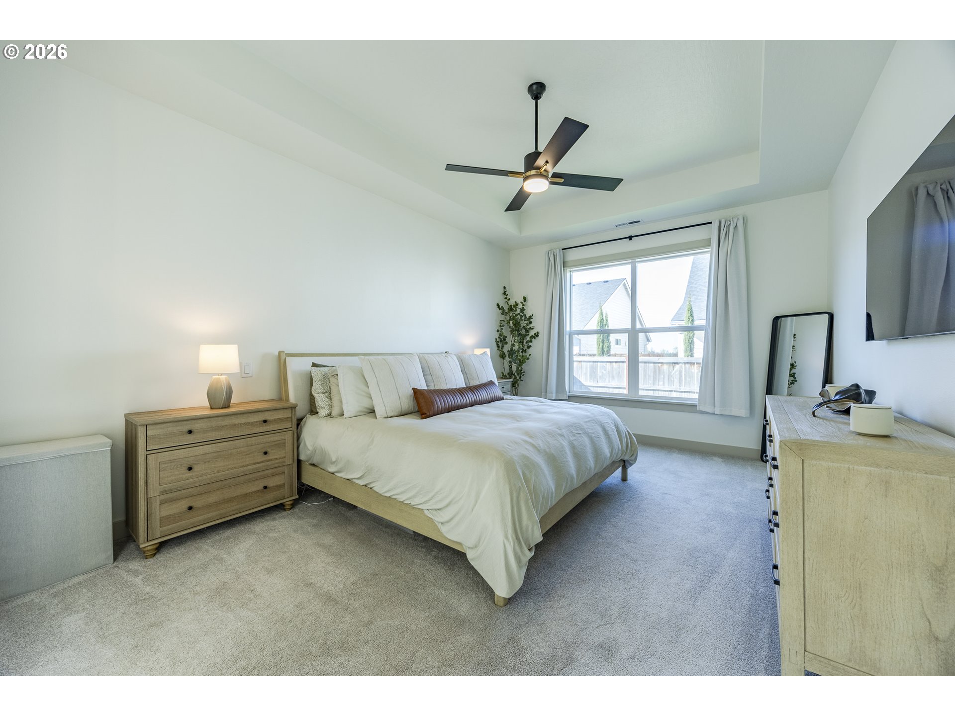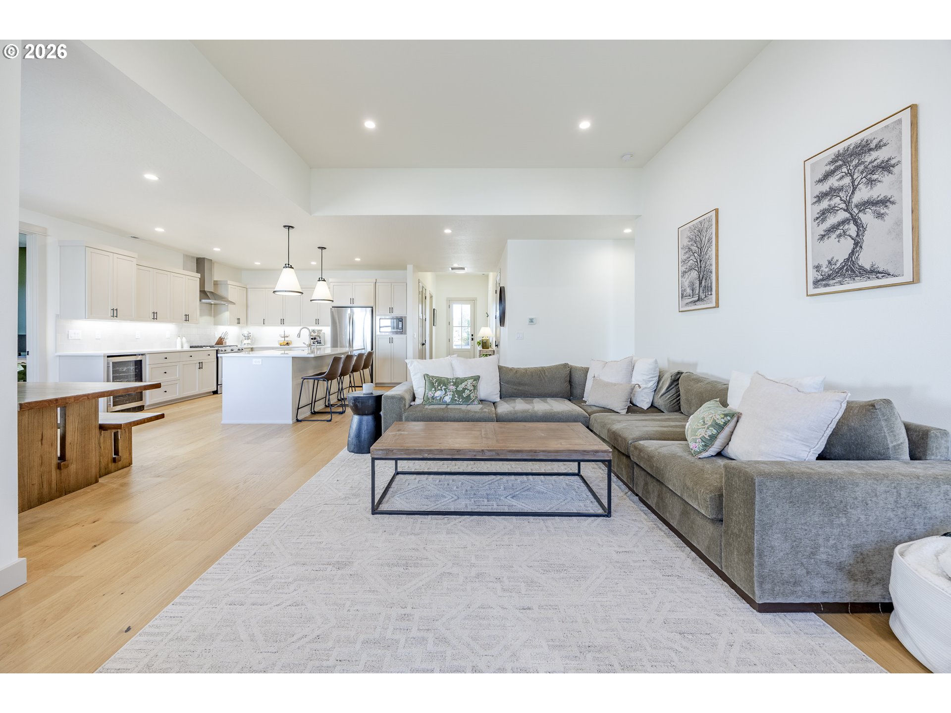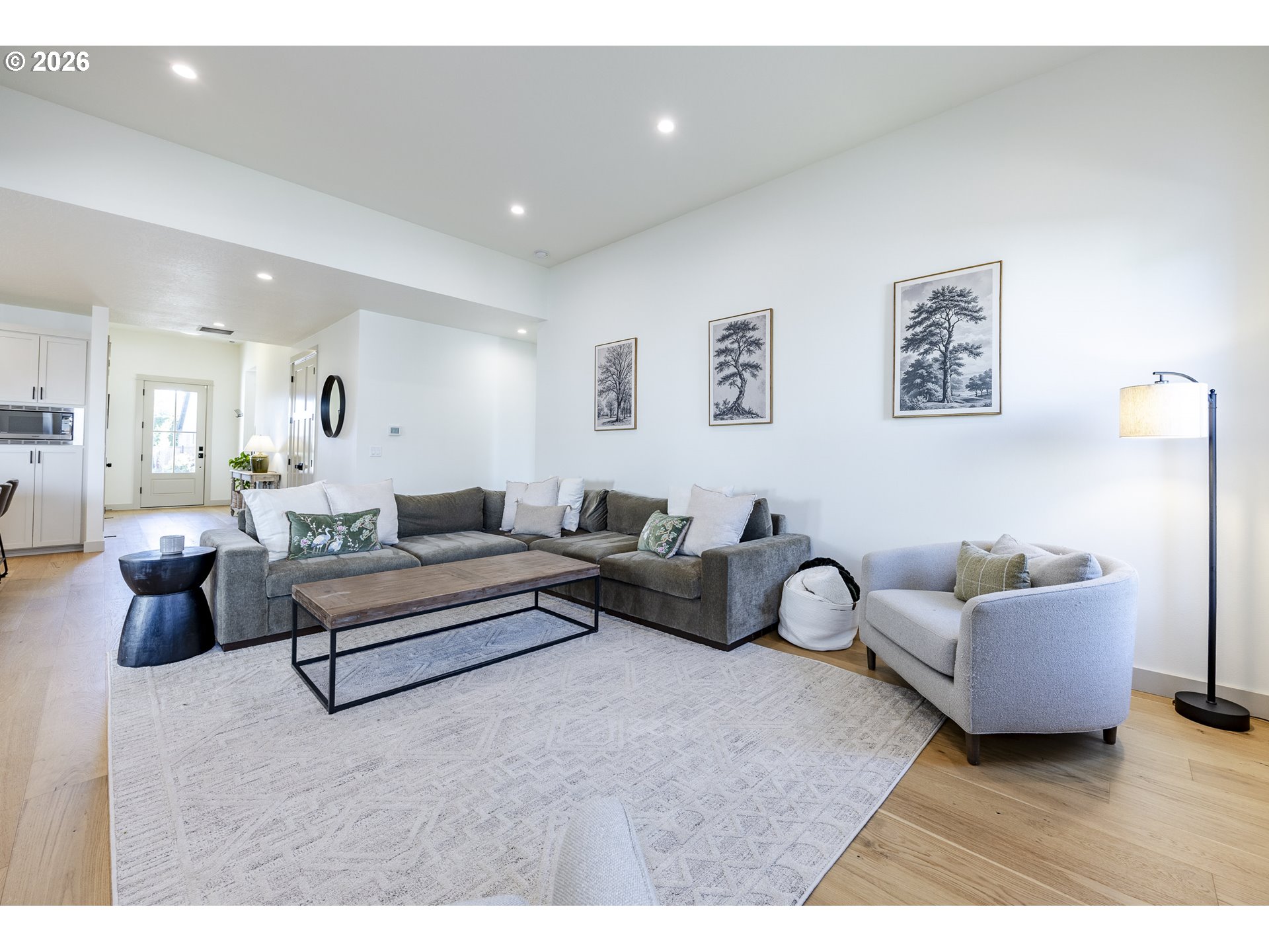 Experience modern luxury and elevated craftsmanship in this newer Bruce Wiechert-built home, ideally located in the highly desirable Coburg, OR. Fully customized beyond comparable floor plans, this residence offers refined design, a long list of intentional upgrades, and a level of finish rarely found in newer construction. This high-quality three bedroom home also includes a dedicated office, or 4th bedroom. Step inside to abundant natural light throughout, complemented by engineered hardwood floors, 8-foot doors, and a stunning gas fireplace highlighted by a custom floor-to-ceiling mantle. At the heart of the home, the expanded and reimagined kitchen features quartz countertops, custom cabinetry, stainless steel appliances, a built-in wine fridge, and an oversized island designed for gathering and entertaining. The primary suite features a spacious walk-in closet, double vanity, free standing tub, and a beautifully tiled walk-in shower. Outside, you’ll find upgraded exterior details, including pillars and an extended front eave, enhancing the home’s curb appeal. The covered patio, fully fenced yard, and professionally upgraded front and back landscaping with a sprinkler system offer both beauty and ease of maintenance. A rare opportunity to own a nearly new, fully customized home without the wait!