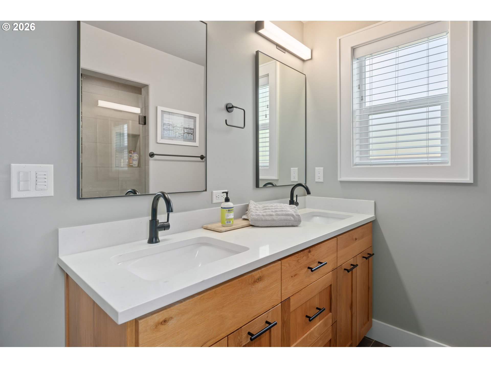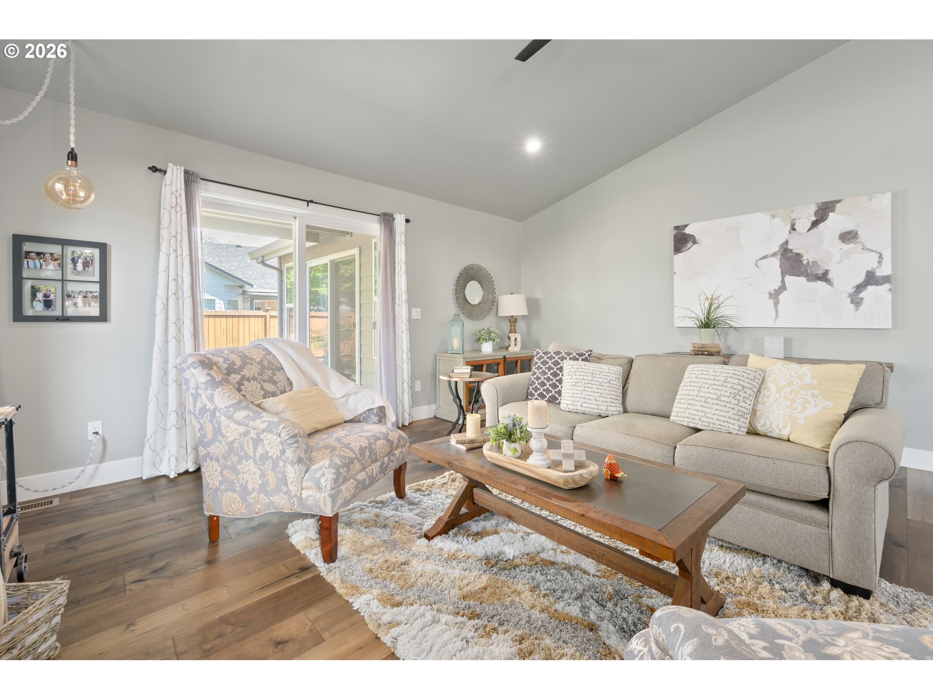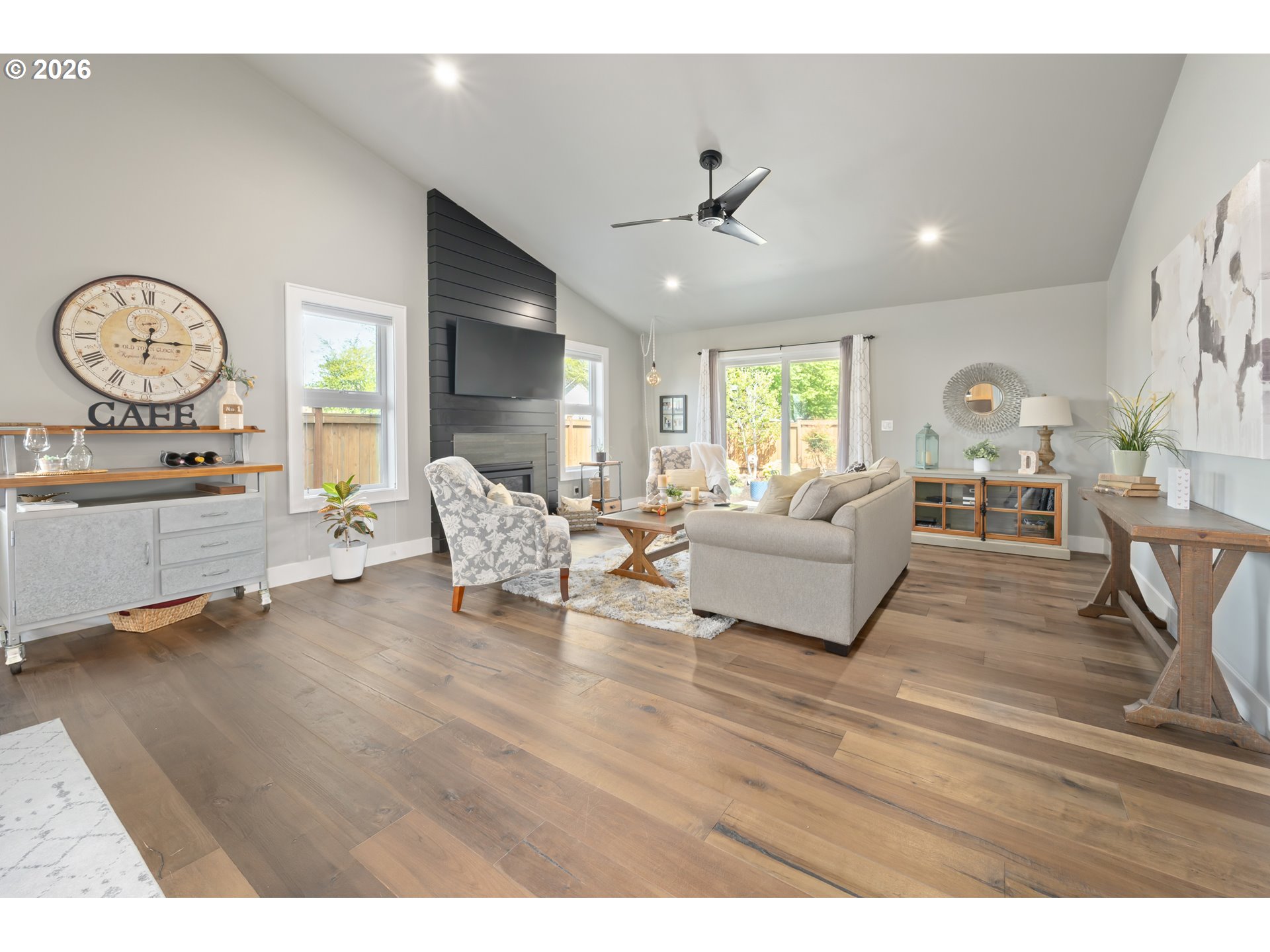 (503) 893-8874Built by Jordan Iverson Signature Homes, this home sits in a well-established Santa Clara neighborhood that feels grounded and quietly refined rather than newly packed and repetitive. Inside, the finishes are warm and intentional. White oak cabinetry carries throughout, paired with Swedish maple carob engineered hardwood that brings a soft, natural depth underfoot. The kitchen feels both functional and inviting, with black stainless KitchenAid appliances, gas cooking, and an island that naturally becomes the place people gather, whether for a quick breakfast or simple gathering. The main living space opens upward with vaulted ceilings, but still holds onto a sense of comfort. A gas fireplace wrapped in black shiplap anchors the room, adding contrast and a bit of edge without overpowering the space. It all flows easily to the partially covered patio, already set up with a gas hookup, making it just as usable on a cool wet evening as it is in the middle of summer. The primary suite is positioned on the main level and feels quietly tucked away, with direct access to the patio, two walk-in closets, and a bathroom that’s clean and well executed with tile floors, a tiled shower, and a quartz double vanity; quality materials done right. Upstairs, the bonus room offers a generous, flexible space that adapts easily whether it becomes a media room, office, or something in between. The oversized garage adds another layer of practicality, giving you extra space for storage. Set on a corner lot, the outdoor space has been thoughtfully designed with low-maintenance landscaping that still feels lush and complete. Turf, established plantings, and intentional layout make it easy to enjoy without constant upkeep. With gas hot water, a Trane gas heating system, and a heat pump, the home is as comfortable behind the walls as it feels inside them. It has been lightly lived in and lovingly maintained, and that sense of ease comes through the moment you step foot inside.