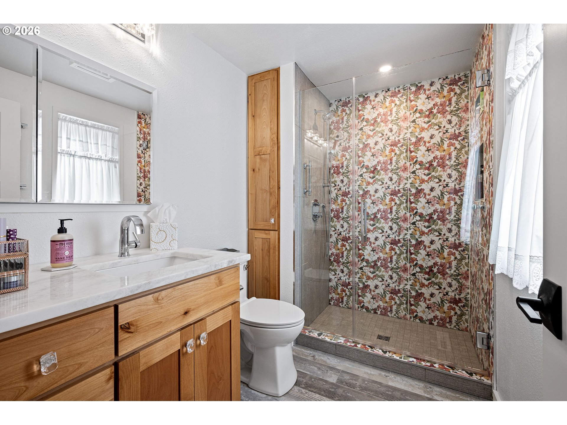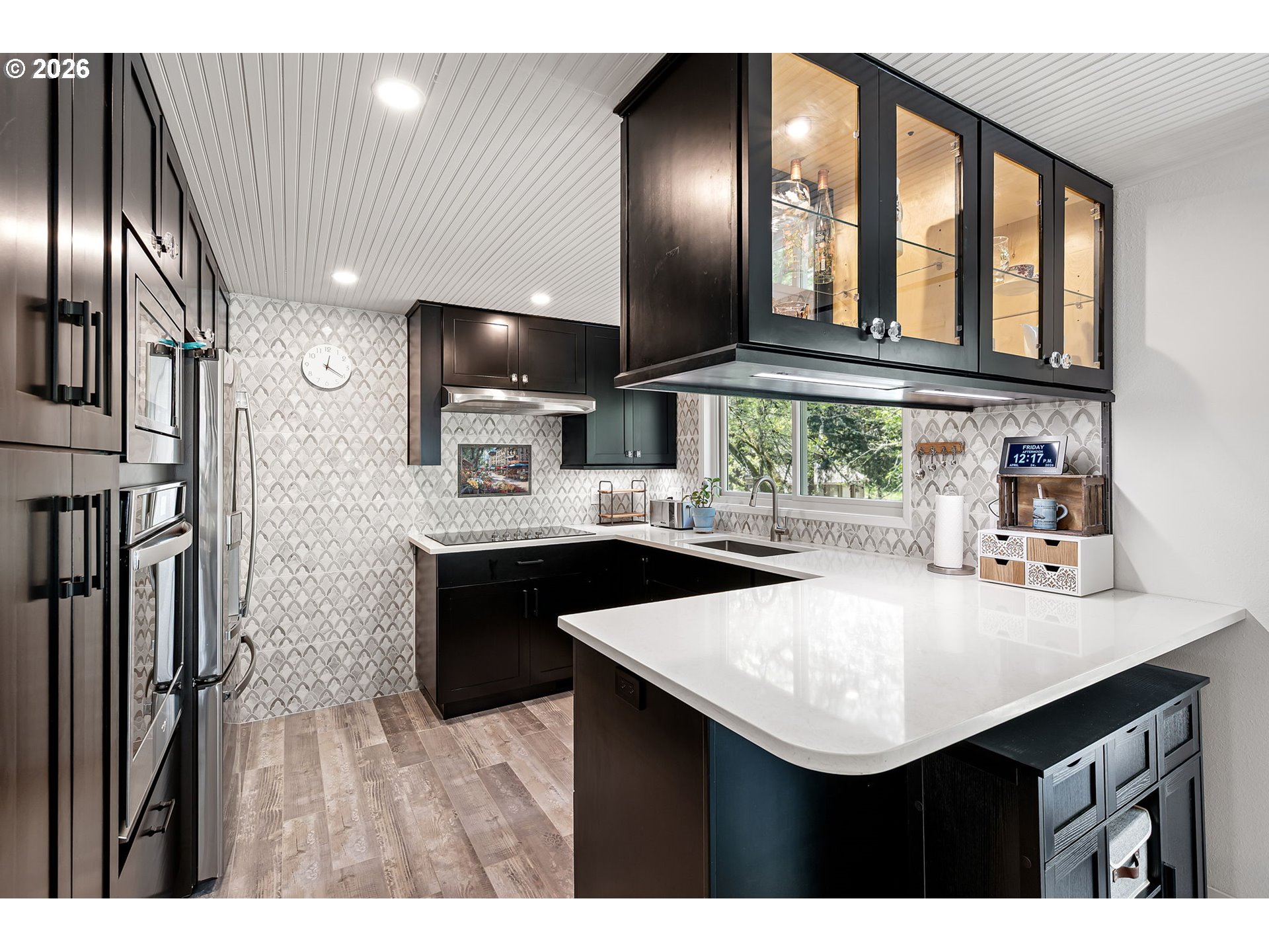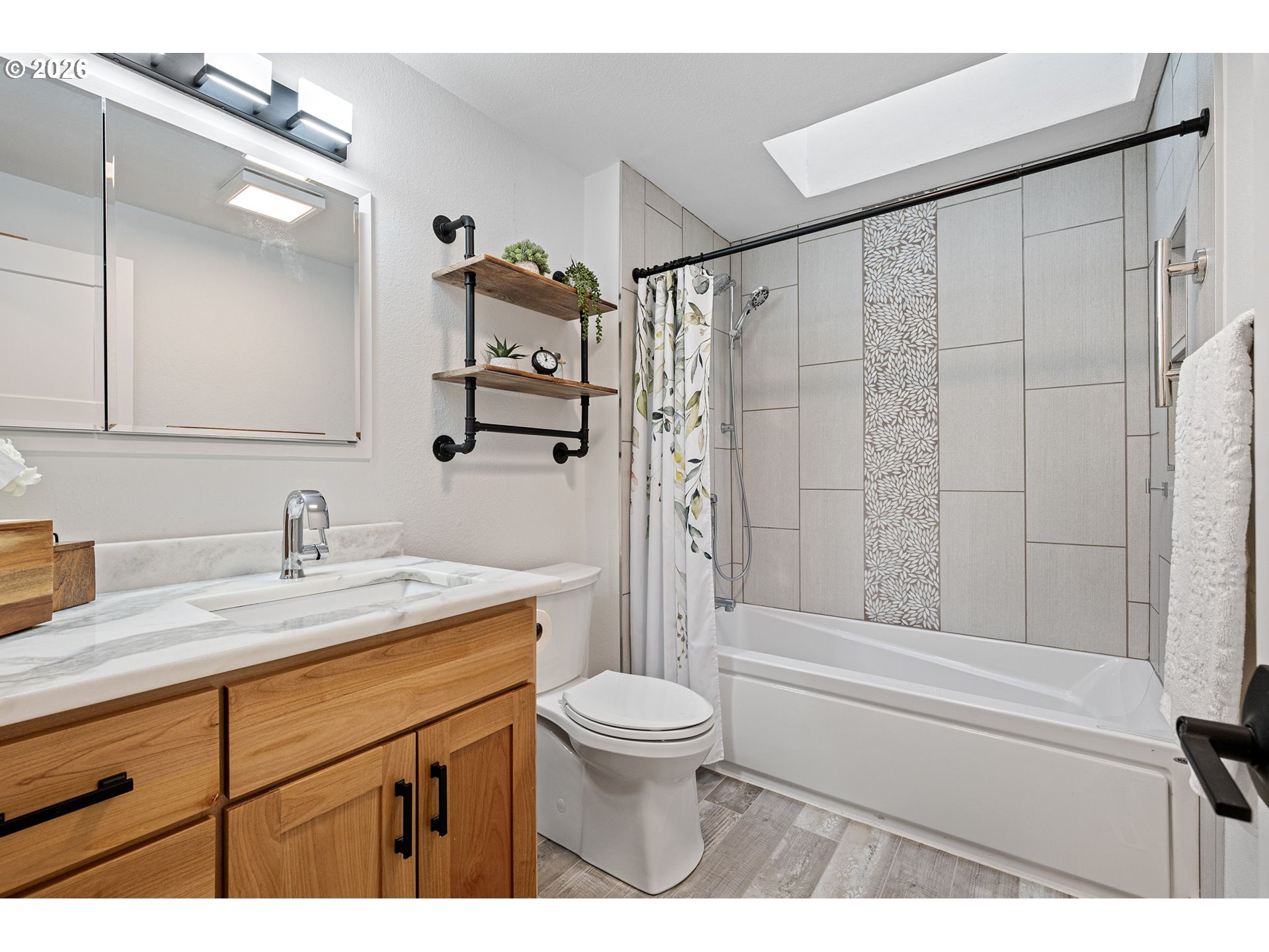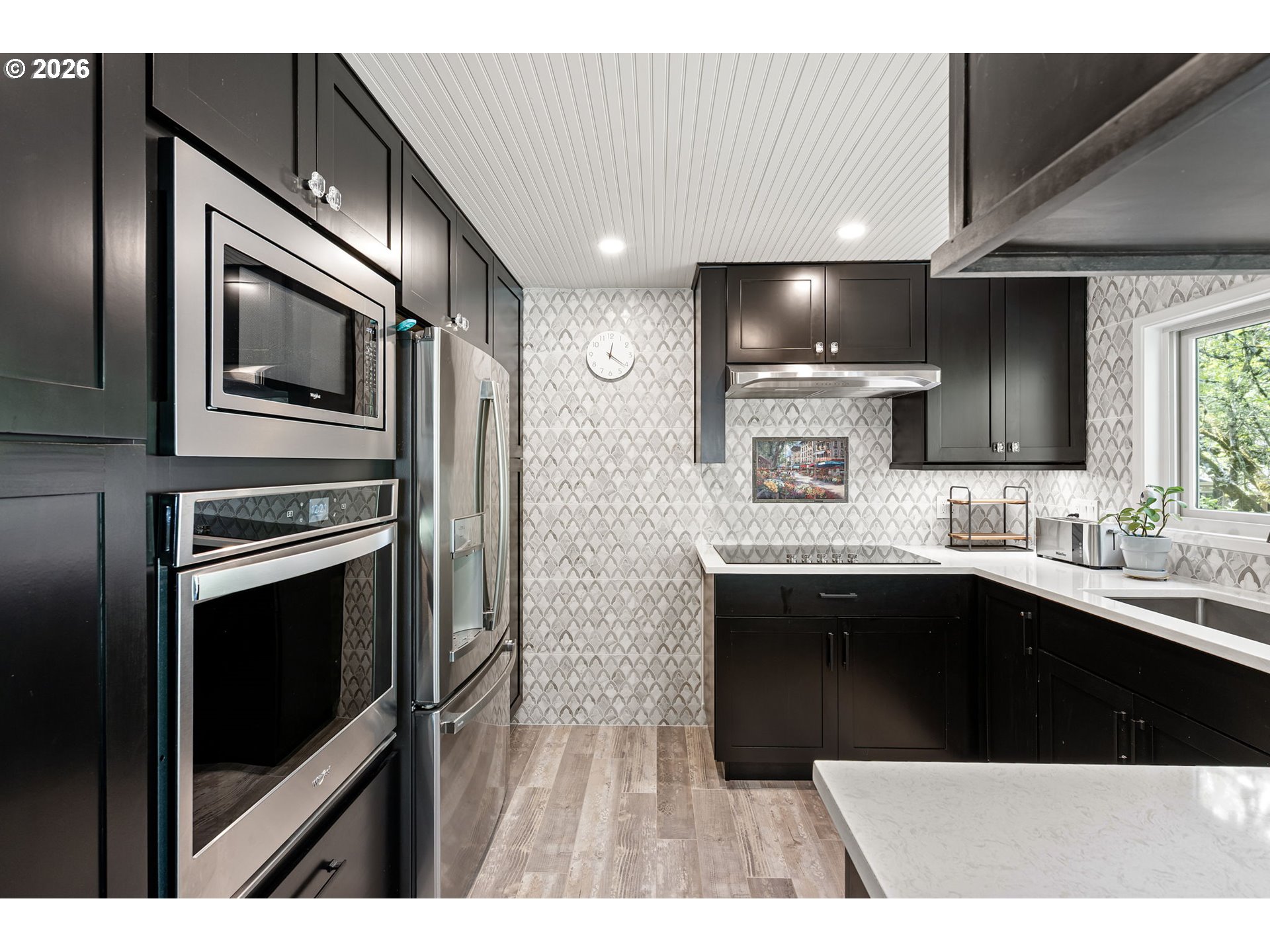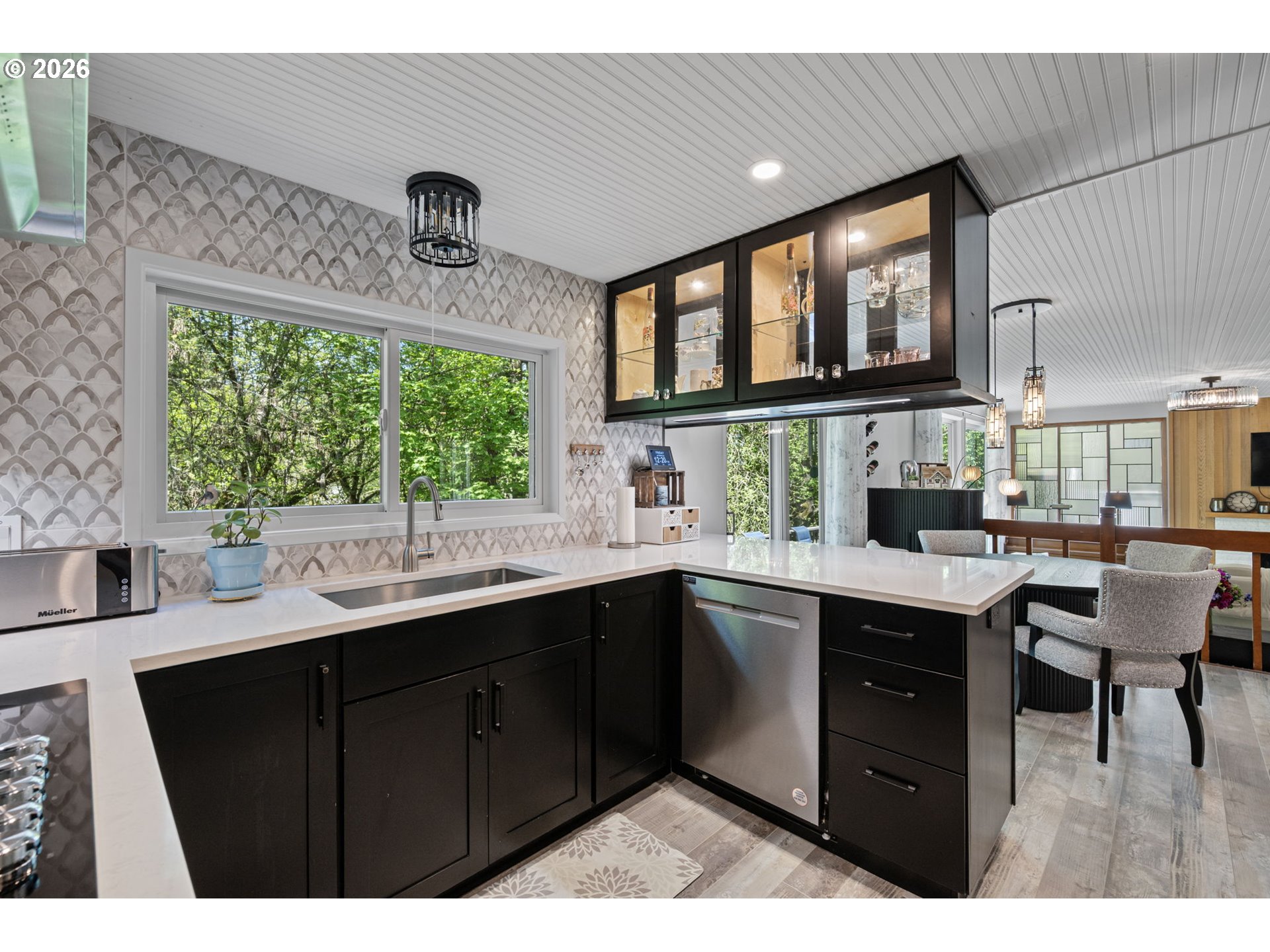 Beautifully remodeled with exceptional attention to detail, this home has been thoughtfully updated throughout in recent years. Upgrades include Andersen Windows, new interior and exterior doors (including closets), updated flooring, and fresh interior and exterior paint.The kitchen has been completely renovated with alder wood cabinetry, custom tile work, a smart oven, and newer appliances, blending modern convenience with quality craftsmanship. Both bathrooms have been fully remodeled with tasteful finishes. Additional improvements include a newer water heater, updated rain gutters, and a striking exterior quartz brick accent wall that enhances curb appeal. The roof was replaced in 2015.Inside, enjoy the warmth of a wood-burning fireplace in the living room. Step outside to a deck overlooking the trees and greenway, perfect for relaxing or entertaining in a peaceful, natural setting.This home reflects true pride of ownership with quality updates throughout.