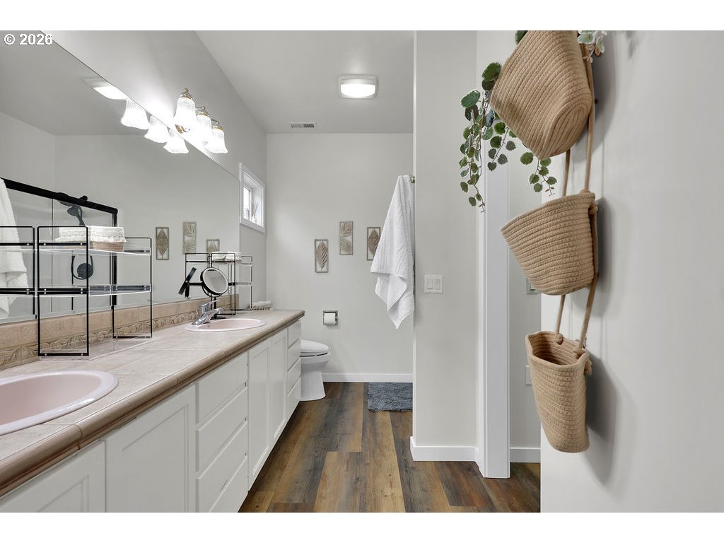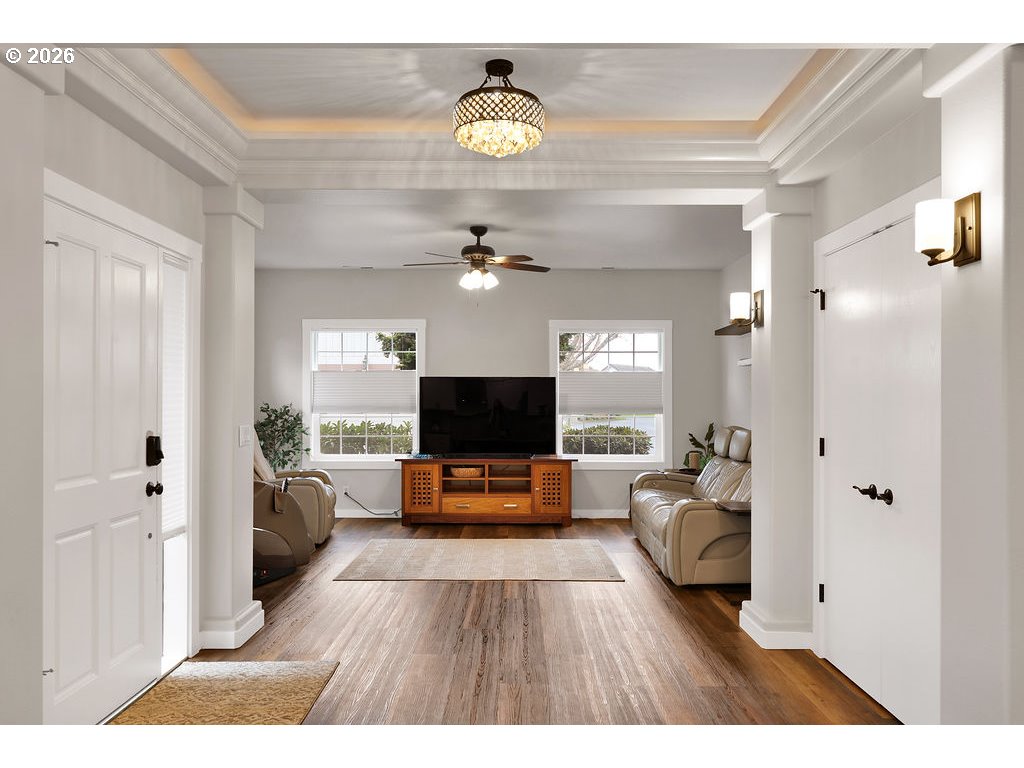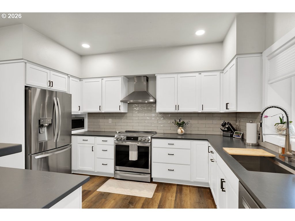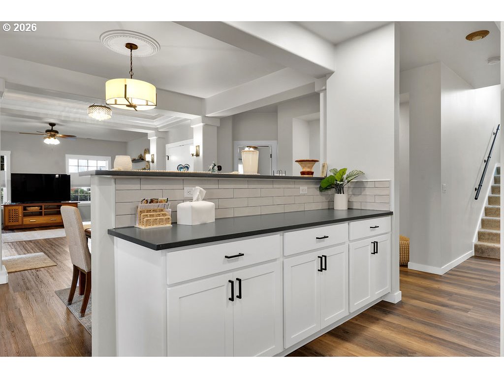 Step inside this fully updated home and you’ll immediately notice the open layout, clean finishes, and thoughtful improvements throughout. Located on a corner lot within the gated waterfront community of Lake Shore Estates, this home immediately stands apart. The main level features luxury vinyl plank flooring and a layout designed for everyday living. The living room sits just off the entry and flows naturally into the dining area, where a sliding door leads to the backyard. The kitchen anchors the space with quartz countertops, a modern subway tile backsplash, stainless steel appliances, and custom Huntwood cabinets. An oversized island offers generous prep space and substantial storage. The primary suite is privately positioned on the main level and features a walk in closet, an updated walk in shower, and double sink vanity designed for comfort and ease. The main floor also includes a separate laundry room, a second bedroom, and a full bathroom. Upstairs, you’ll find two large bedrooms, including one with its own walk in closet, along with an additional full bathroom. New carpeting adds comfort to the upper level. Outside, the fenced backyard offers a covered patio and water feature. The garage is equipped with an electric car charger, adding modern convenience. This tech-forward, turn-key home is designed for remote-work productivity and modern efficiency, offering a rare combination of privacy and high-end upgrades in Eugene’s premier gated community. Homes in Lake Shore Estates with this level of updating do not come along often. Schedule your private showing and see it in person today.