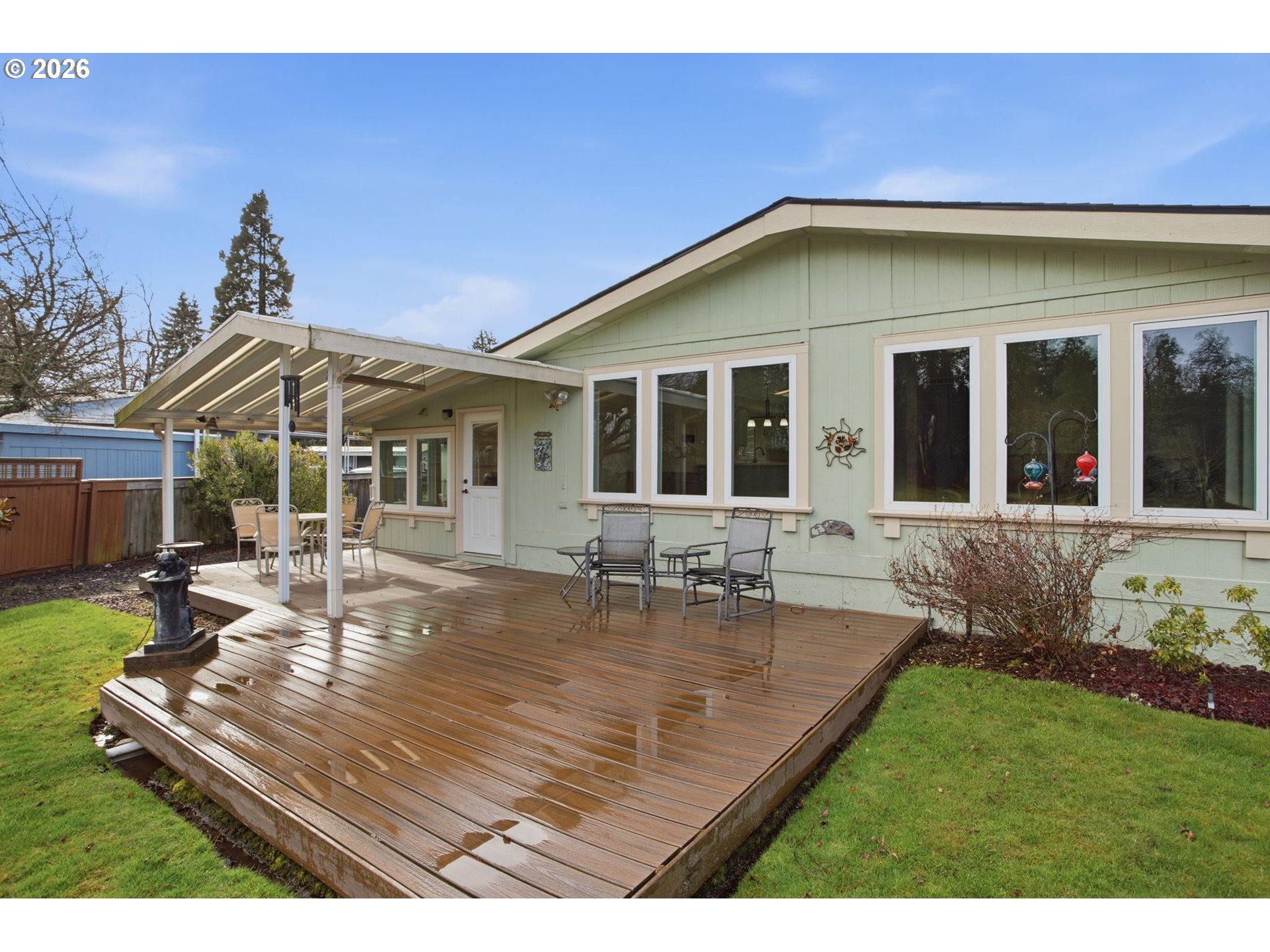 (503) 893-8874This one is extra special! VIEW OF THE LAKE, WALL OF WINDOWS! So light and bright. Stunning kitchen upgrades! Living room and family room. Formal and informal dining spaces plus an office. Two bedrooms, two bathrooms. TWO covered car ports plus an over-sized storage shed. NEW roof in 2025! LVP flooring, Anderson windows, trex decking, covered patio! This is luxury living in an incredible 55+ park. Enjoy the MANY amenities and activities of this highly sought after community, Lakeridge of Eugene. OPEN HOUSE 1:00-3:00 SATURDAY FEB. 21ST